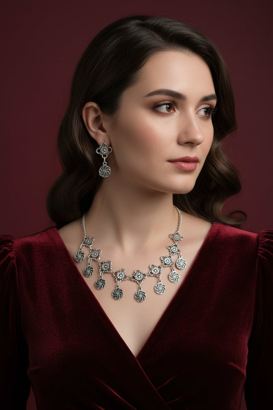"Shield" Antique Silver Armenian Jewelry Set with Natural Pearls and Eternity Symbol