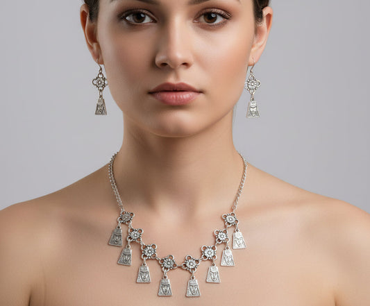 Handmade Evil Eyes Charm Pomegranate floral necklace with earrings