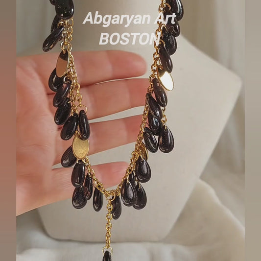 Handmade black drop glass beads jewelry set
