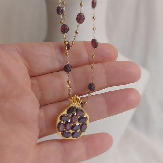 18K gold plated layered pomegranate pendant necklace with AAA grade natural garnet