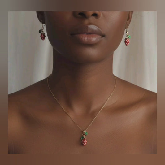 Handmade Pomegranate-shaped pendant and delicate matching earrings