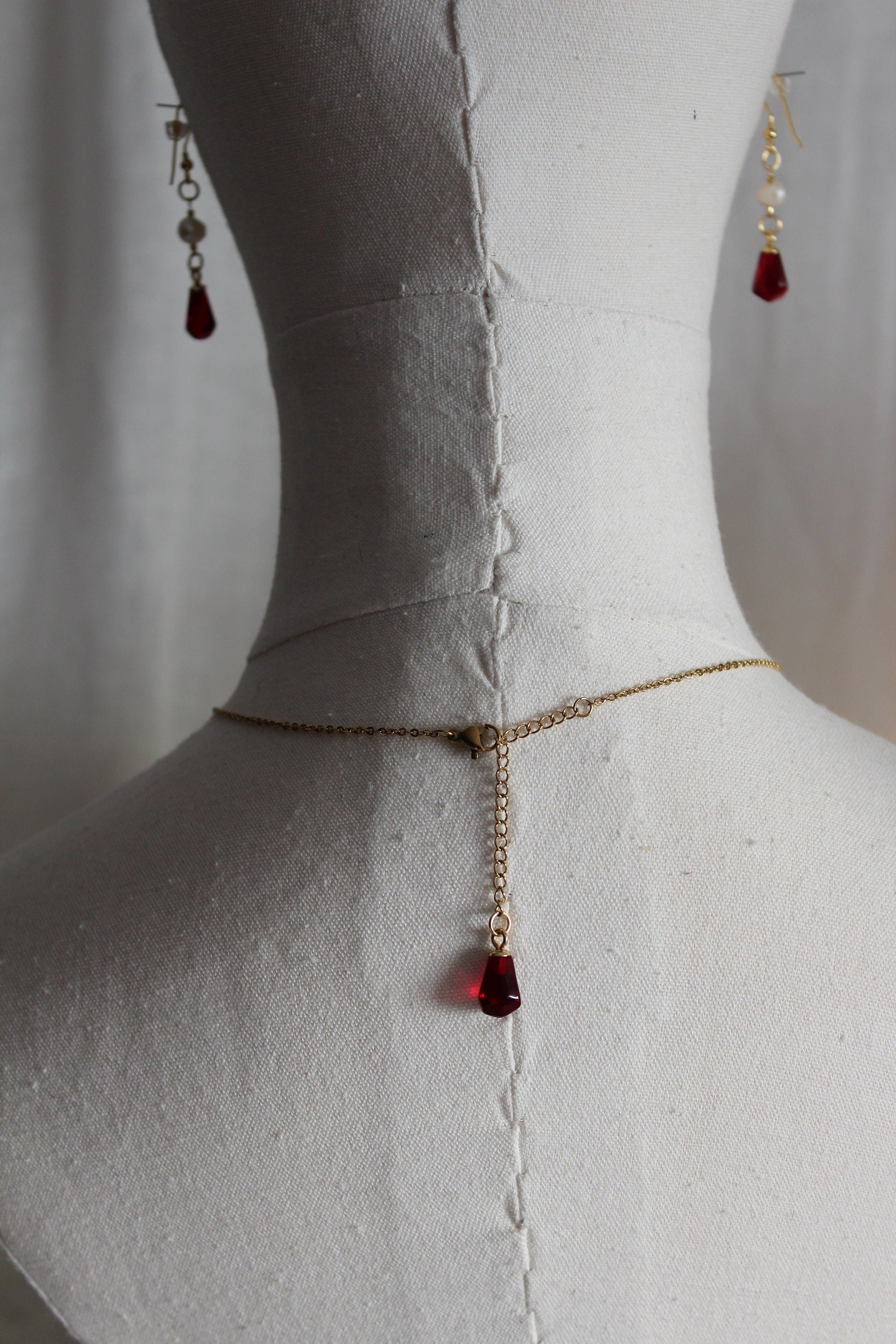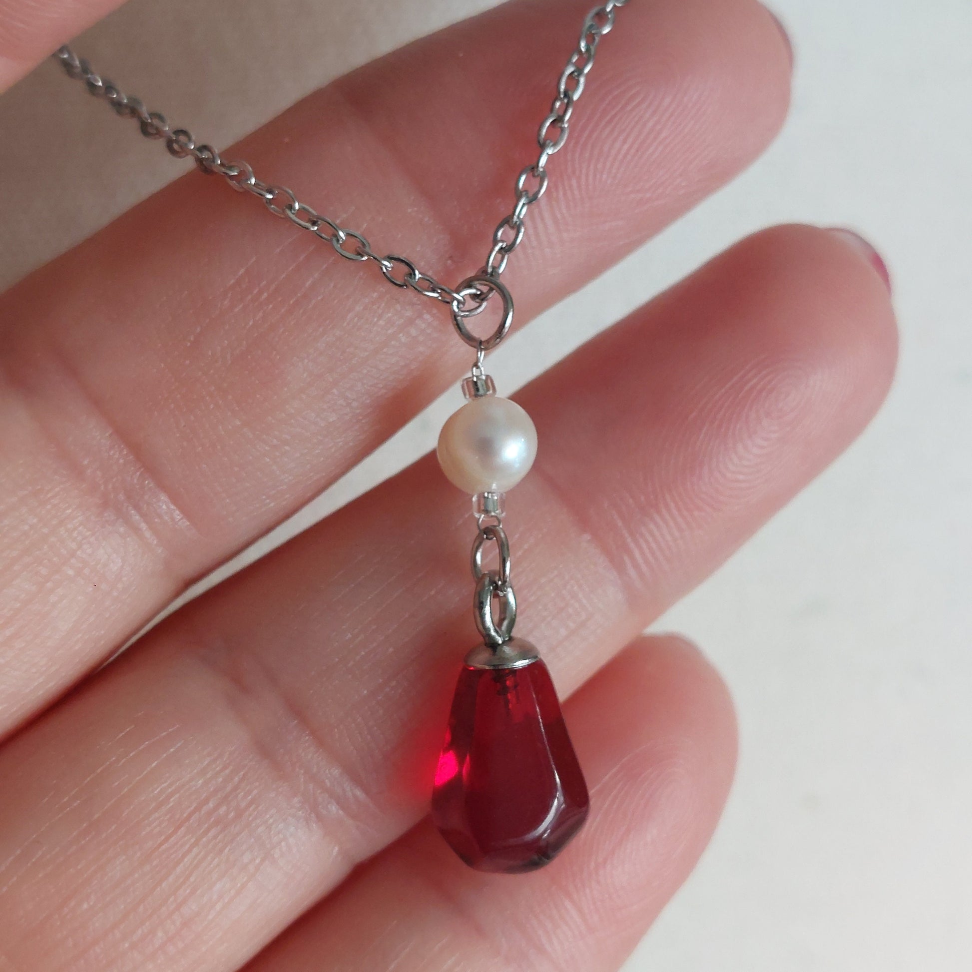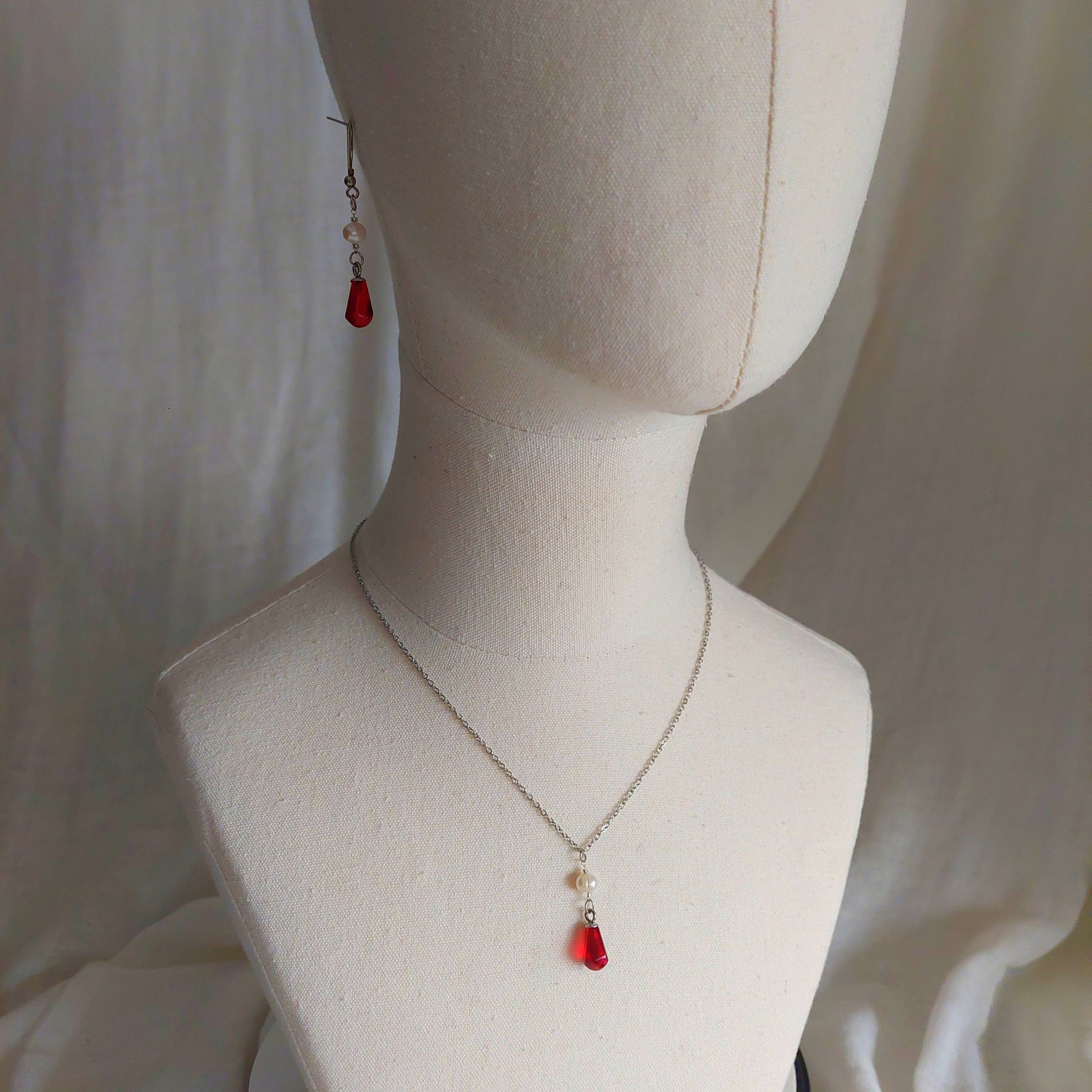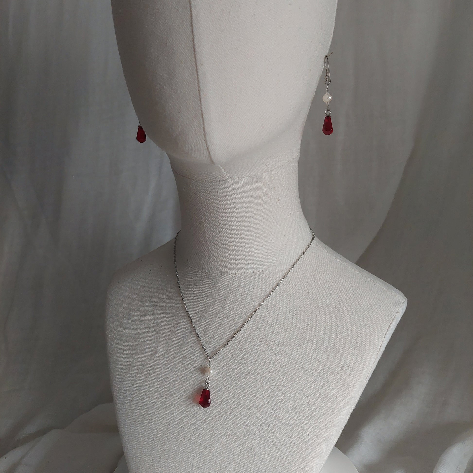 This high-quality handmade jewelry set features a pomegranate design, made of resin and natural pearls with stainless steel accents. In Armenian and Jewish cultures, pomegranates symbolize fertility, love, and abundance. Each mature pomegranate contains 365 seeds, representing one for each day of the year, and they are also seen as a symbol of power.