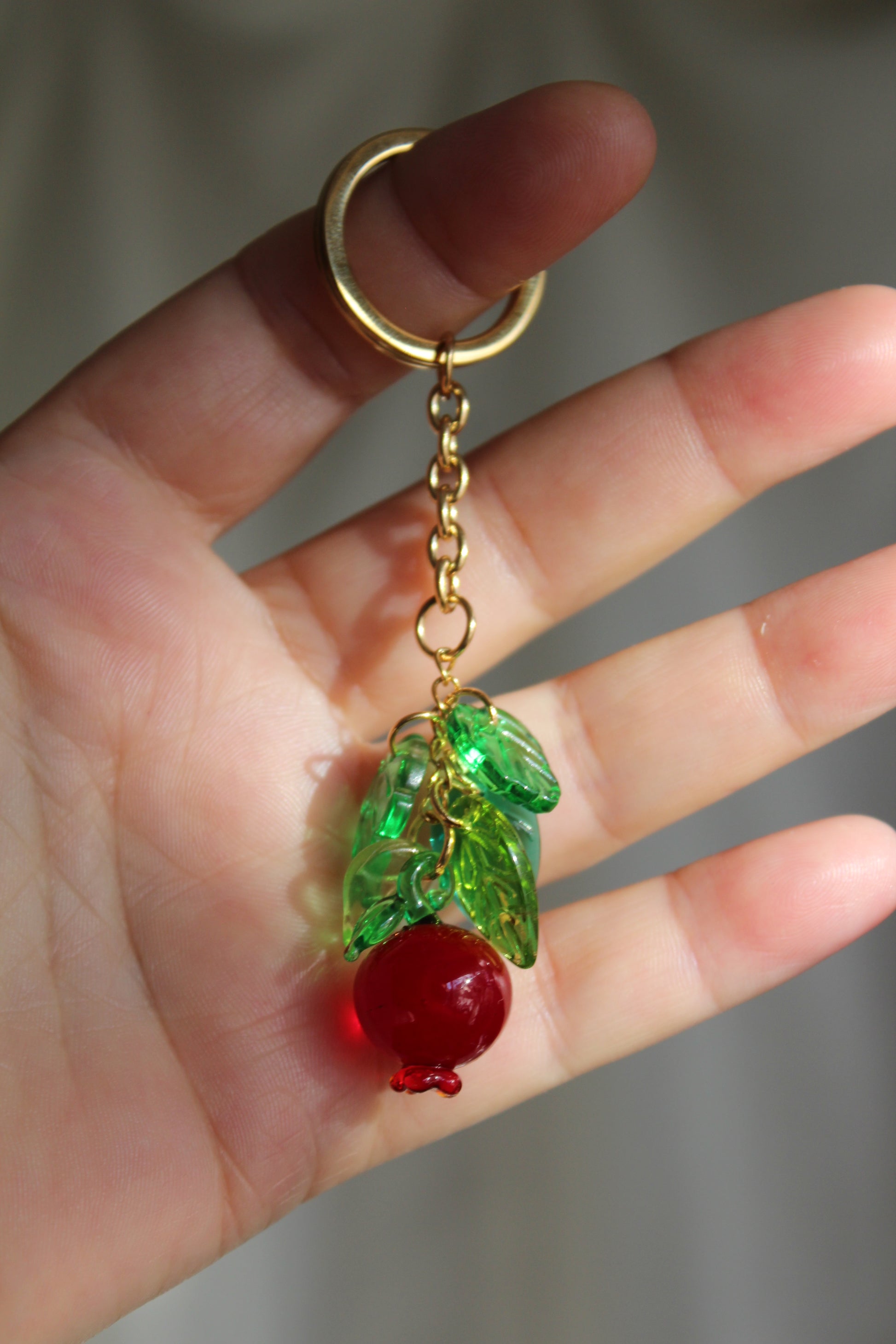 14K gold plated stainless steel Pomegranate keychain non tarnish