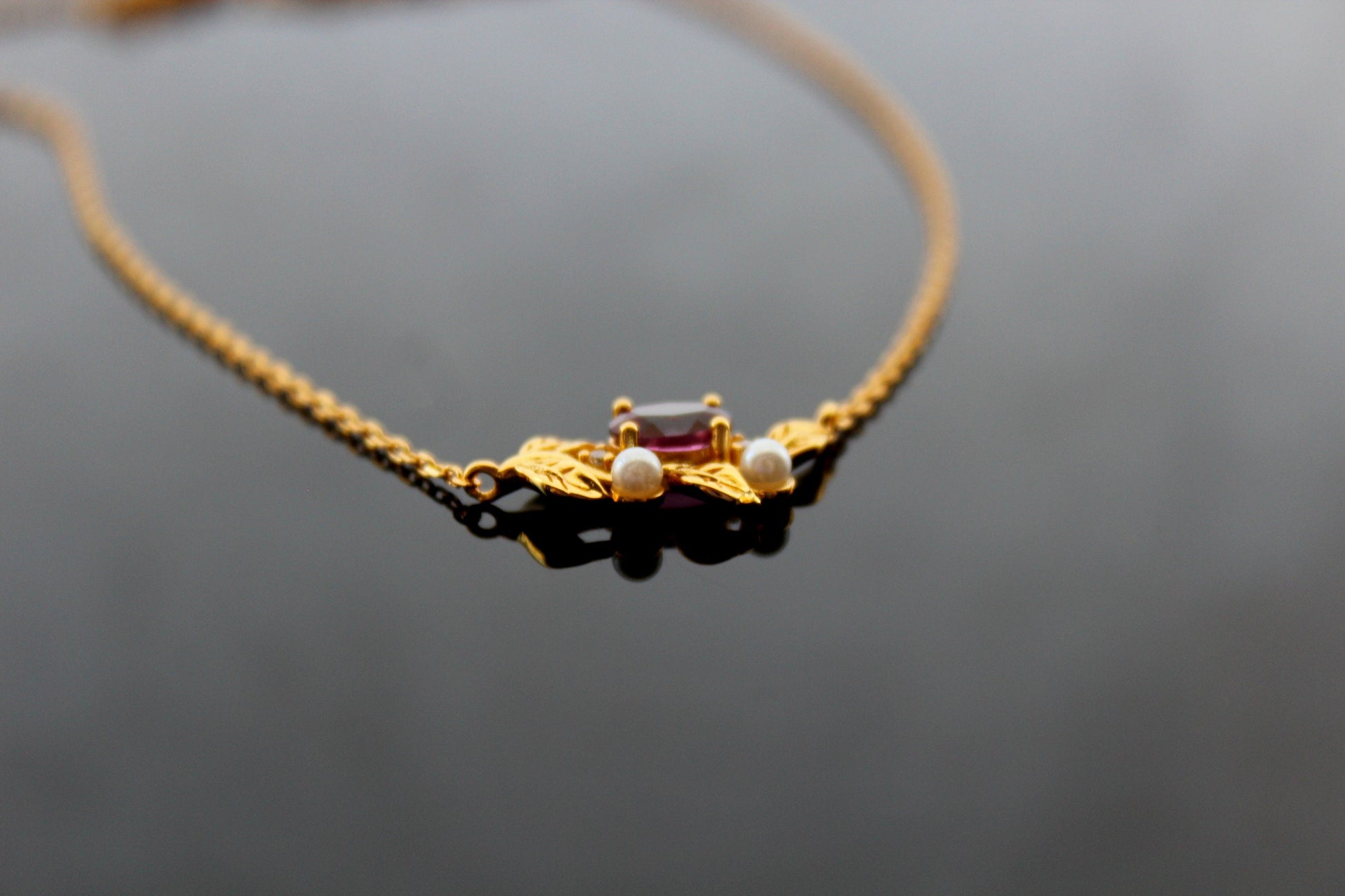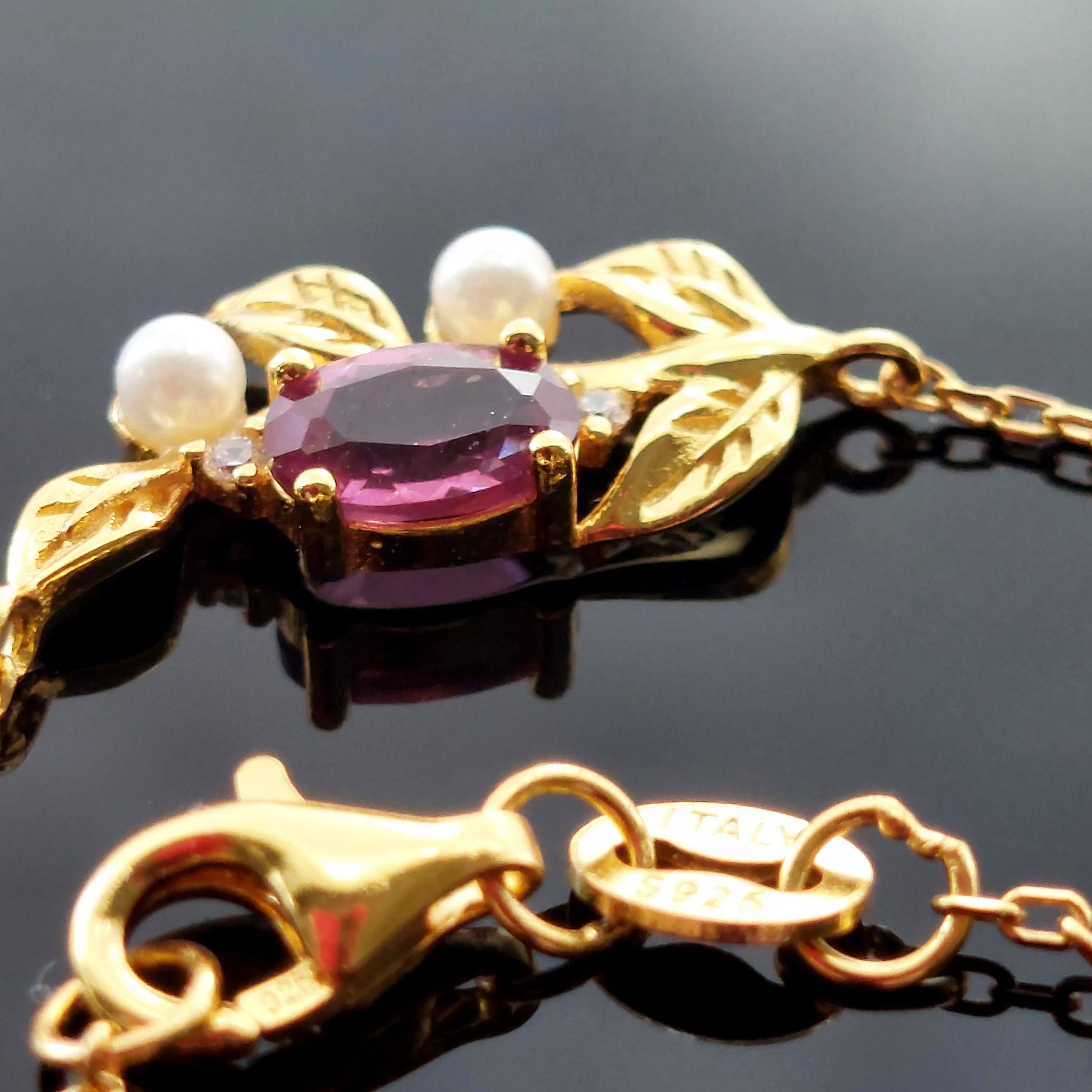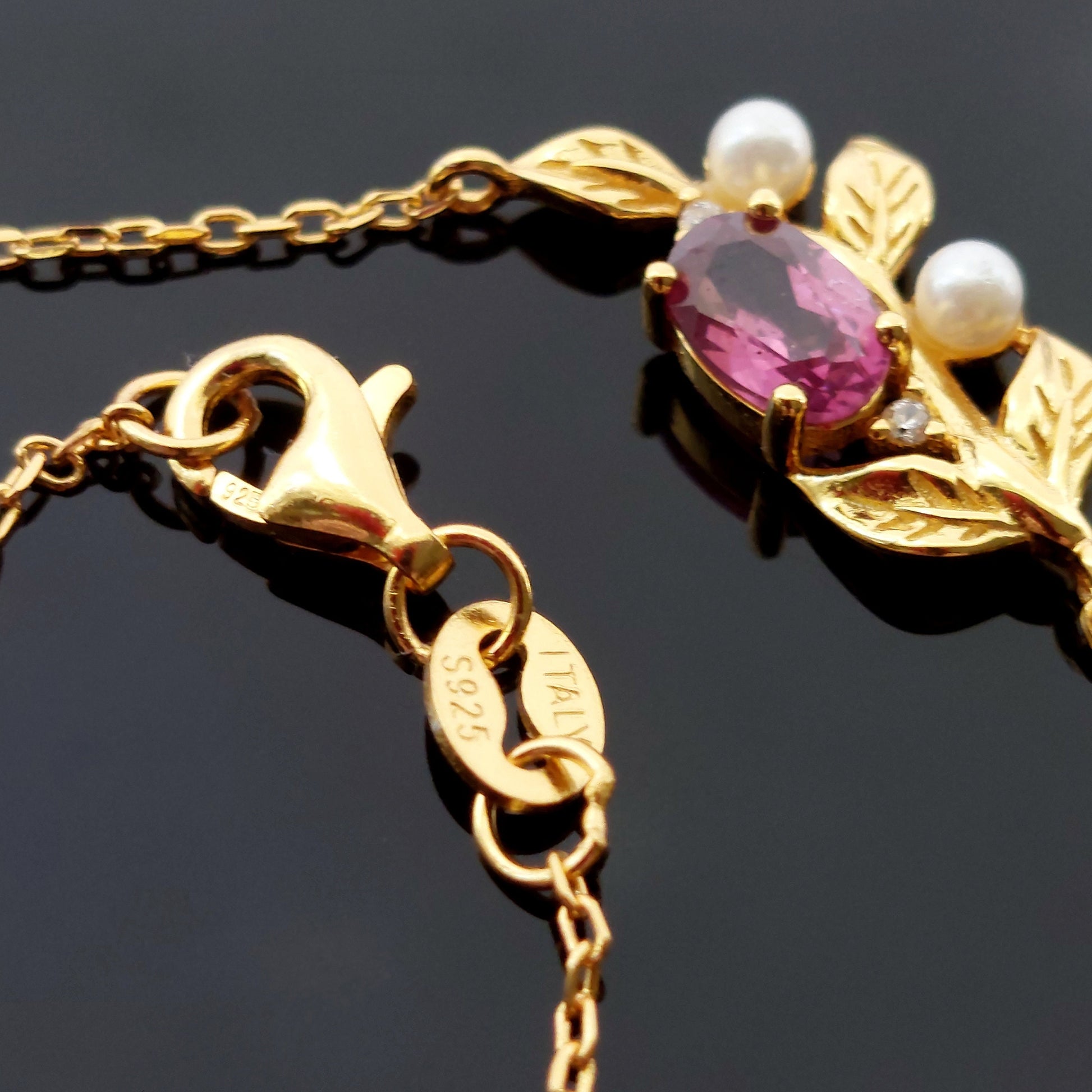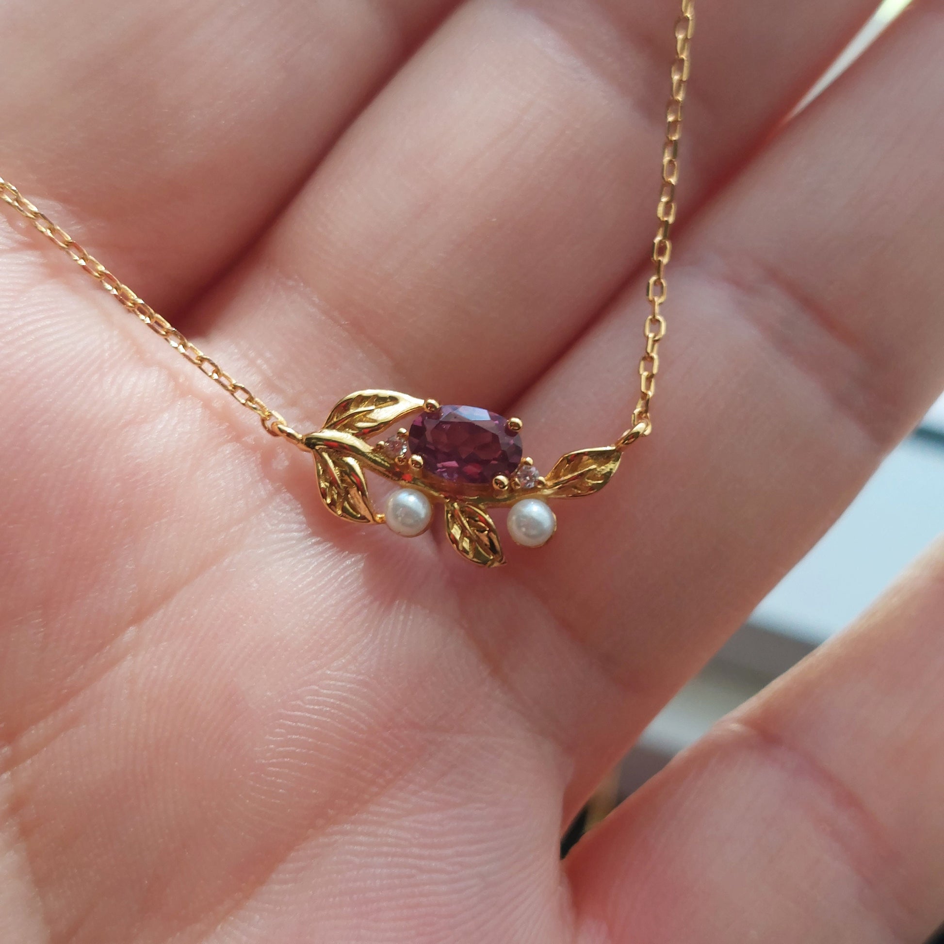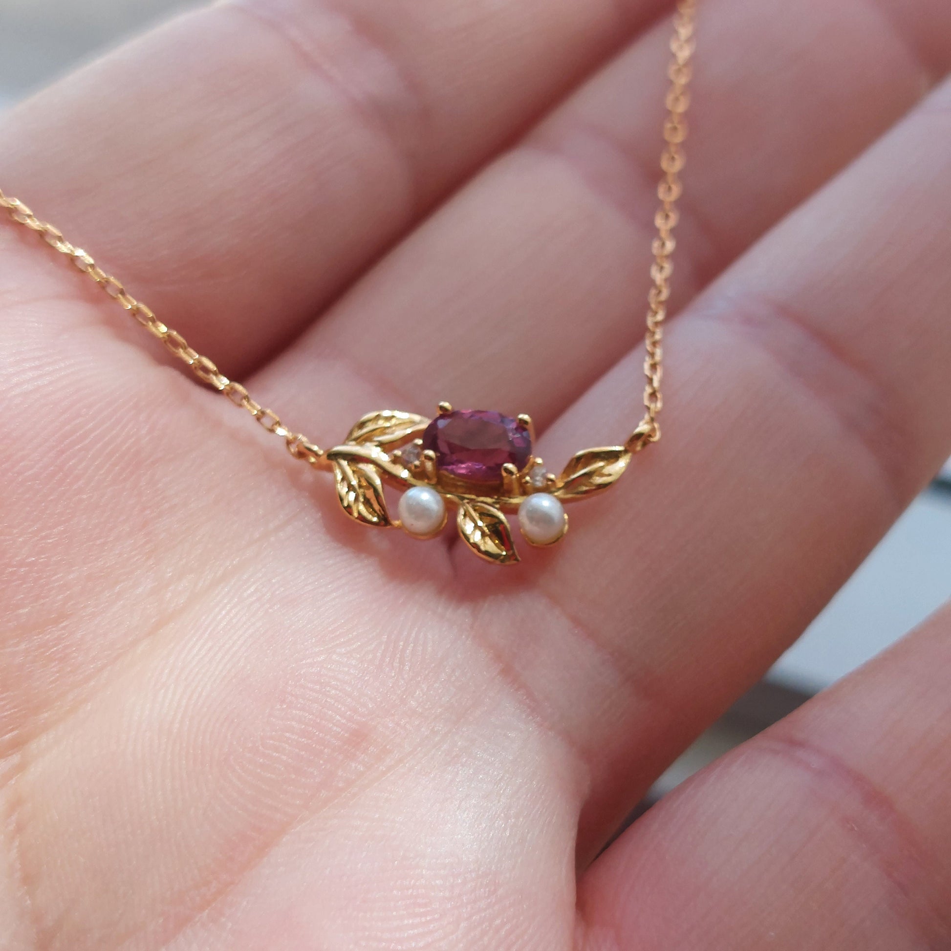 18K gold filled 925 sterling silver natural garnet and pearls pendant