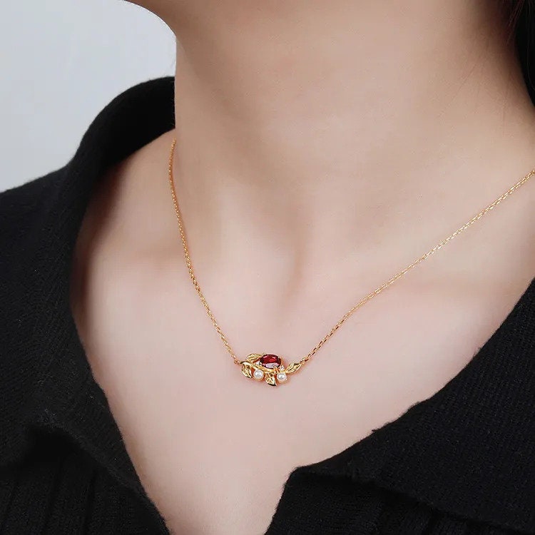 Expertly crafted from 18K gold filled and 925 sterling silver, this pendant features a natural garnet and pearls. Handmade to perfection, the pendant comes with a chain and symbolizes wisdom, enlightenment, innocence, and protection. With its high quality and lucky symbolism, it's the perfect addition to any outfit.