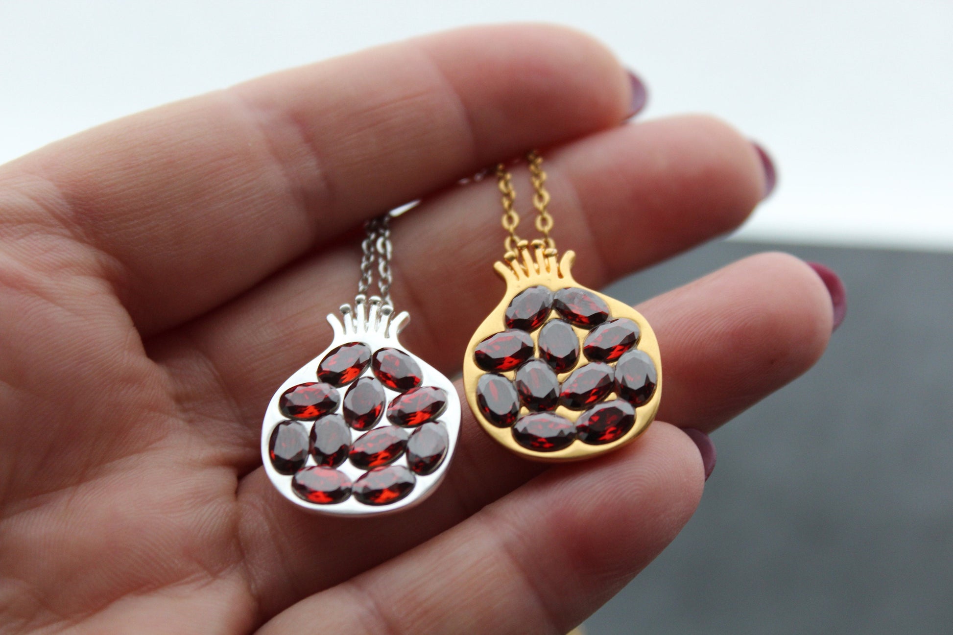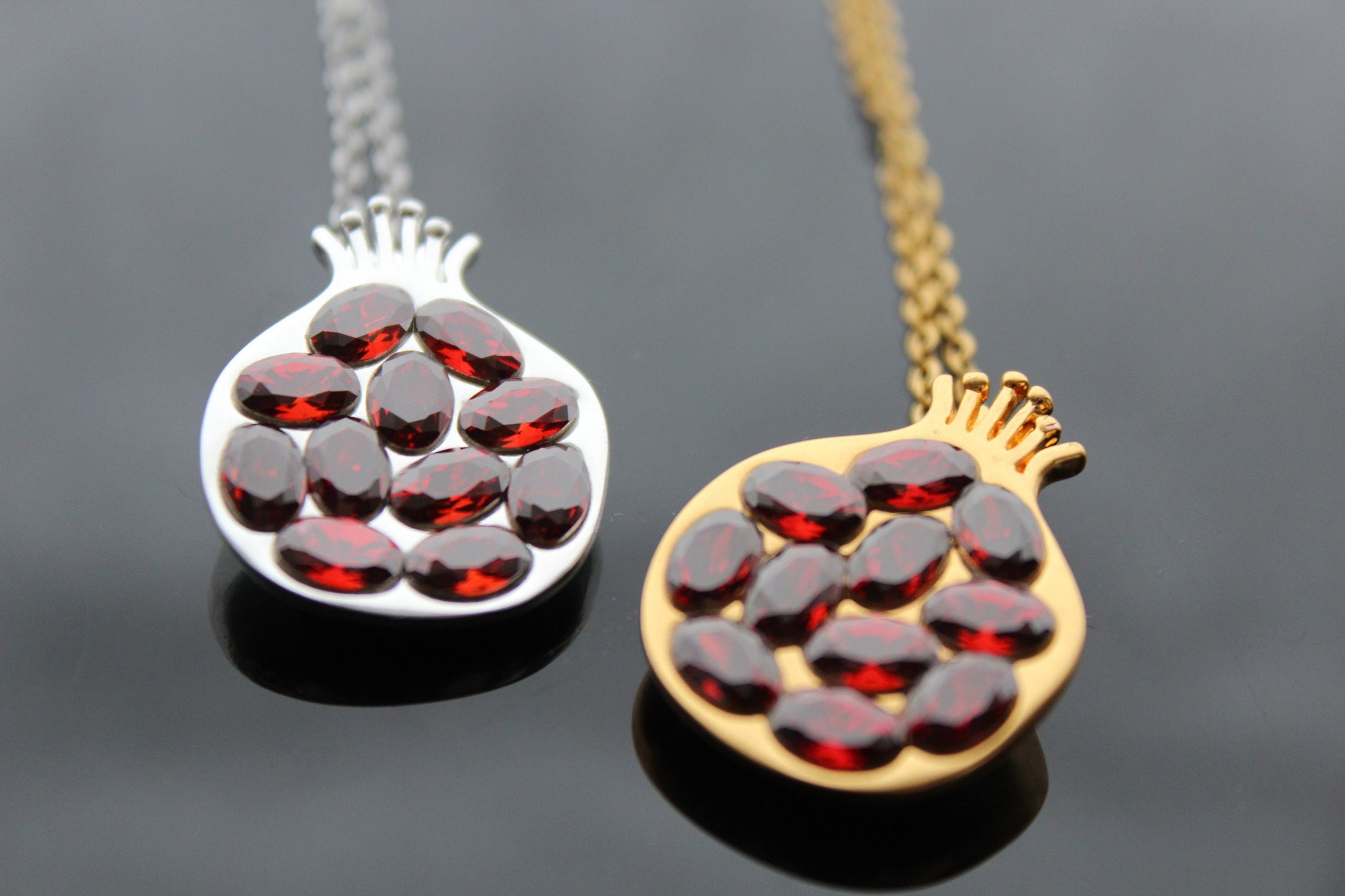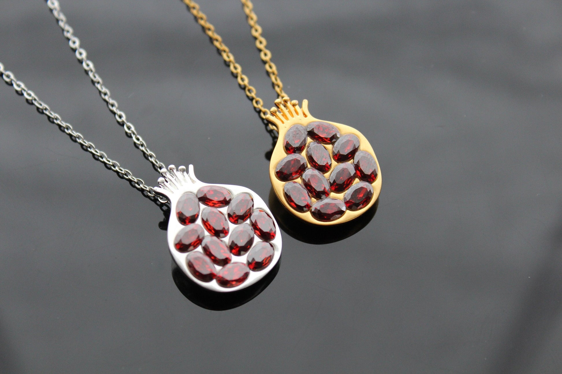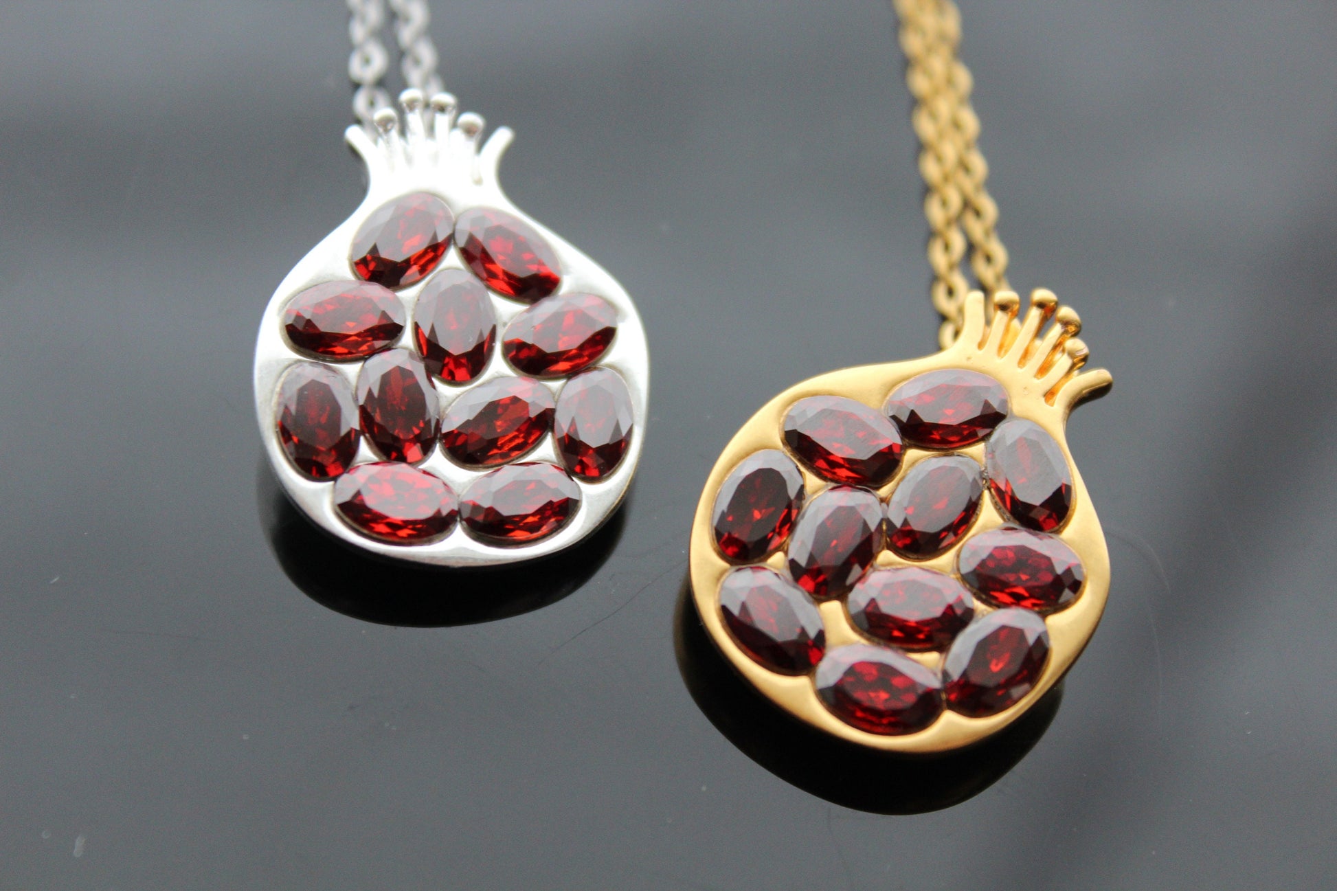 18K gold plated and 925 silver plated pomegranate pendant with AAA grade natural garnet