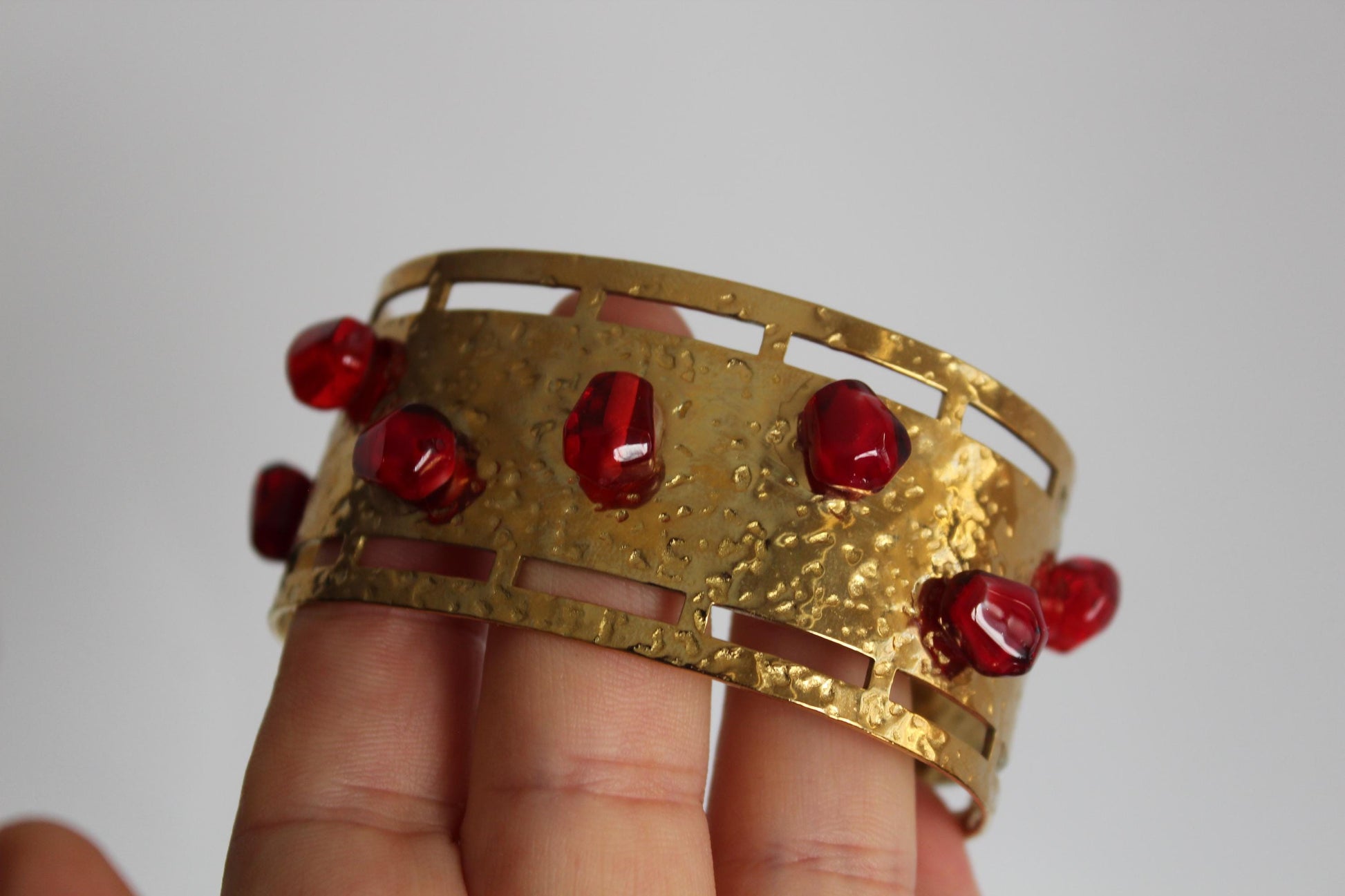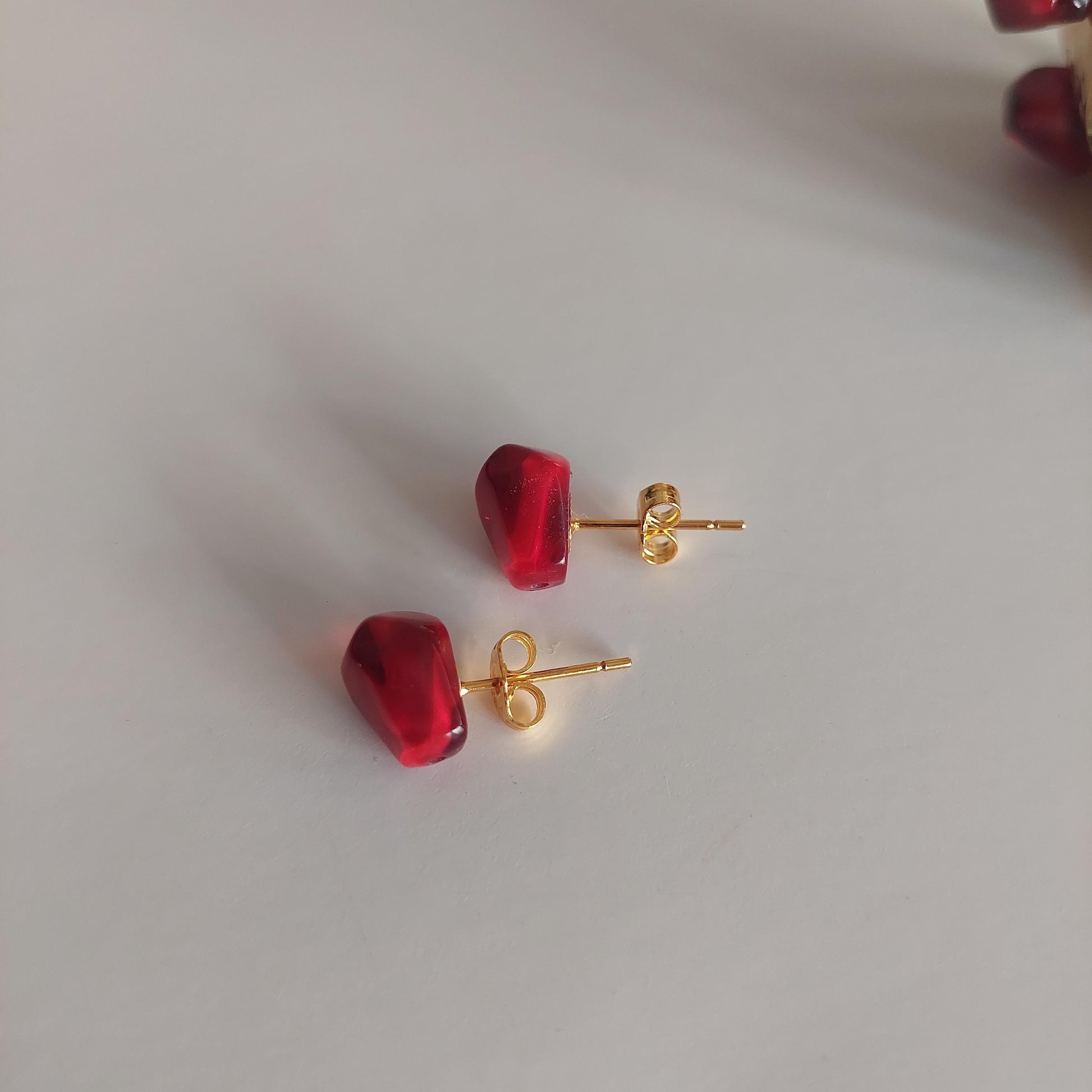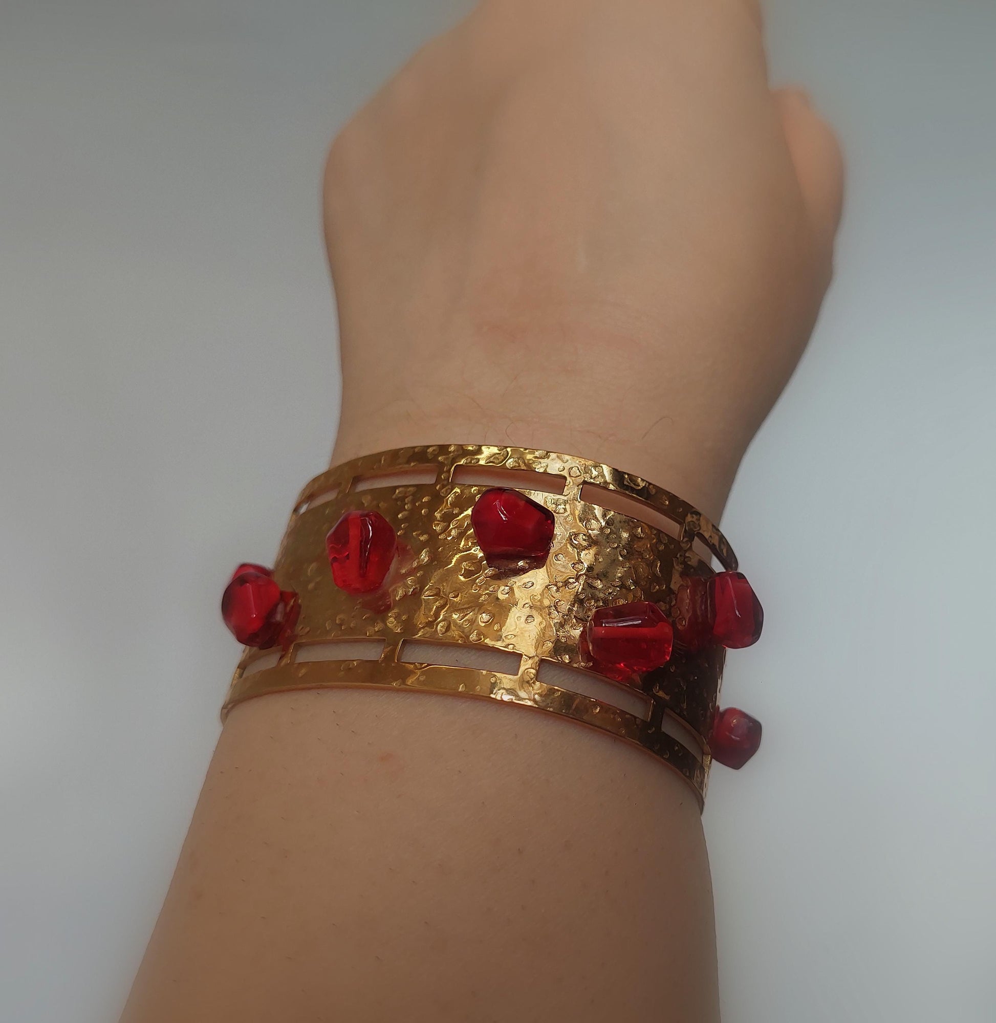 One bracelet showcases vibrant red pomegranate-inspired resin beads.
