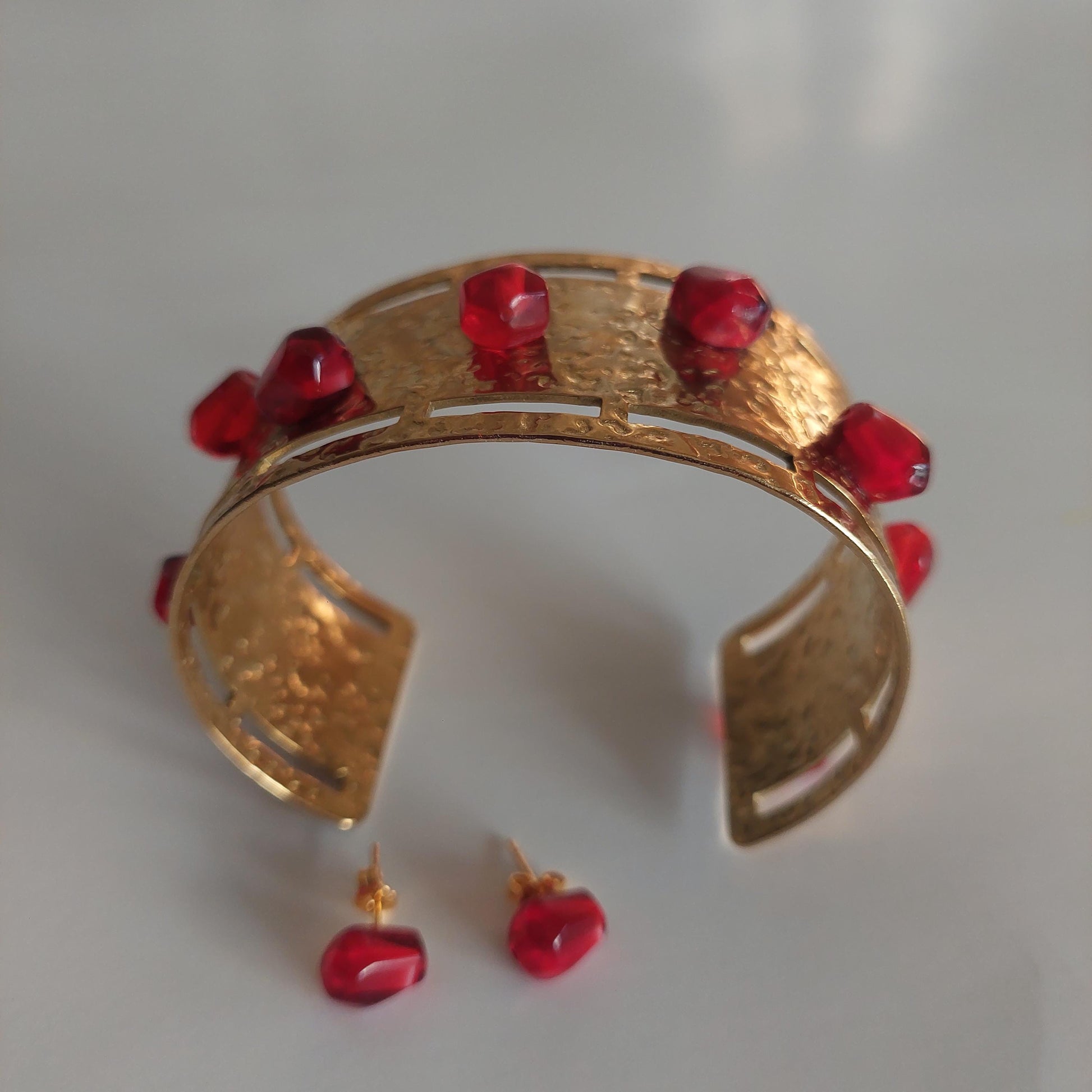18K gold plated stainless steel Cuff pomegranate bracelet with stud earrings