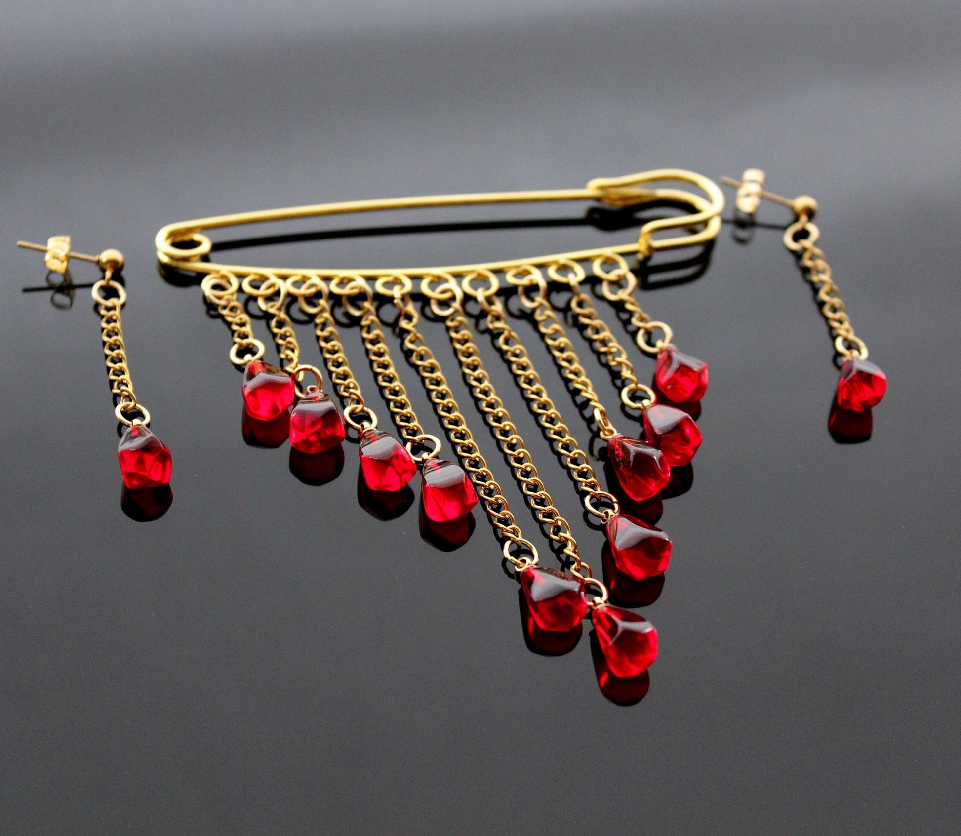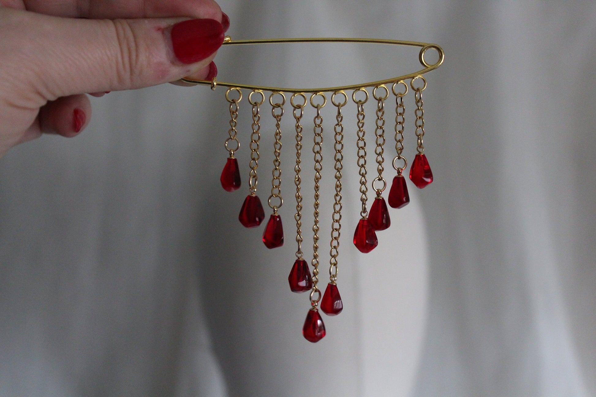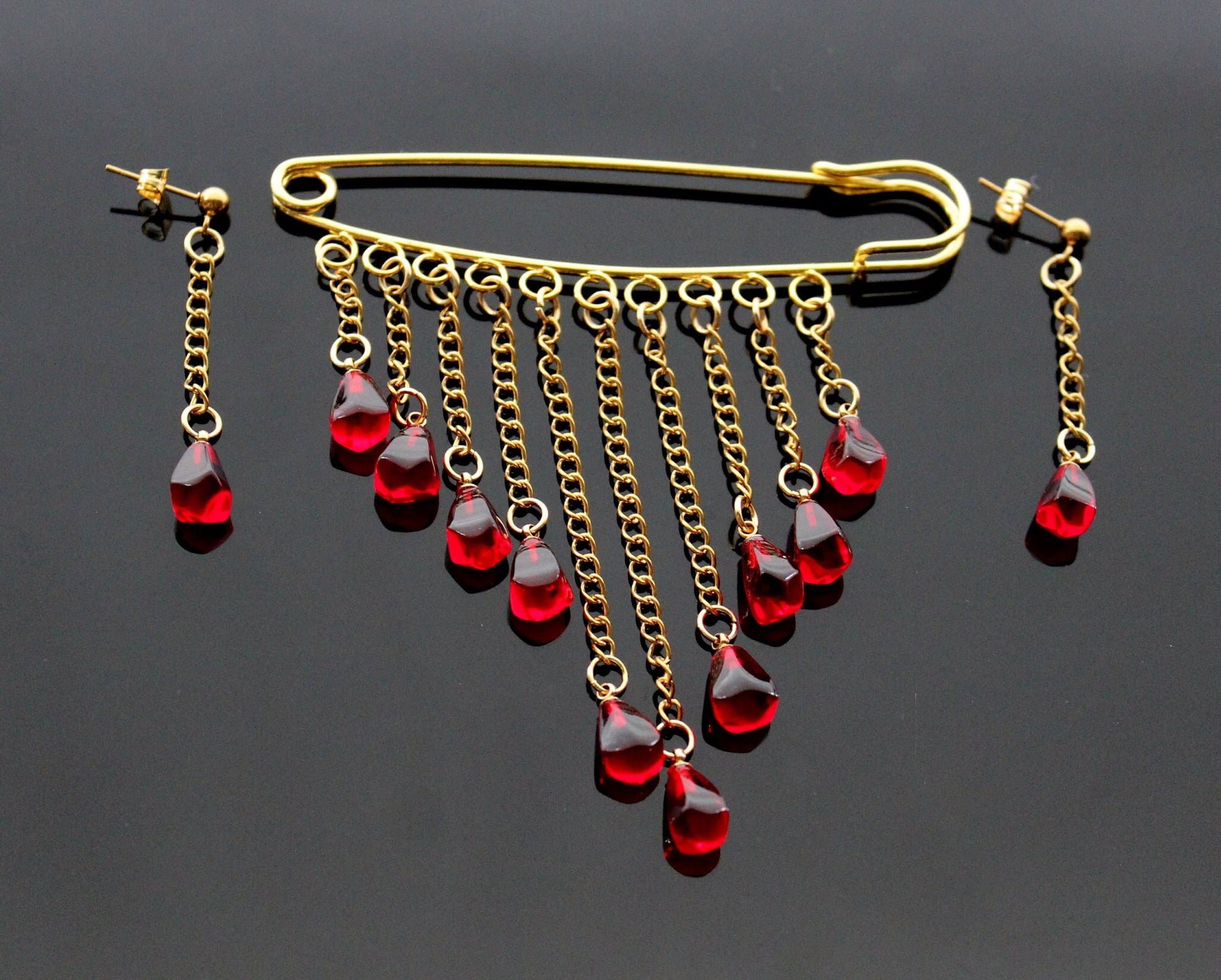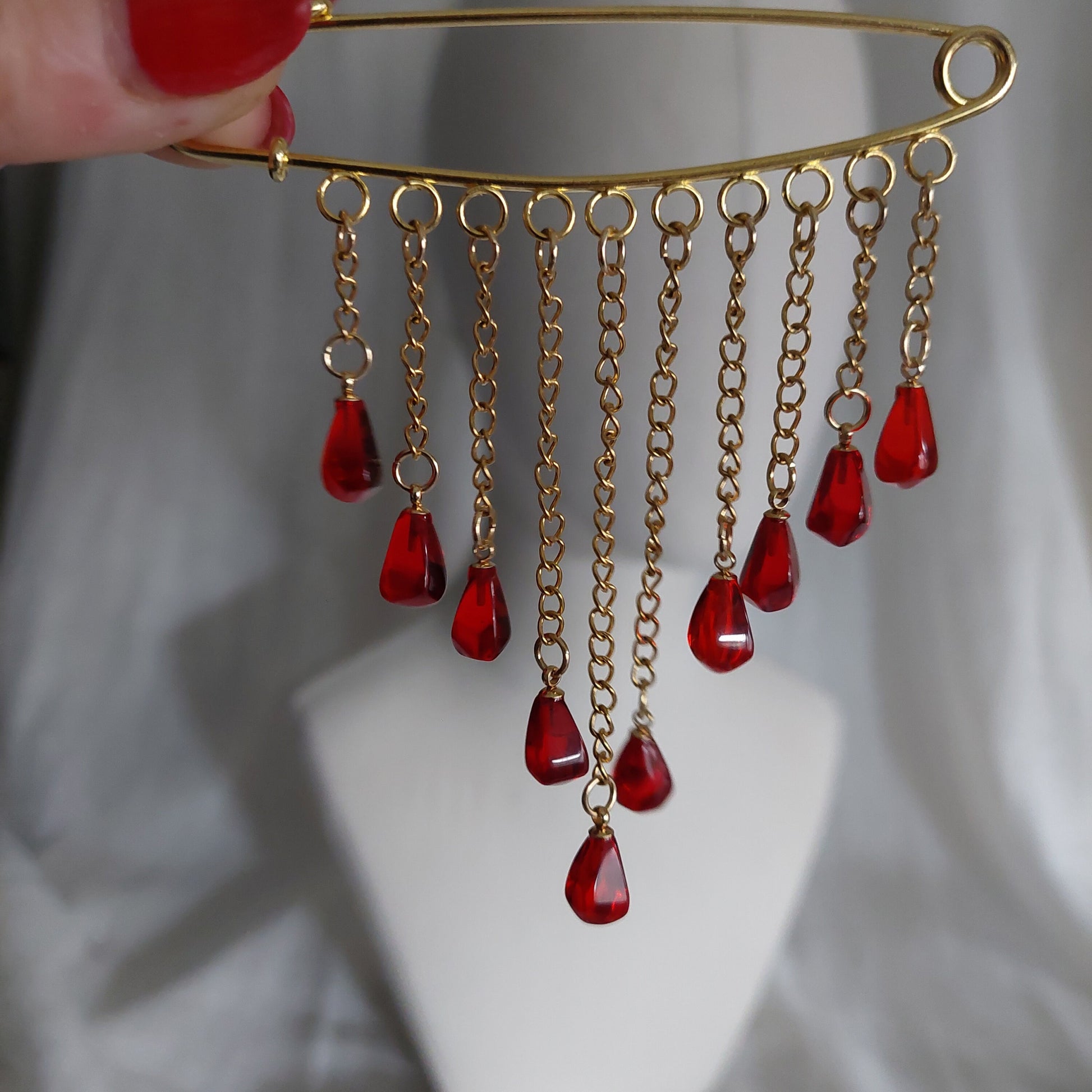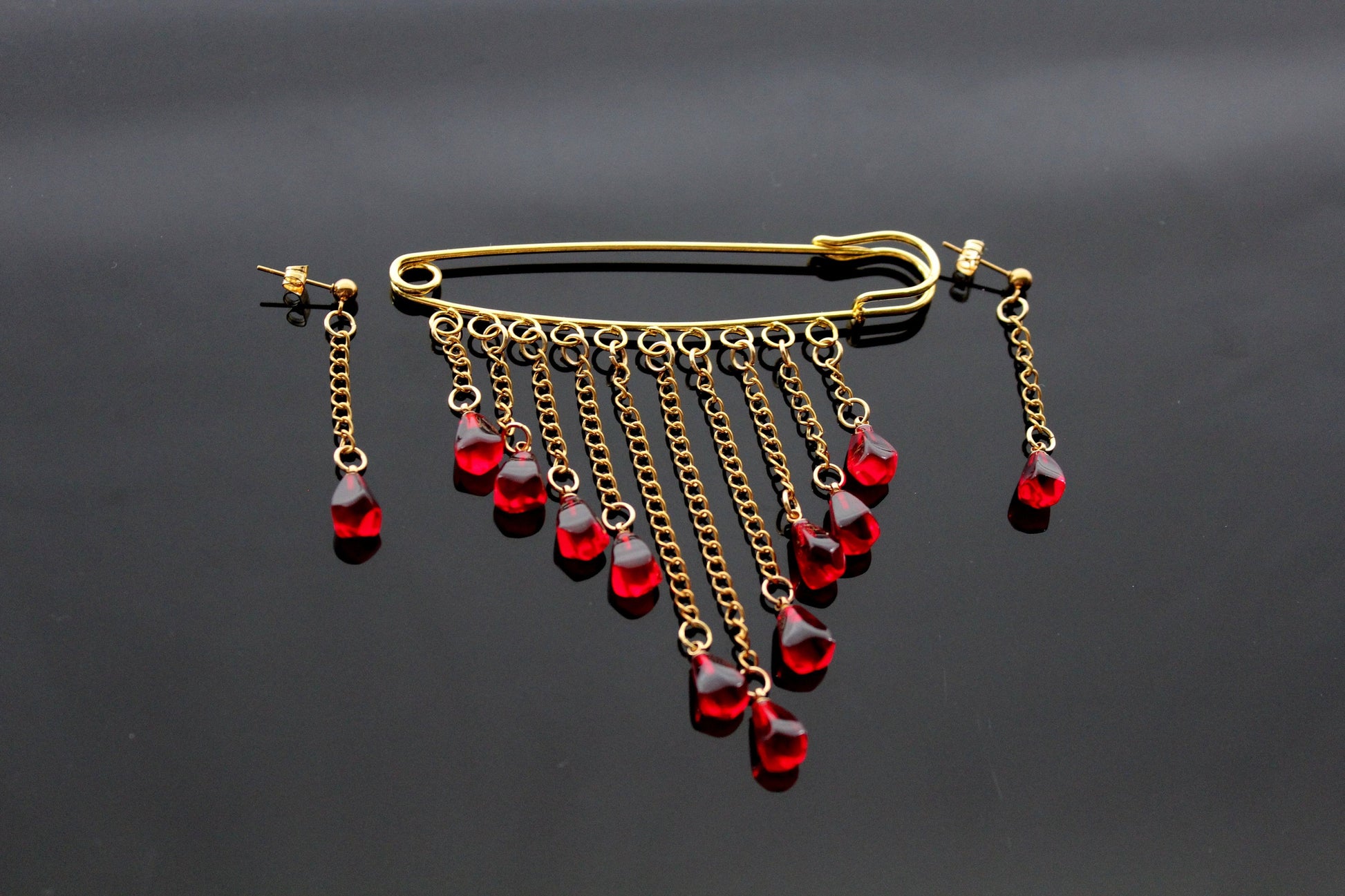 18K gold plated stainless steel Pomegranate glass hanging seeds brooch Safety pin brooch