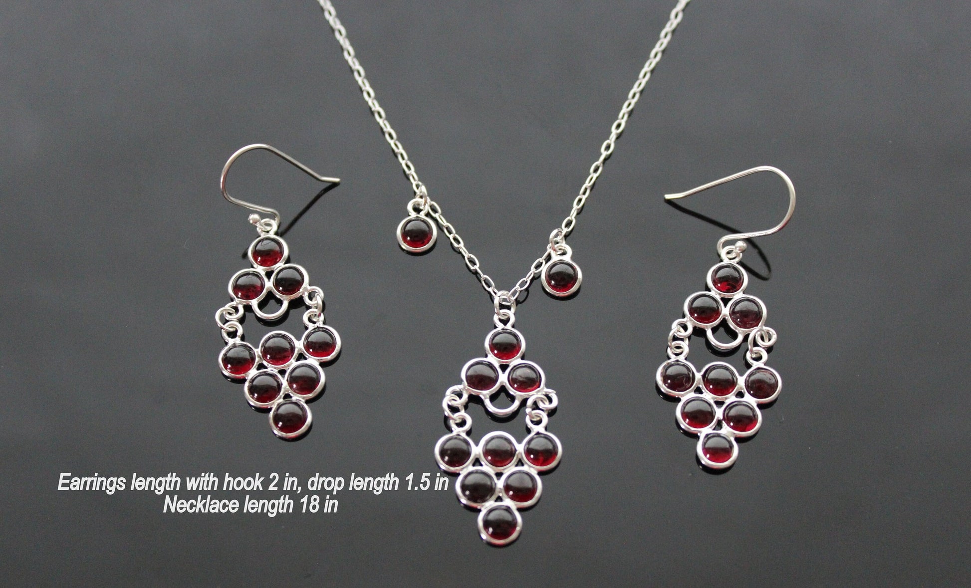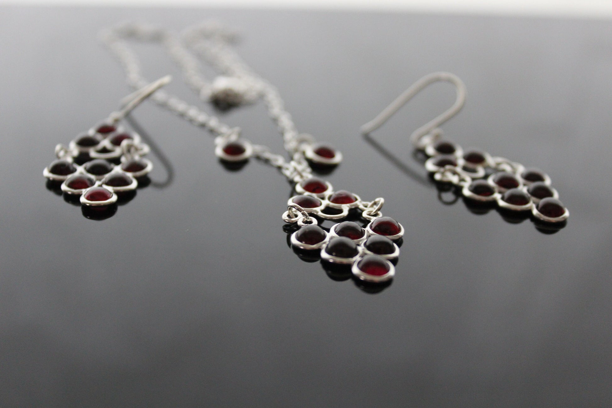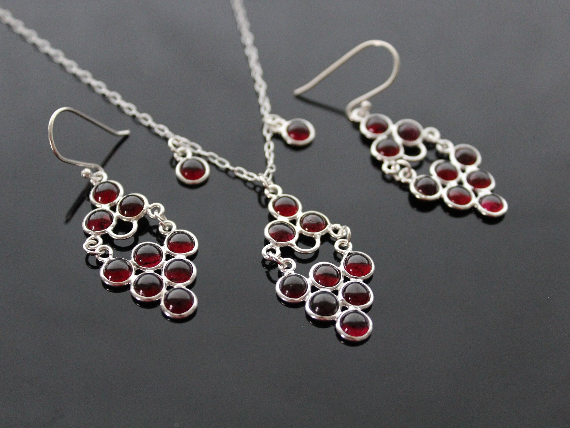 A set of jewelry made of 925 sterling silver and natural garnet.