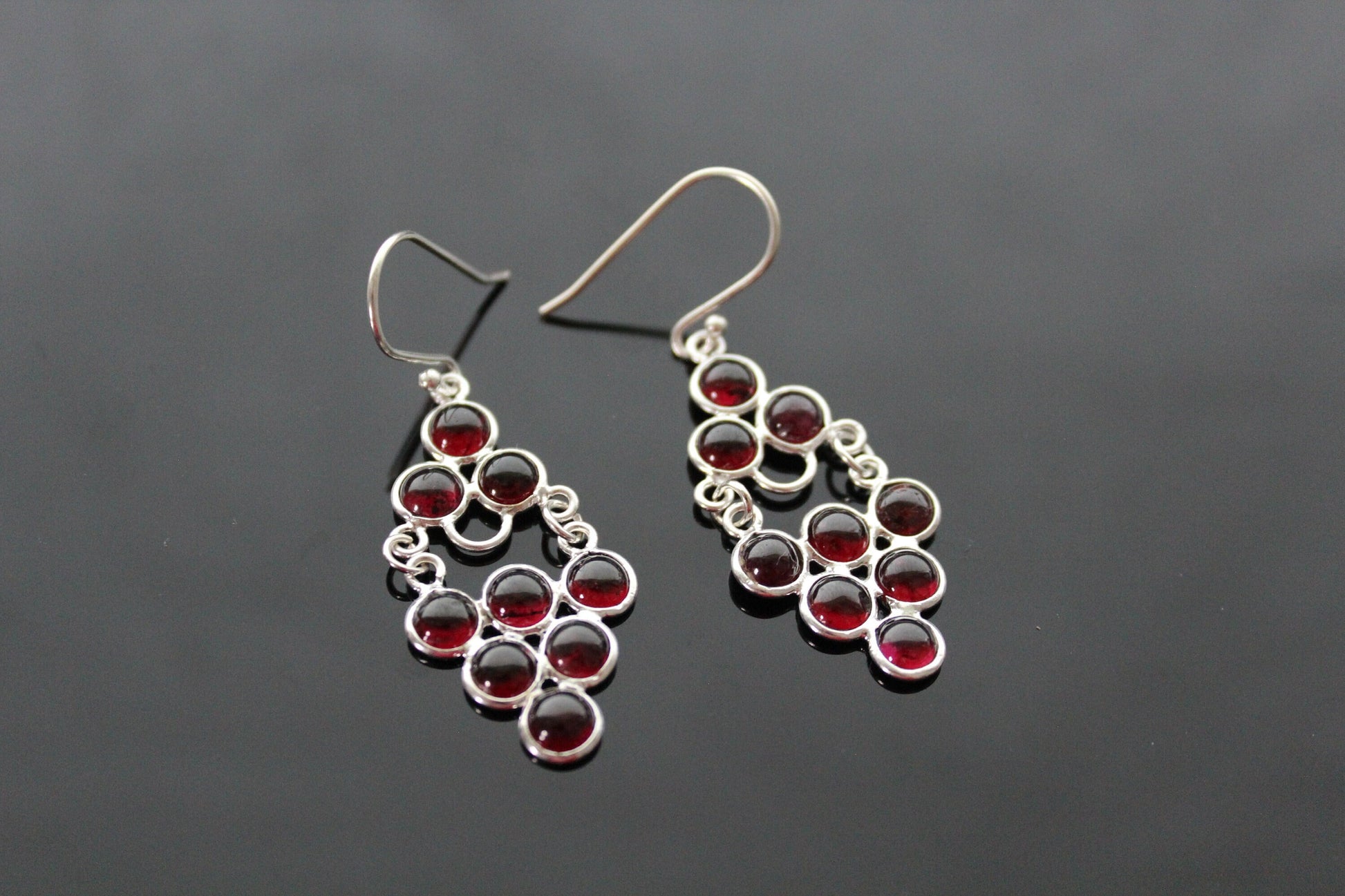 925 Sterling silver grape shape earrings with natural garnet