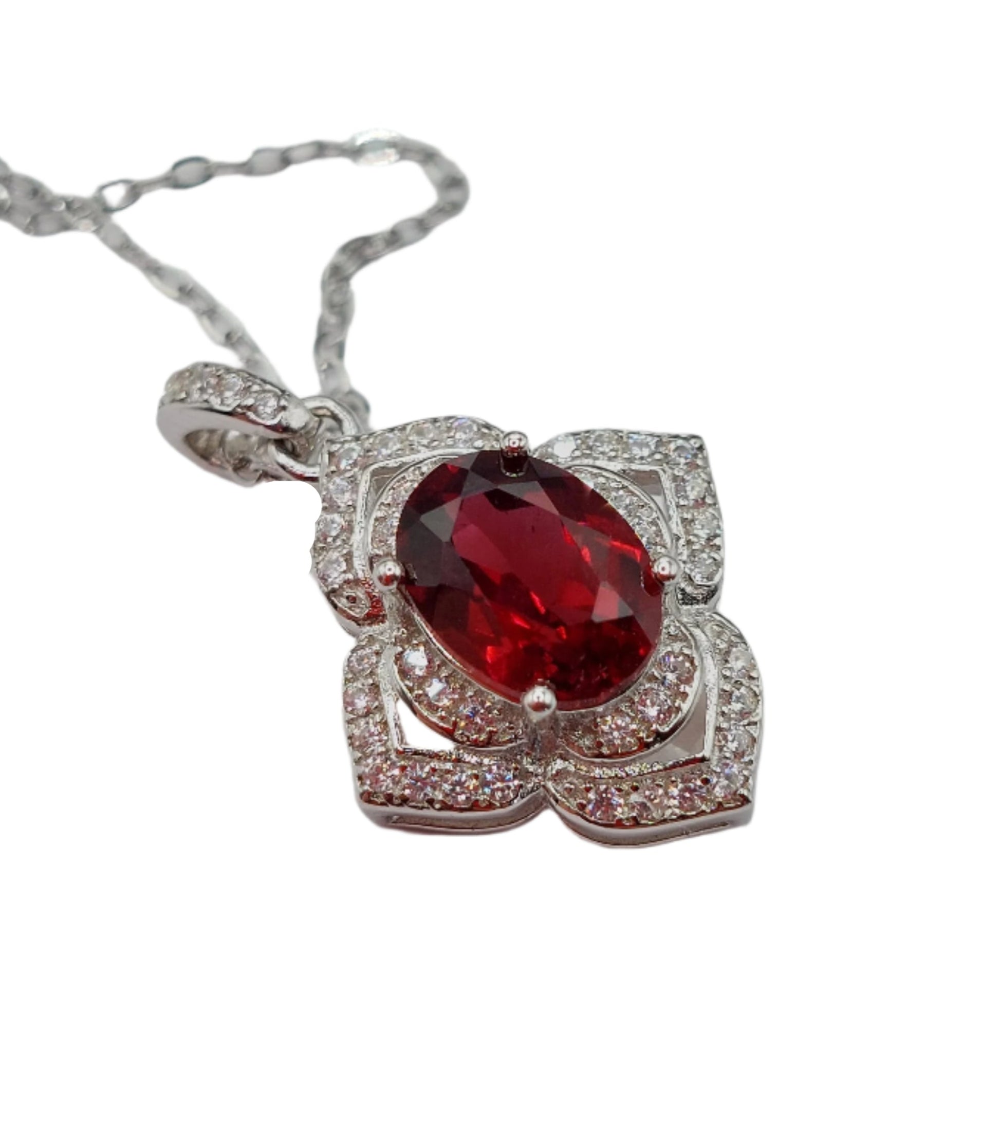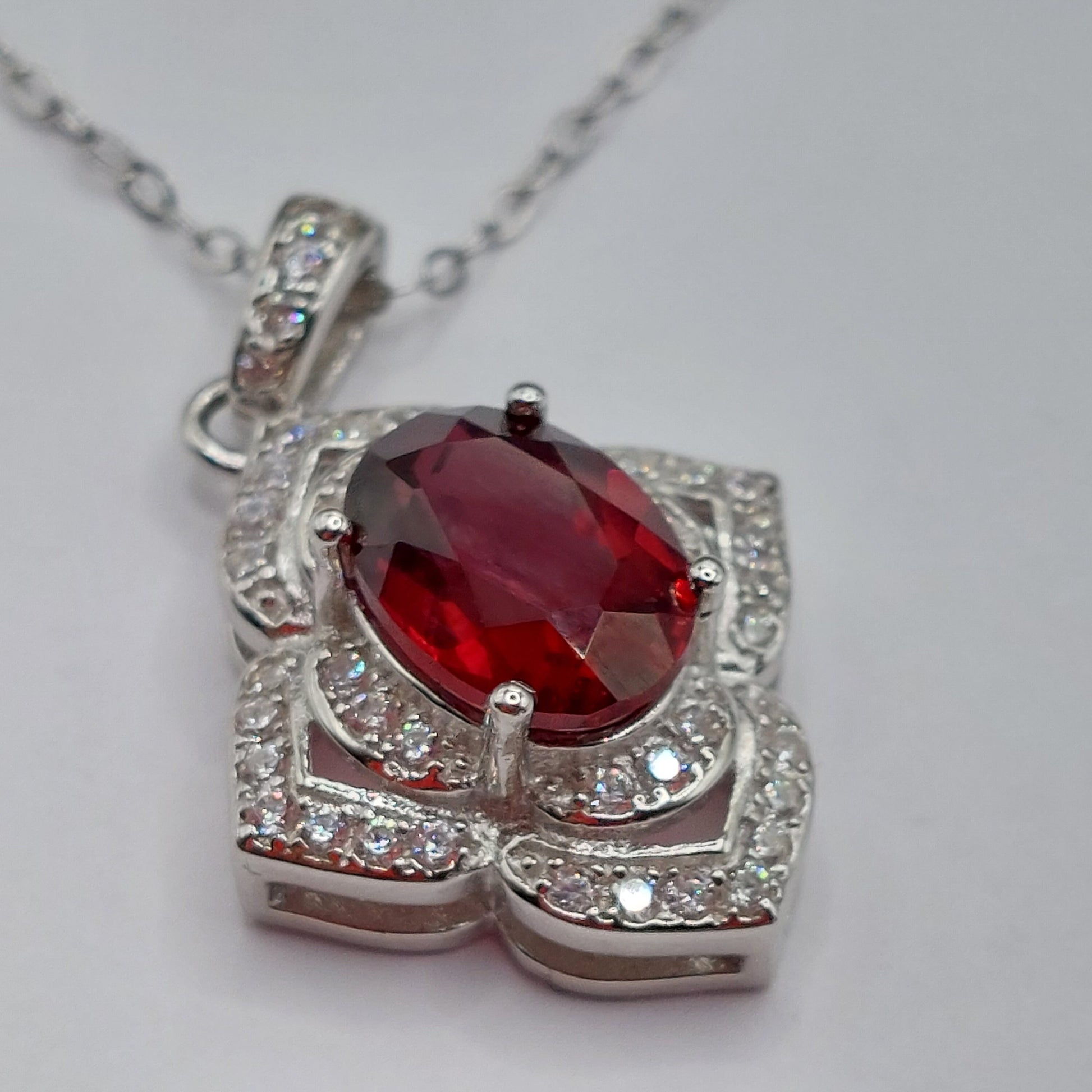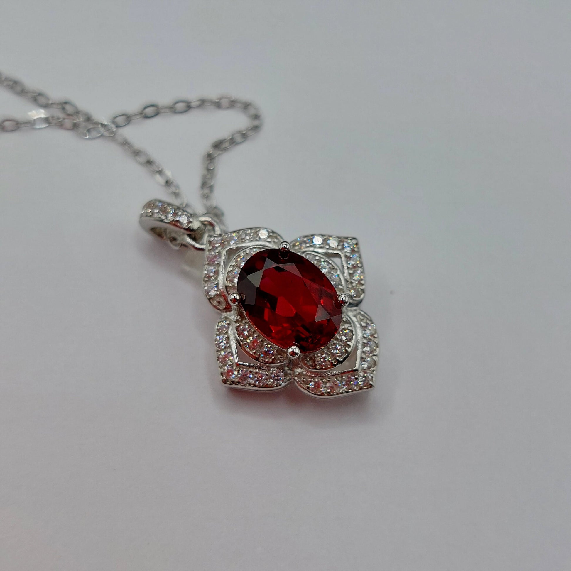 Elevate any outfit with our 925 sterling silver necklace, featuring a natural garnet gemstone and a 0.7 inch pendant on an 18 inch chain. Made with extra high quality sterling silver, this necklace is a timeless and elegant addition to any jewelry collection. Comes in a beautiful gift box for effortless gifting.