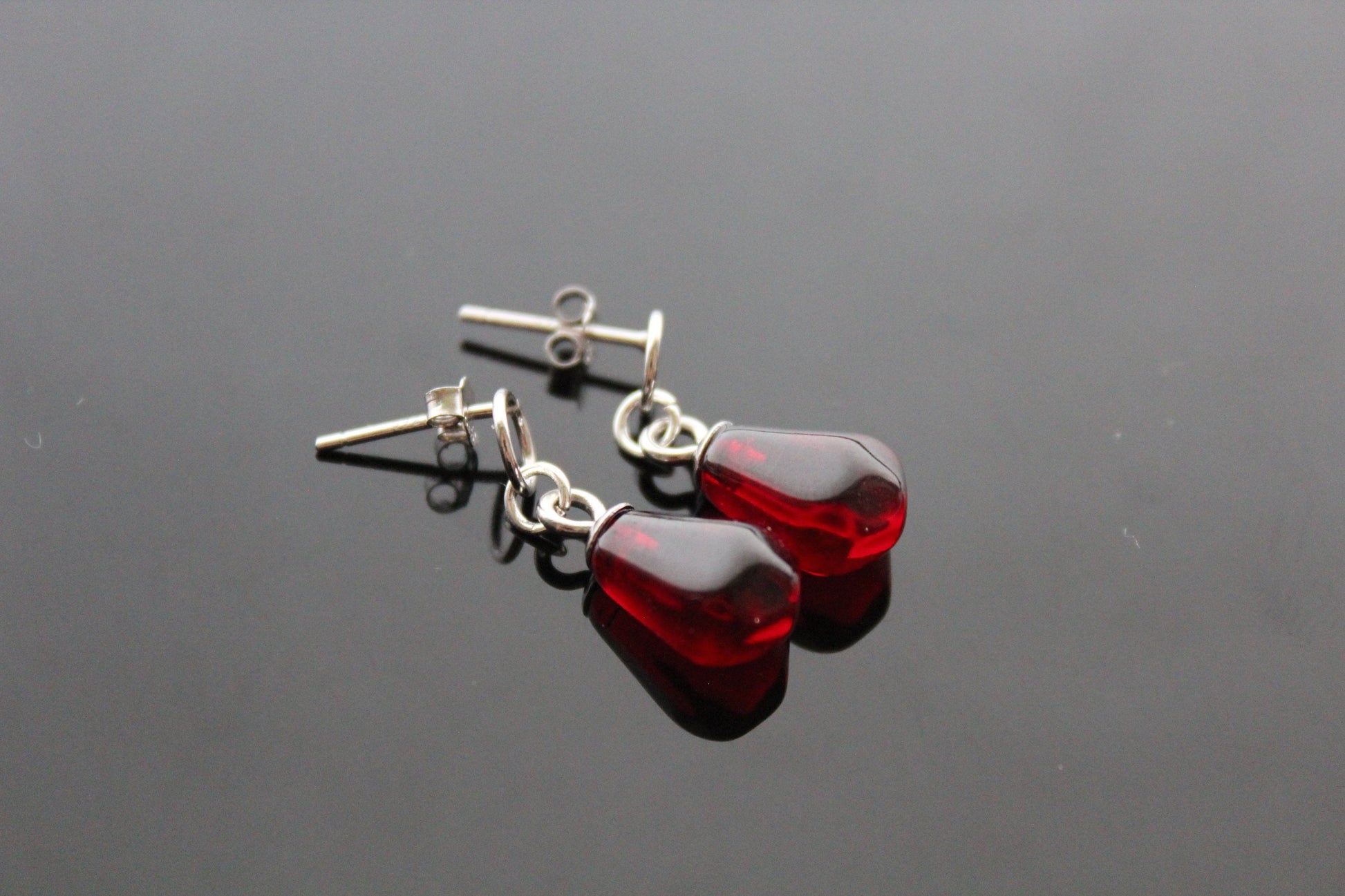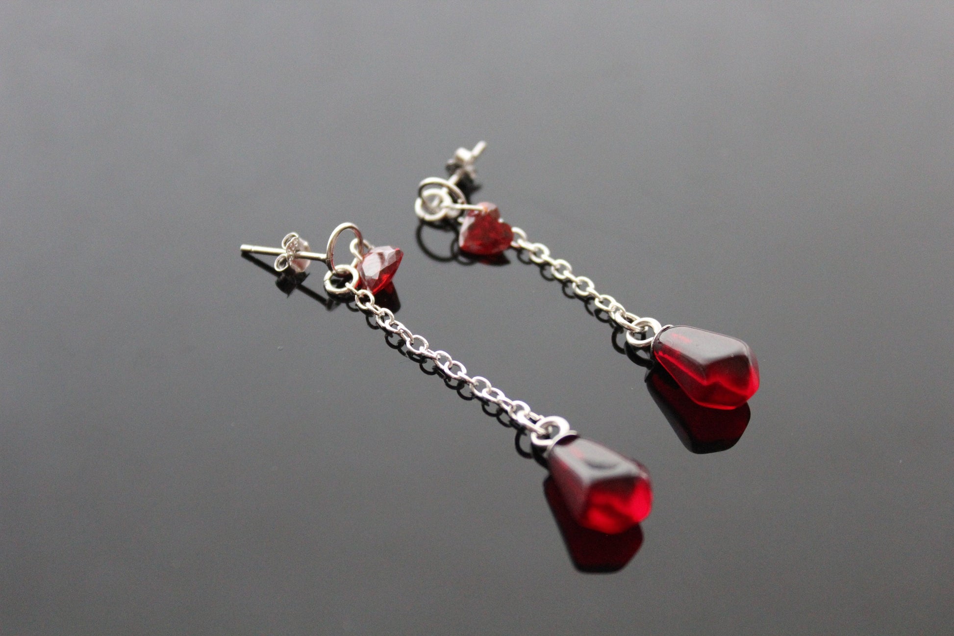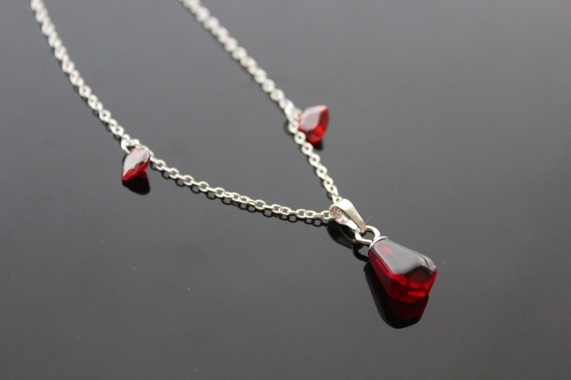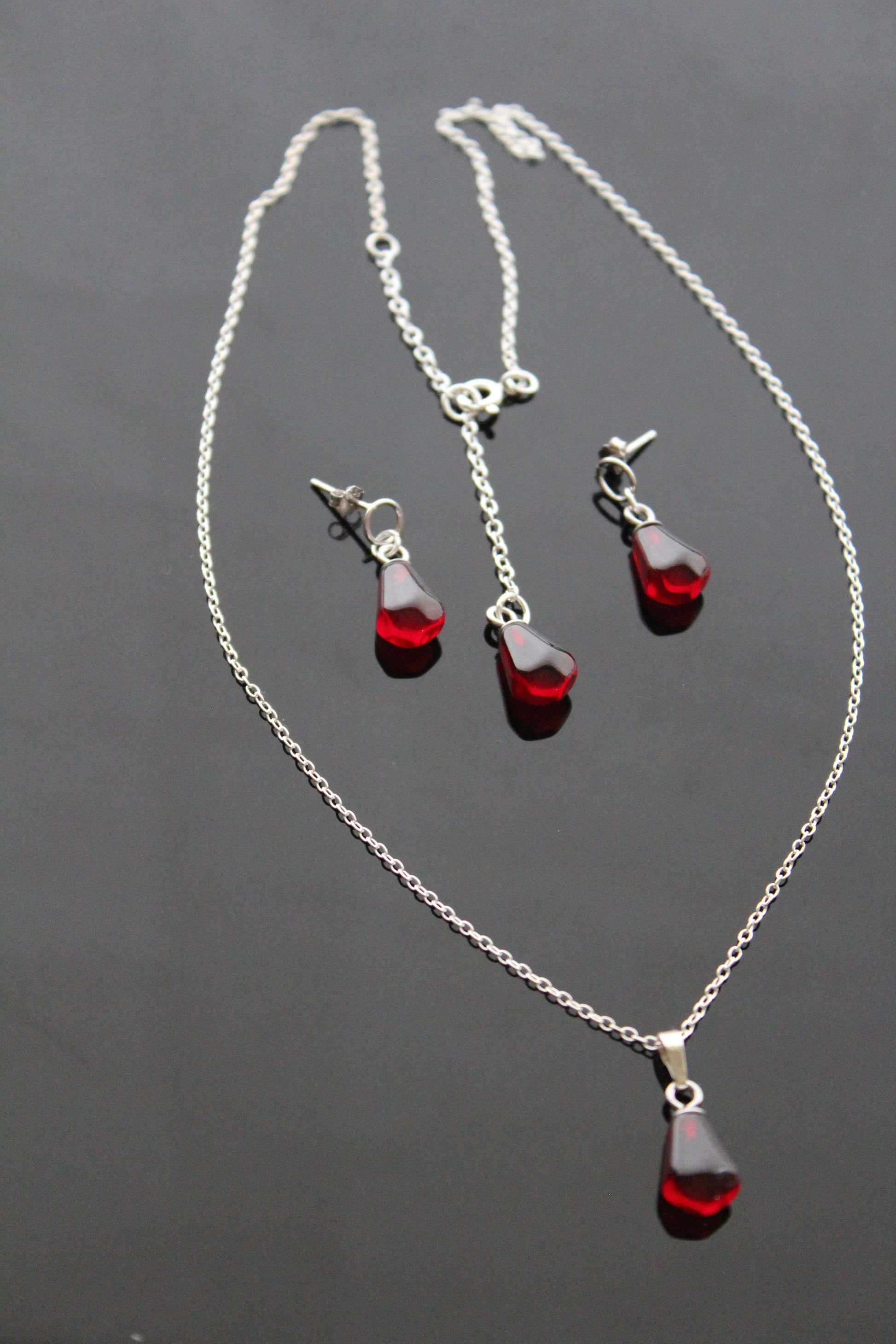 925 sterling silver pomegranate seeds jewelry set with Swarovski heart crystals and glass beads