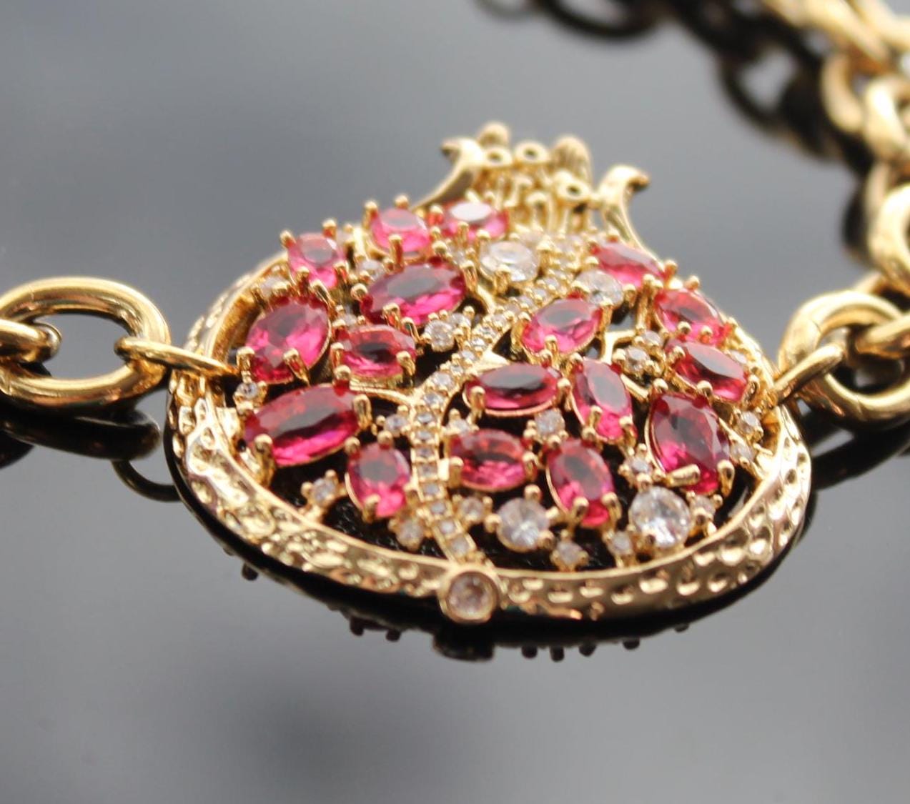 Adjustable 14K gold plated stainless steel pomegranate bracelet with crystals and zircons
