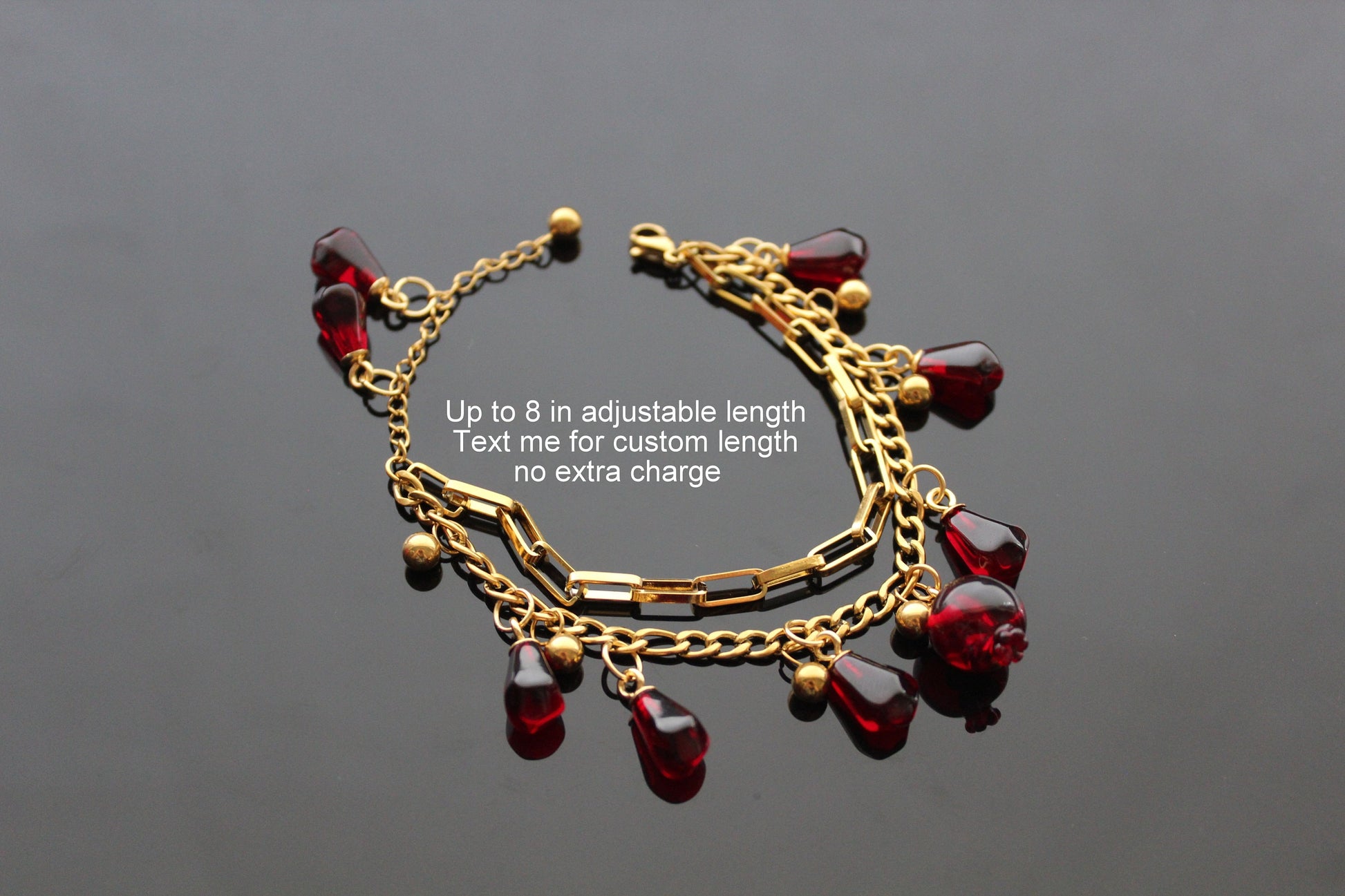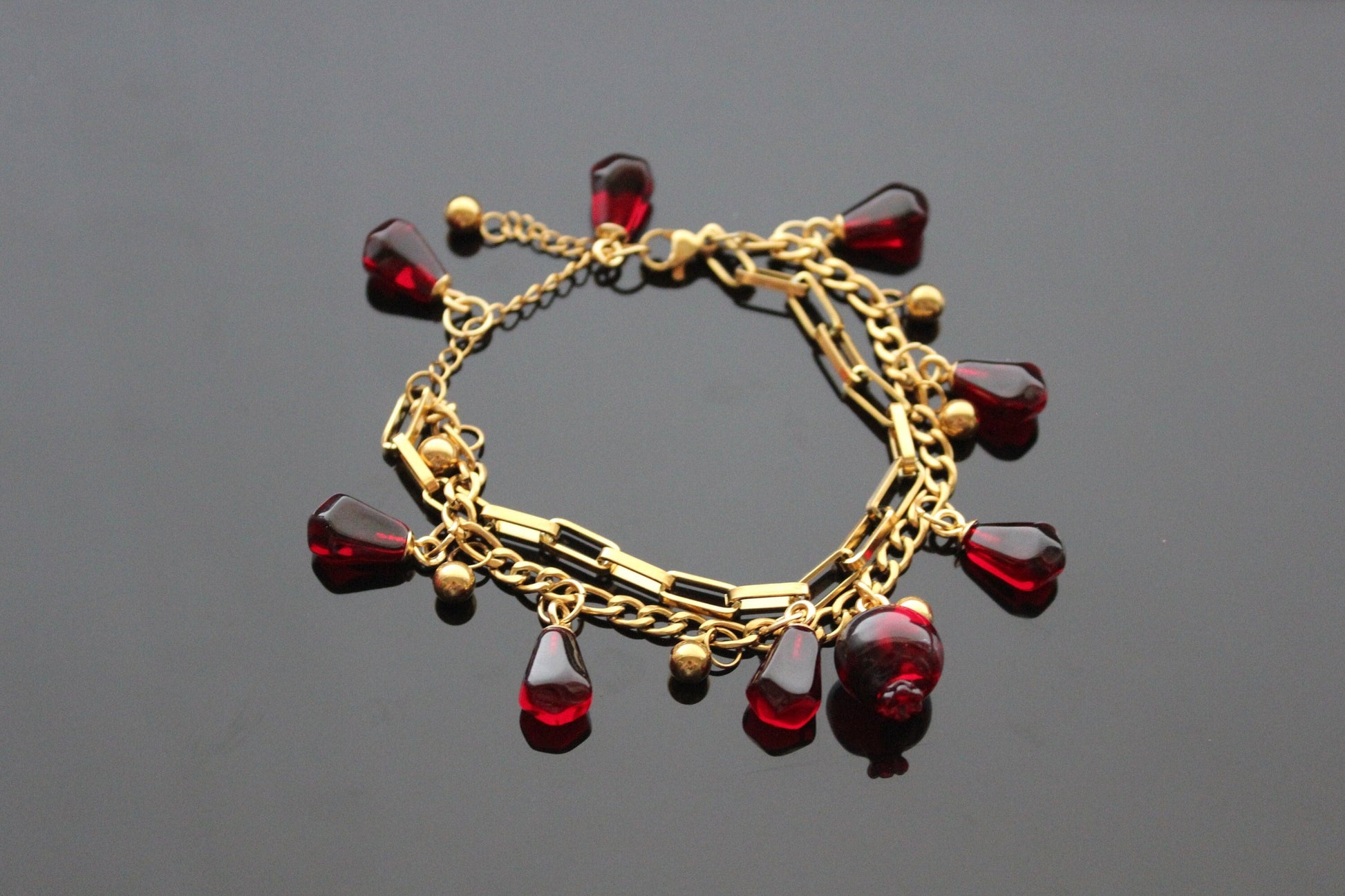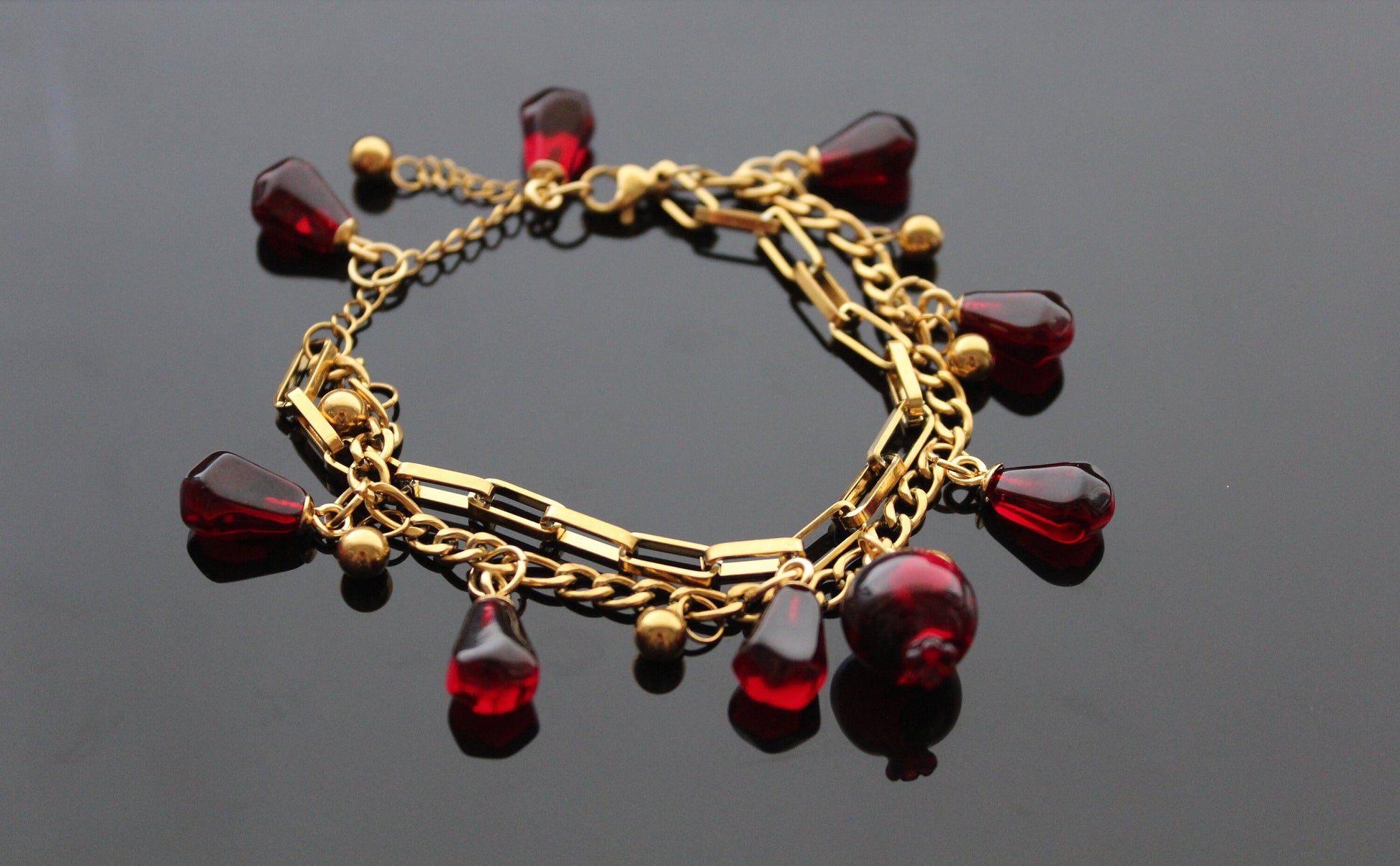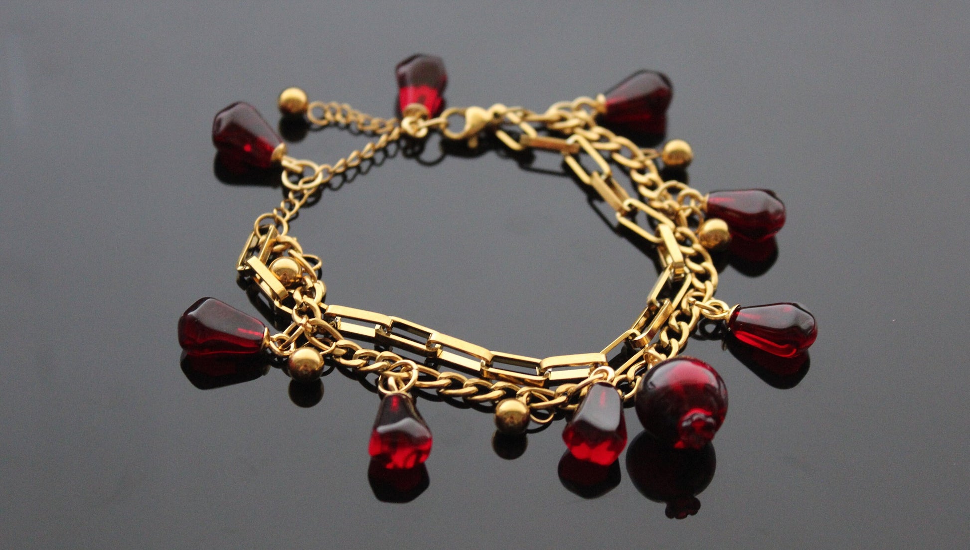 Adjustable 18K gold plated stainless steel pomegranate bracelet with resin or glass charms