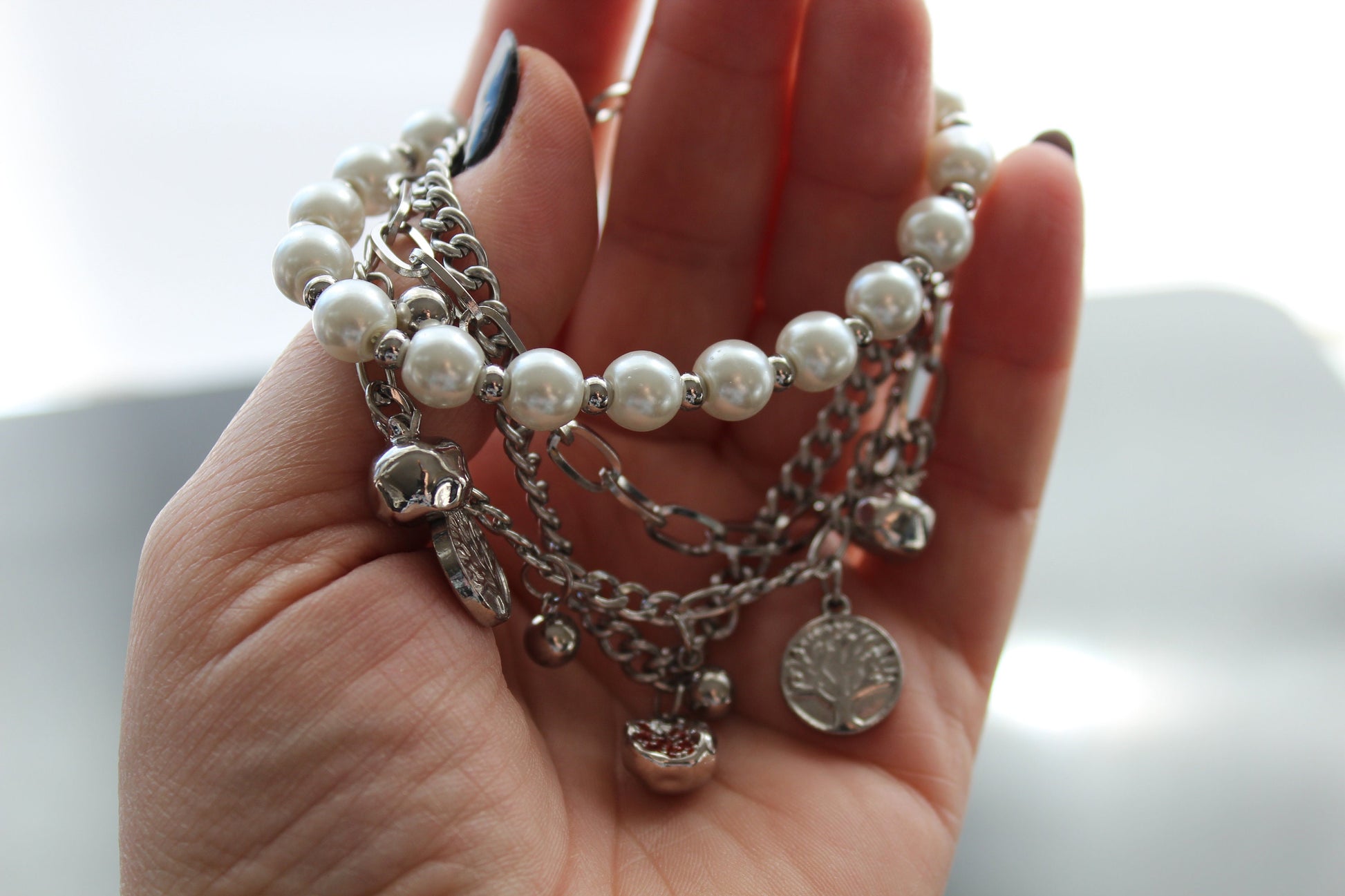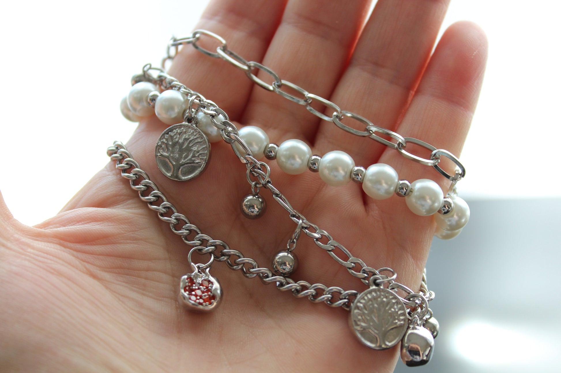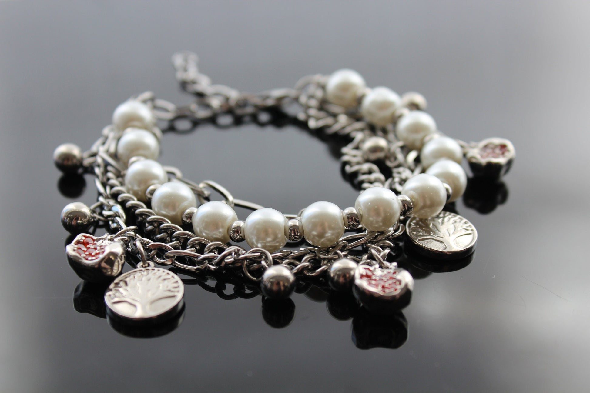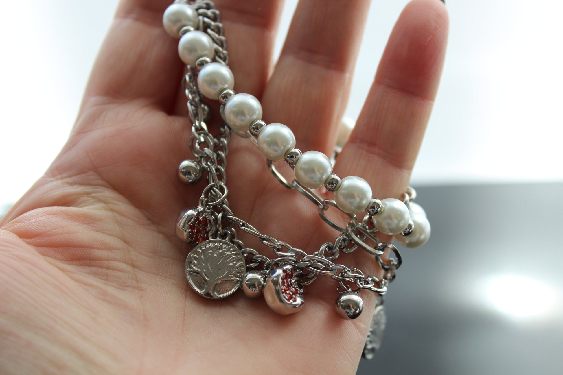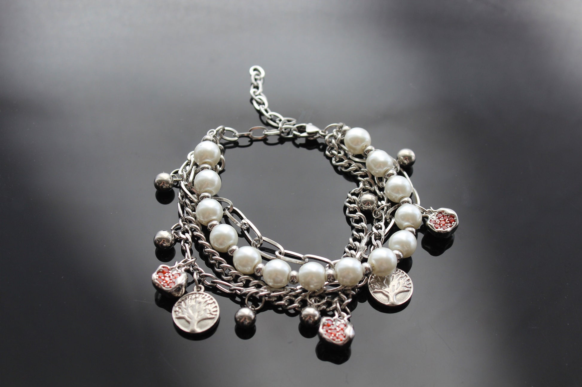 Adjustable Tree of life Silver plated stainless steel pomegranate bracelet with glass pearls