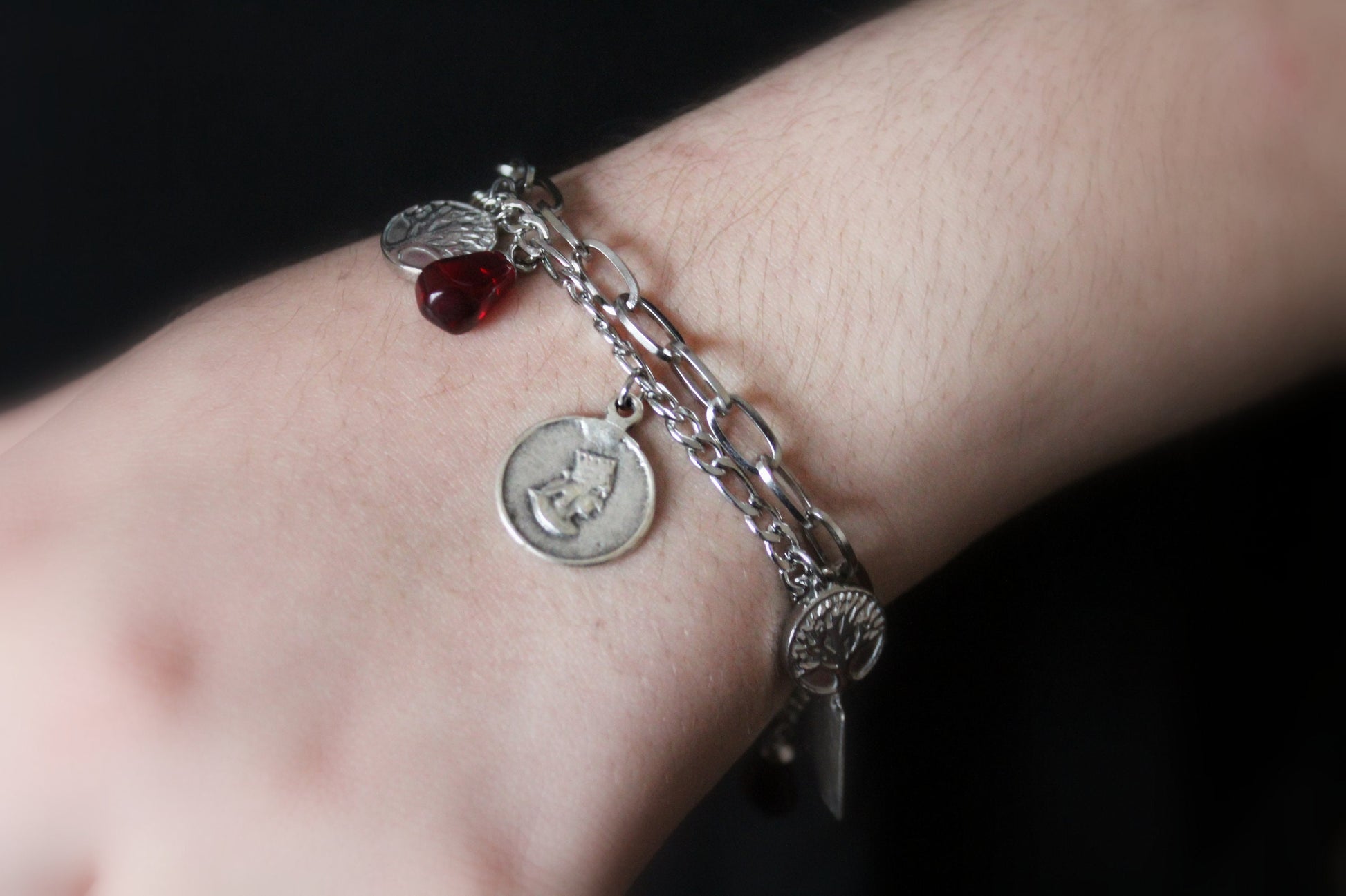 Armenian bangle with pomegranate seeds and charms