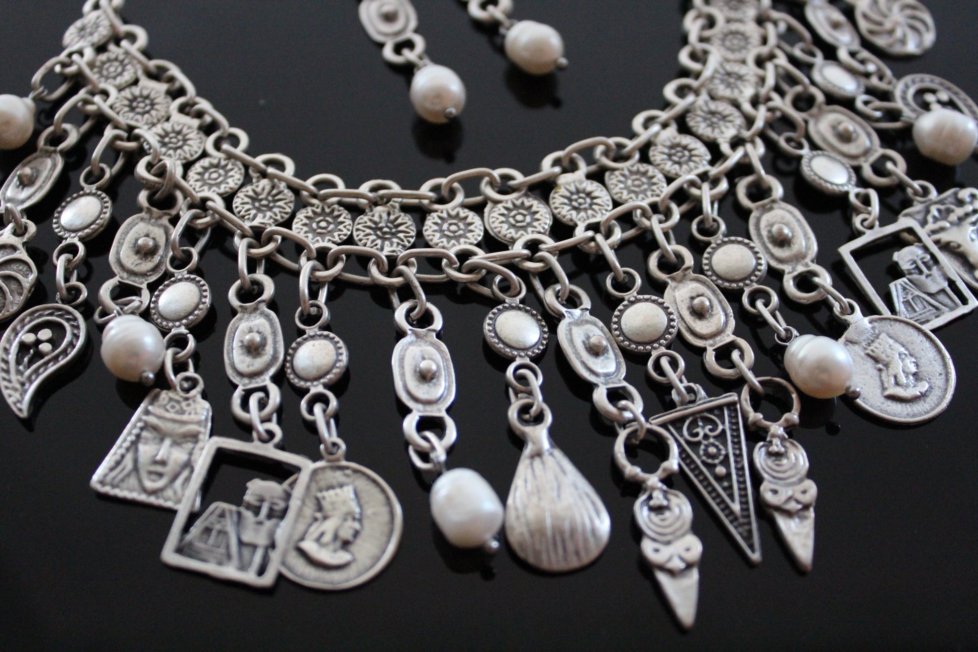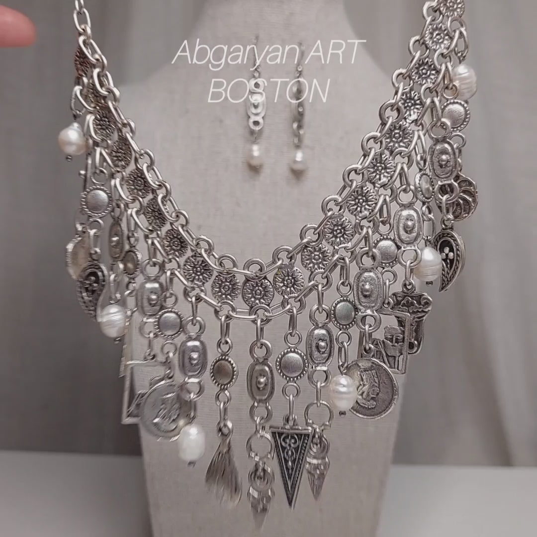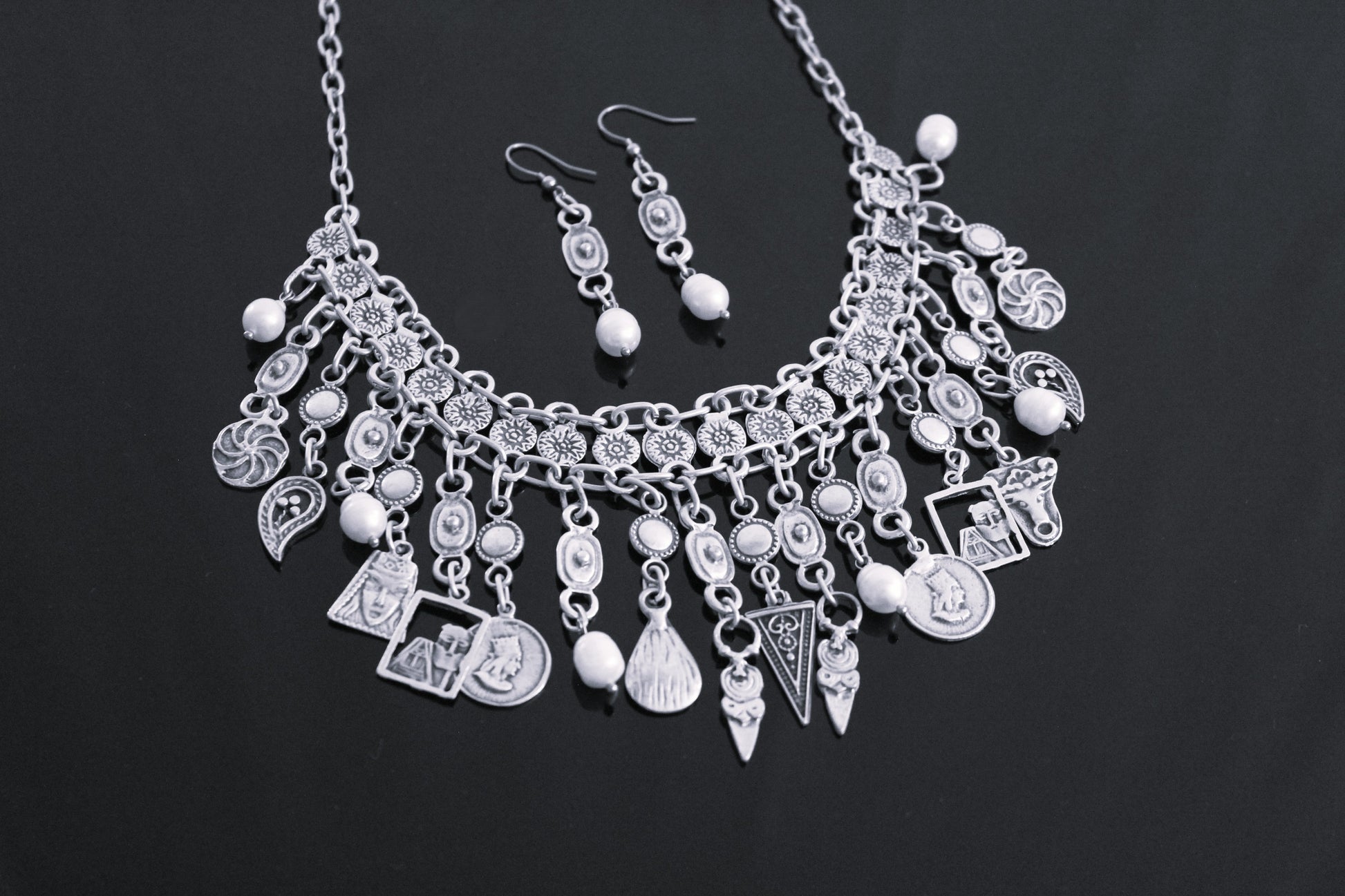 This layered necklace is made from high-quality silver-tone metal, with ornate detailing that evokes a vintage charm. The adjustable chain ensures a comfortable fit, making it a versatile piece suitable for any occasion. Whether worn as a statement piece or paired with other jewelry, this necklace is a perfect gift for those who appreciate artistry and cultural symbolism.