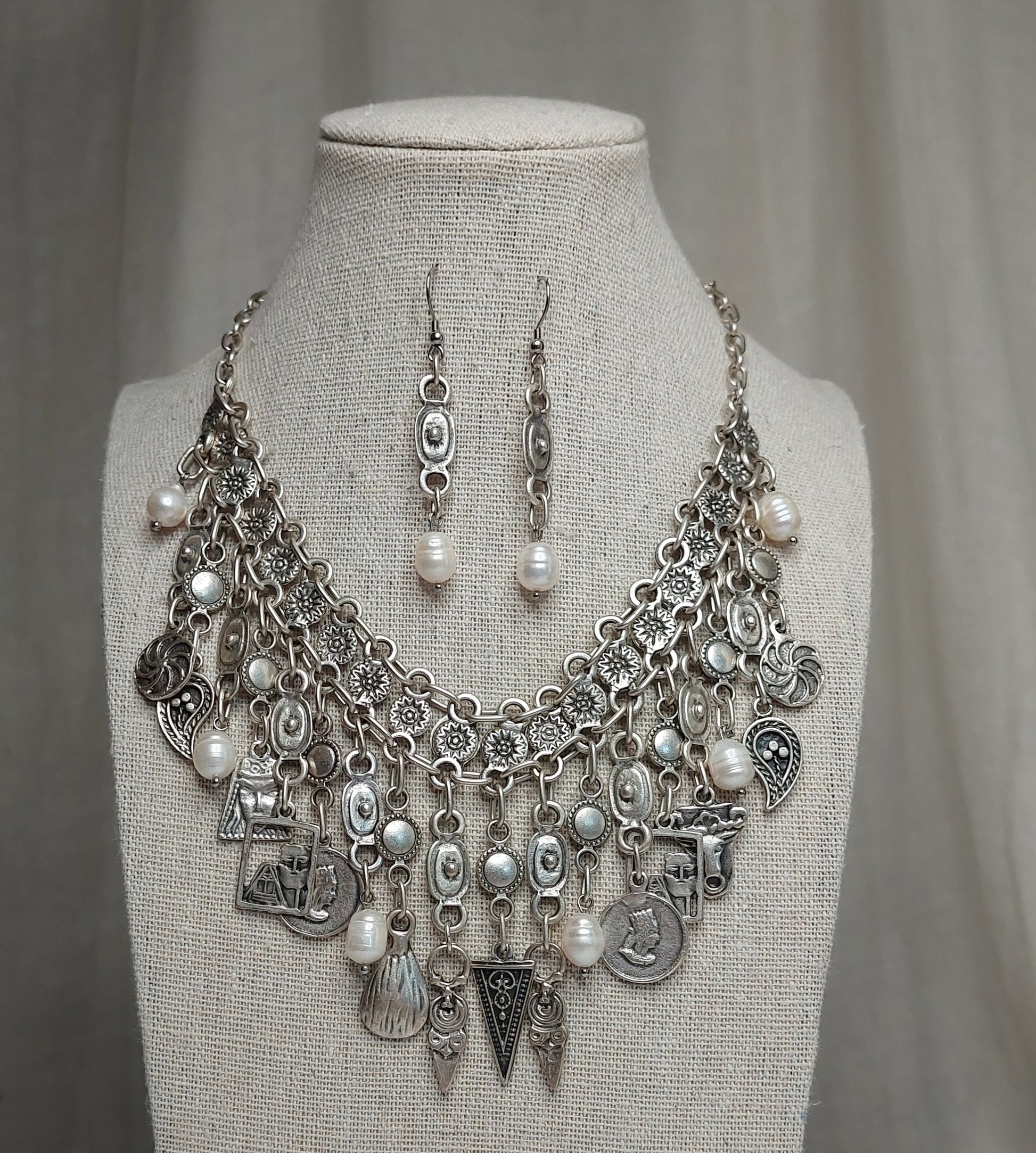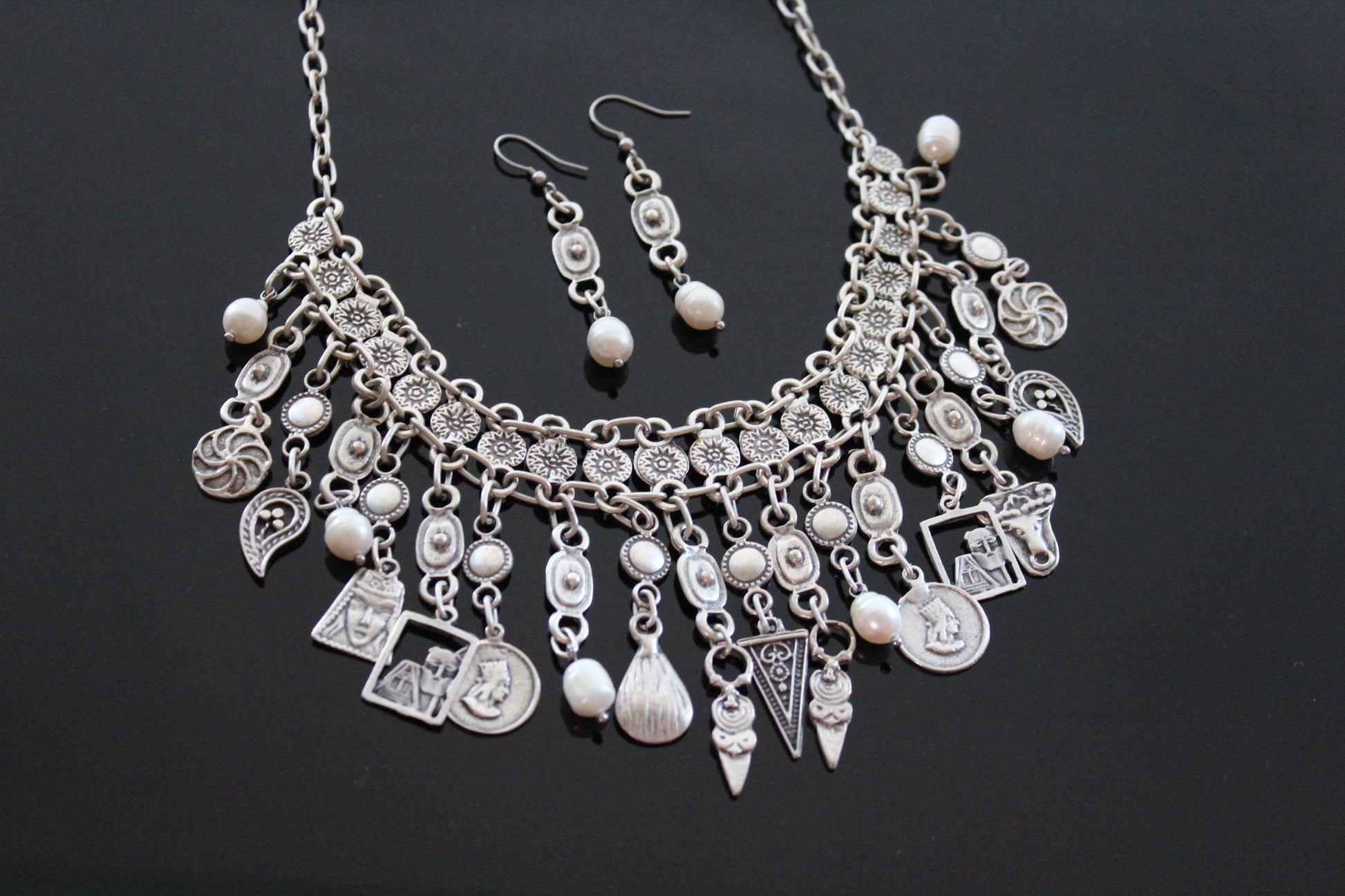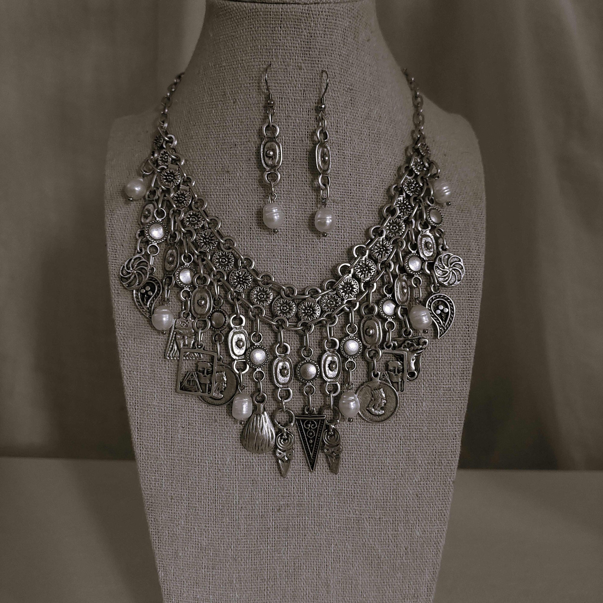 This layered necklace is made from high-quality silver-tone metal, with ornate detailing that evokes a vintage charm. The adjustable chain ensures a comfortable fit, making it a versatile piece suitable for any occasion. Whether worn as a statement piece or paired with other jewelry, this necklace is a perfect gift for those who appreciate artistry and cultural symbolism.