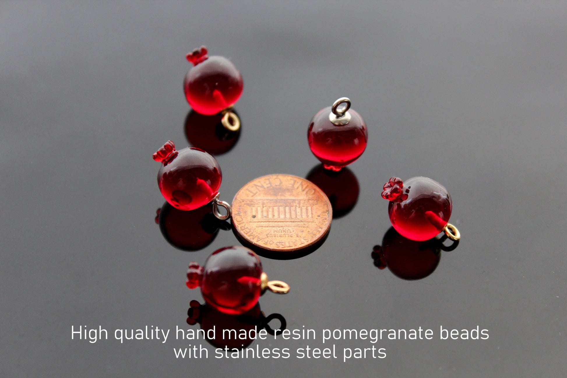 Expertly crafted Dark red resin pomegranate charms for all your jewelry making needs. Made from high-quality materials, these charms add a touch of glamour to any accessory. With this bulk pack, you'll have plenty of charms to add to your pieces, making them the perfect addition to your collection.