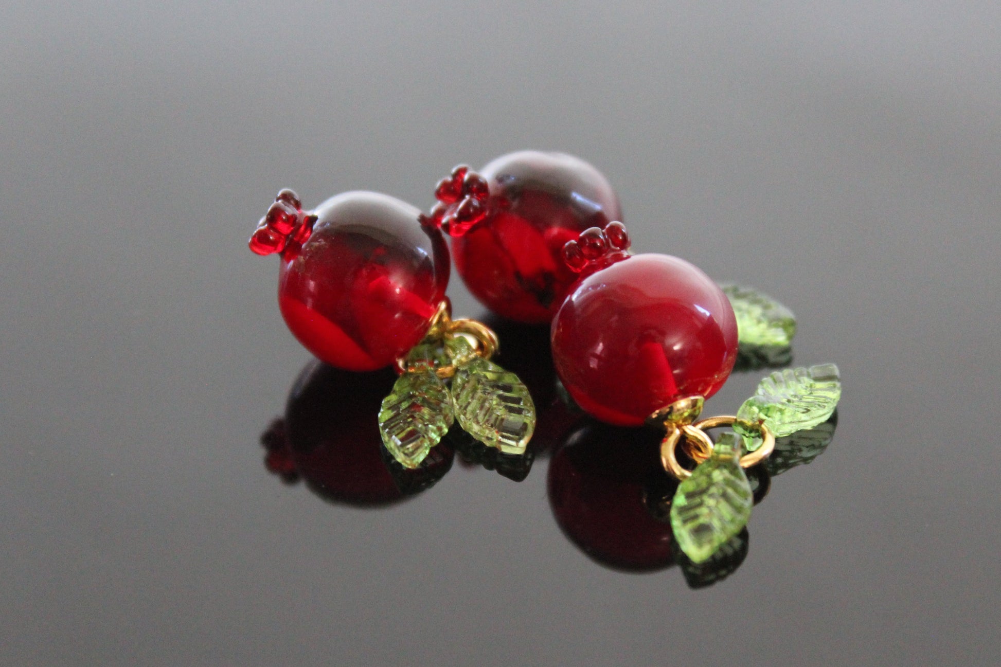 Expertly crafted Dark red resin pomegranate charms with green leaves for all your jewelry making needs. Made from high-quality materials, these charms add a touch of glamour to any accessory. With this bulk pack, you'll have plenty of charms to add to your pieces, making them the perfect addition to your collection.