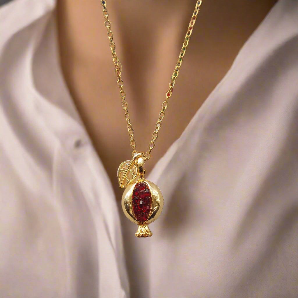 Pomegranate pendant necklace with tarnish free materials