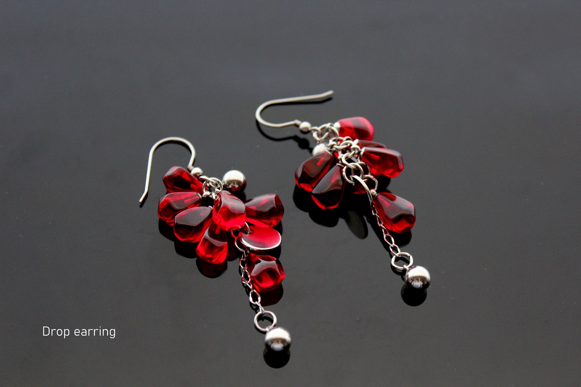 Glass handmade pomegranate seeds stainless steel jewelry set