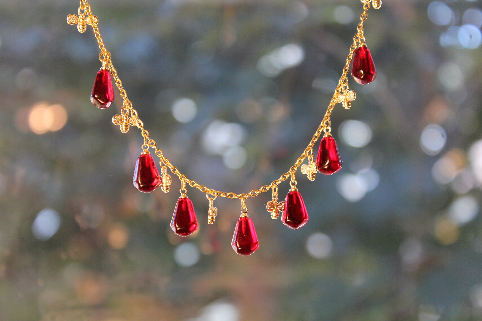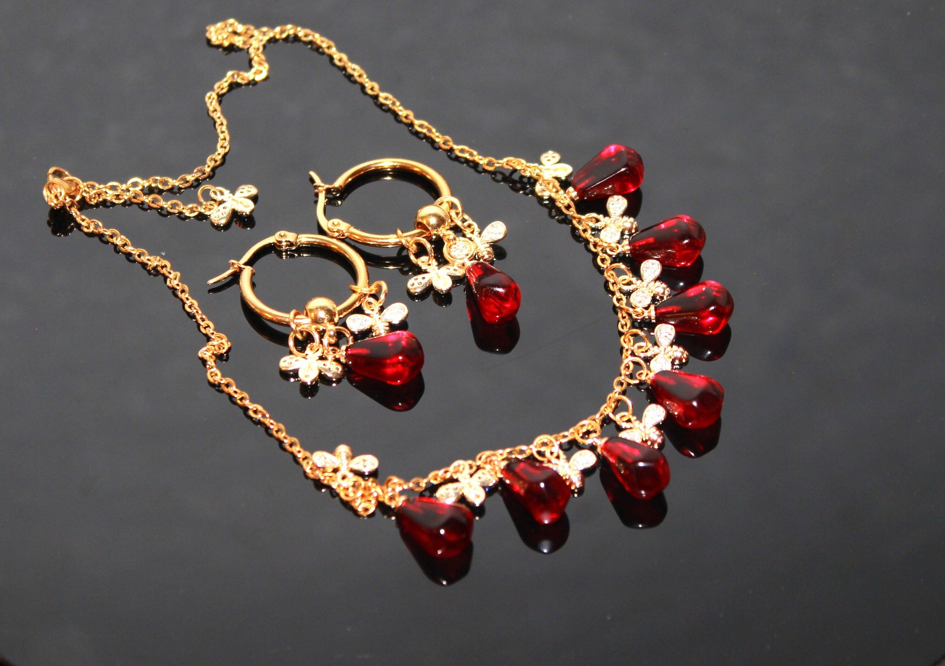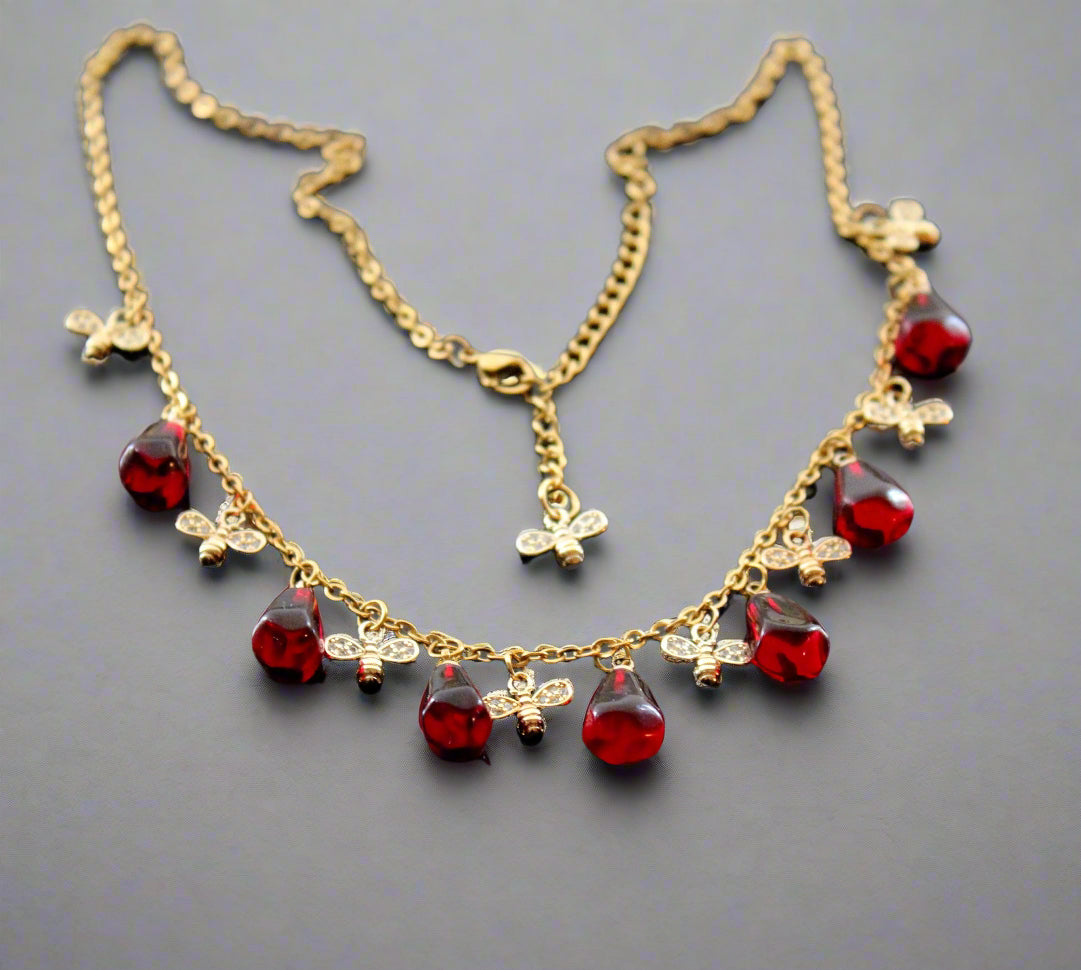 Hand made 14K gold plated Pomegranate seeds and gold bees jewelry set non tarnish stainless steel colorfast jewelry