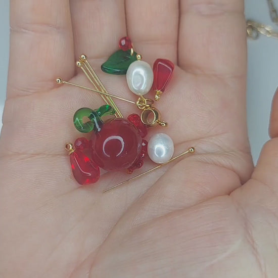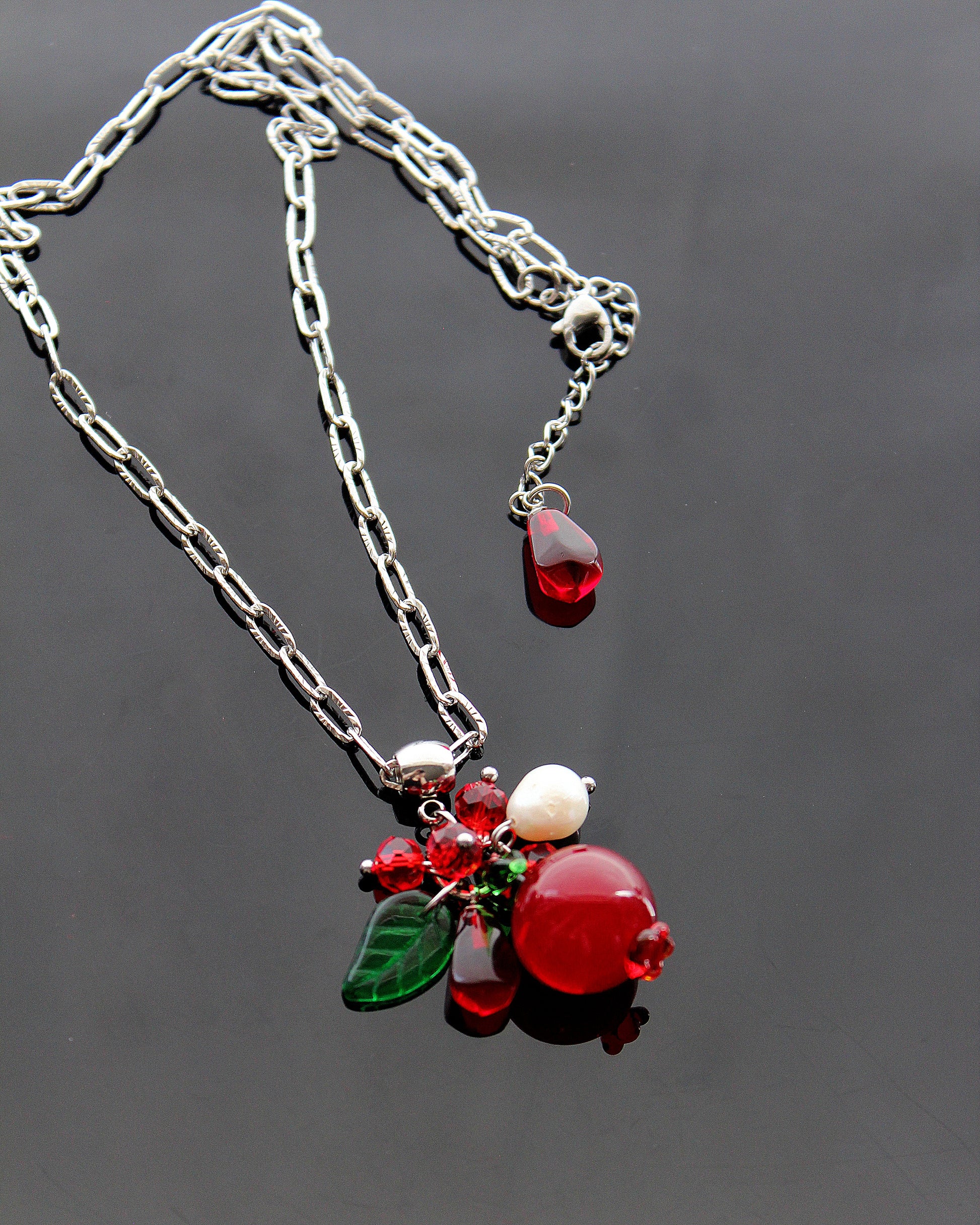 Hand Made Glass Pomegranate pendant necklace with Natural Pearl