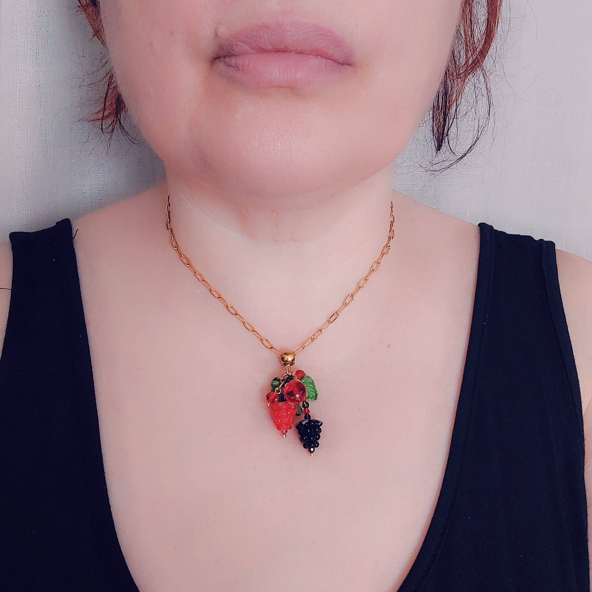 Hand Made Glass Raspberry Necklace with Gold Hardware