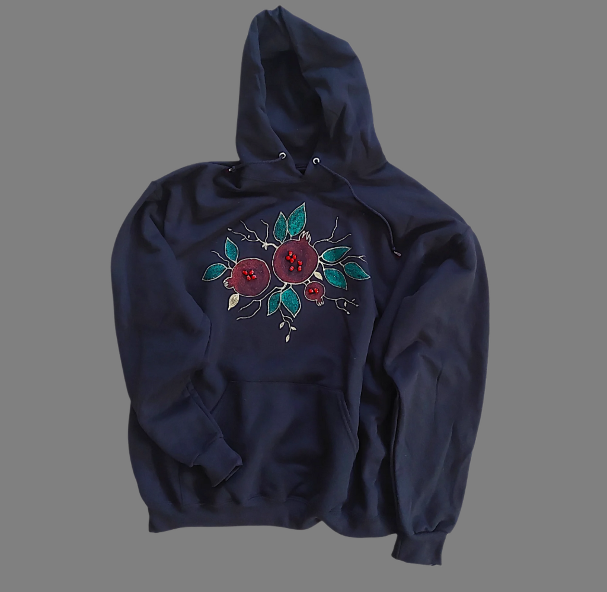 Hand painted pomegranate Hoodie sweatshirt