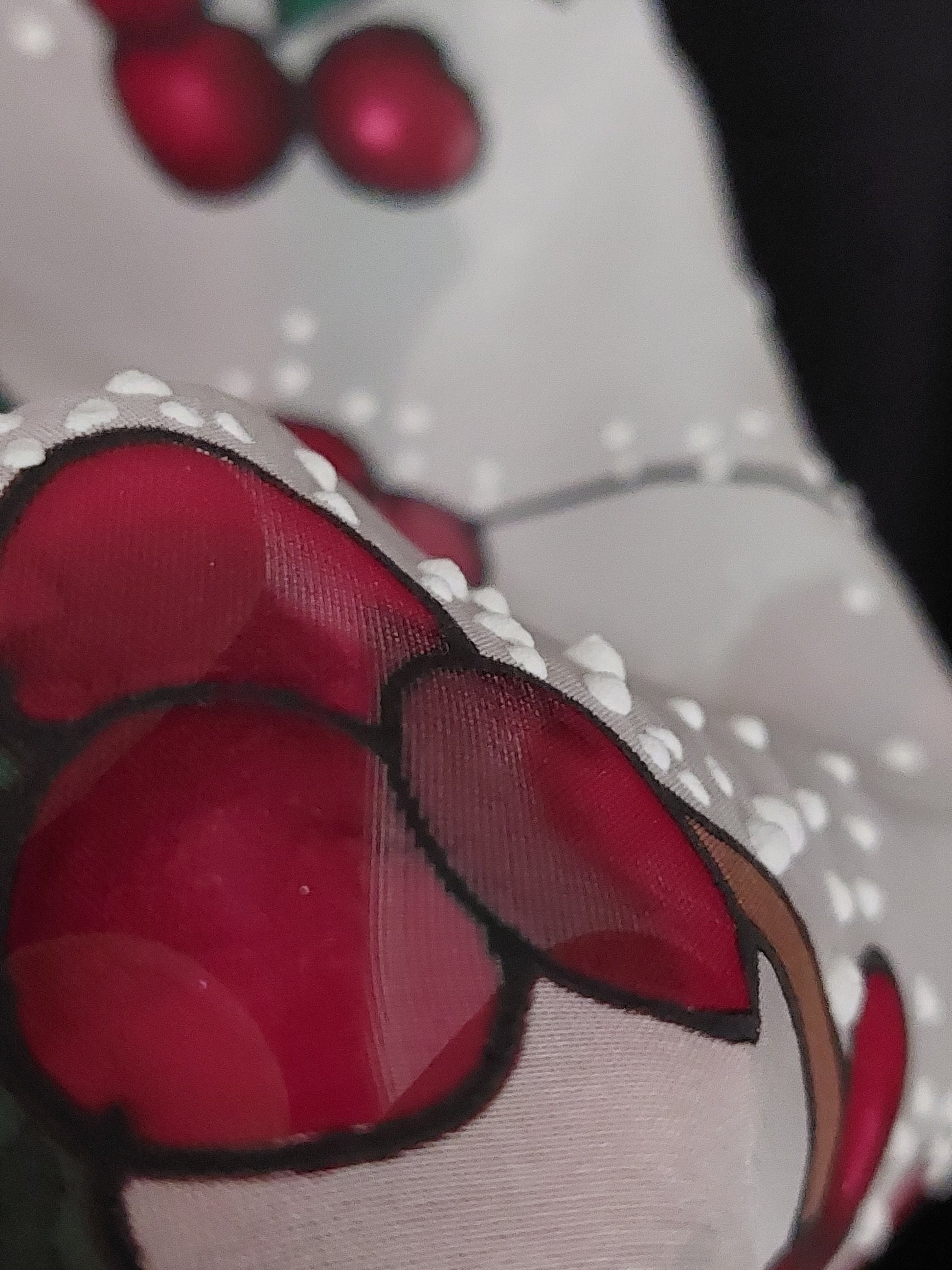 This stunning scarf features a captivating scene of birds perched on branches laden with snow-covered berries. The delicate snowflakes seem to dance across the soft gray background, creating a winter wonderland. The vibrant colors and intricate details bring the scene to life, making this scarf a true work of art.