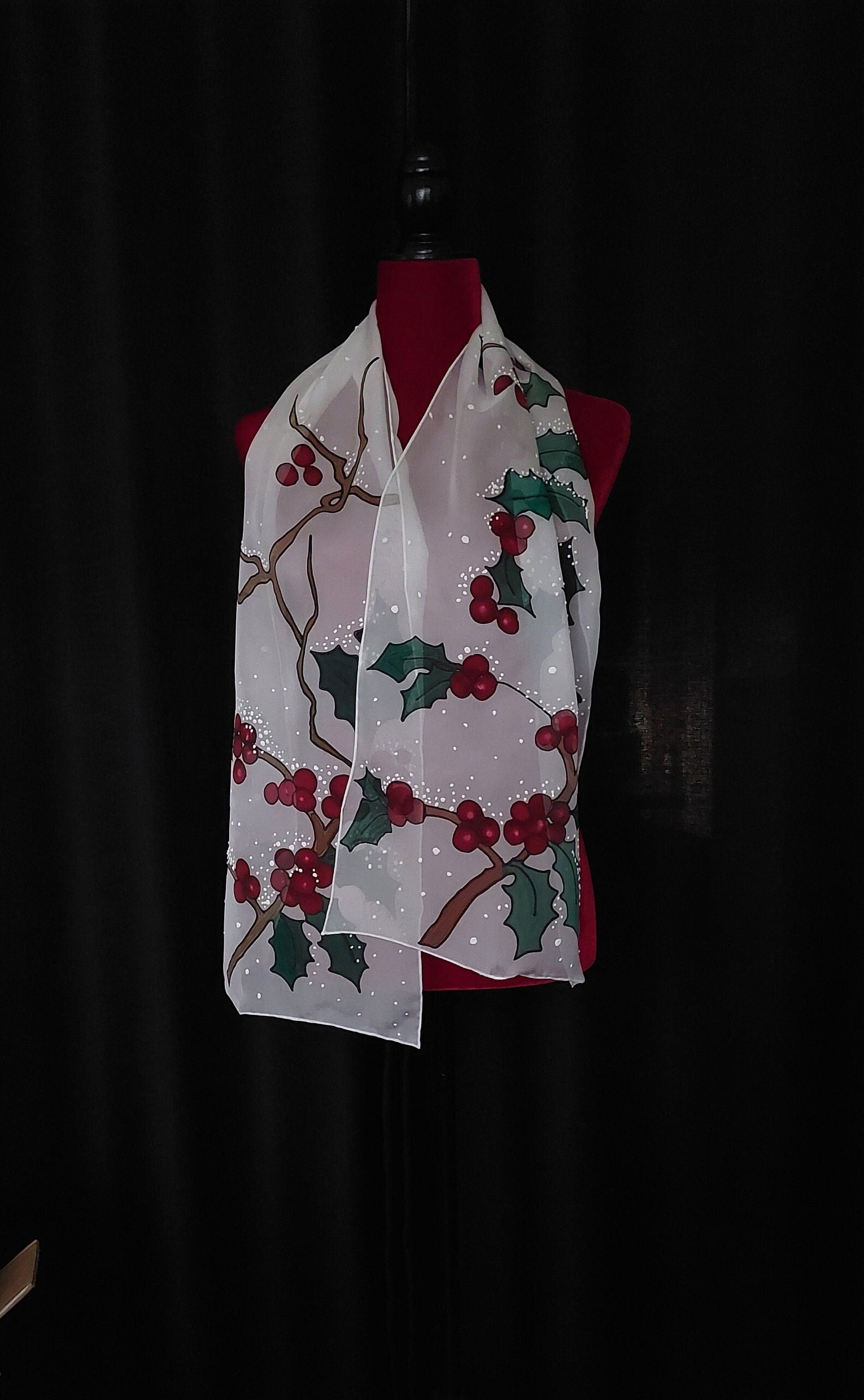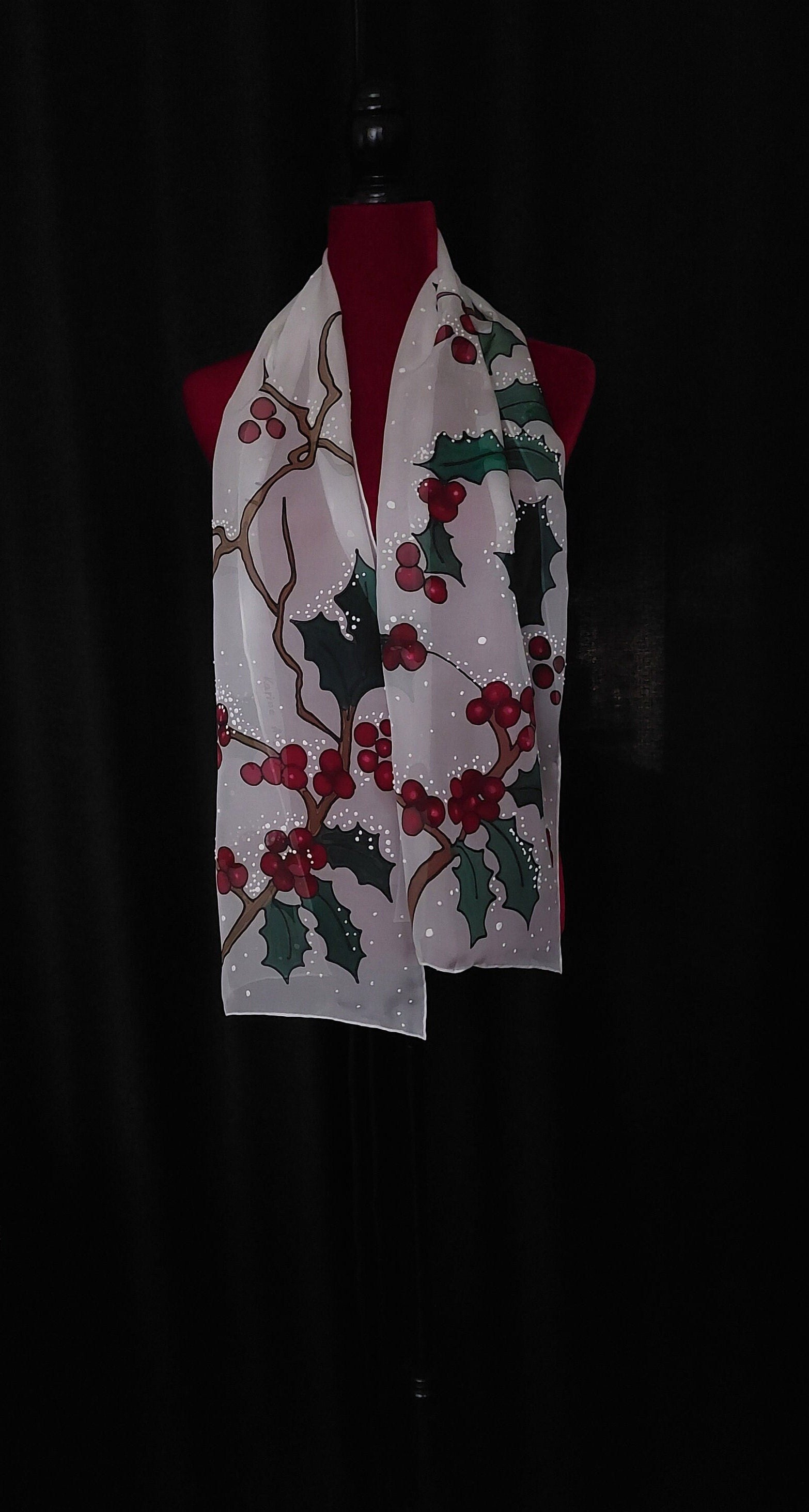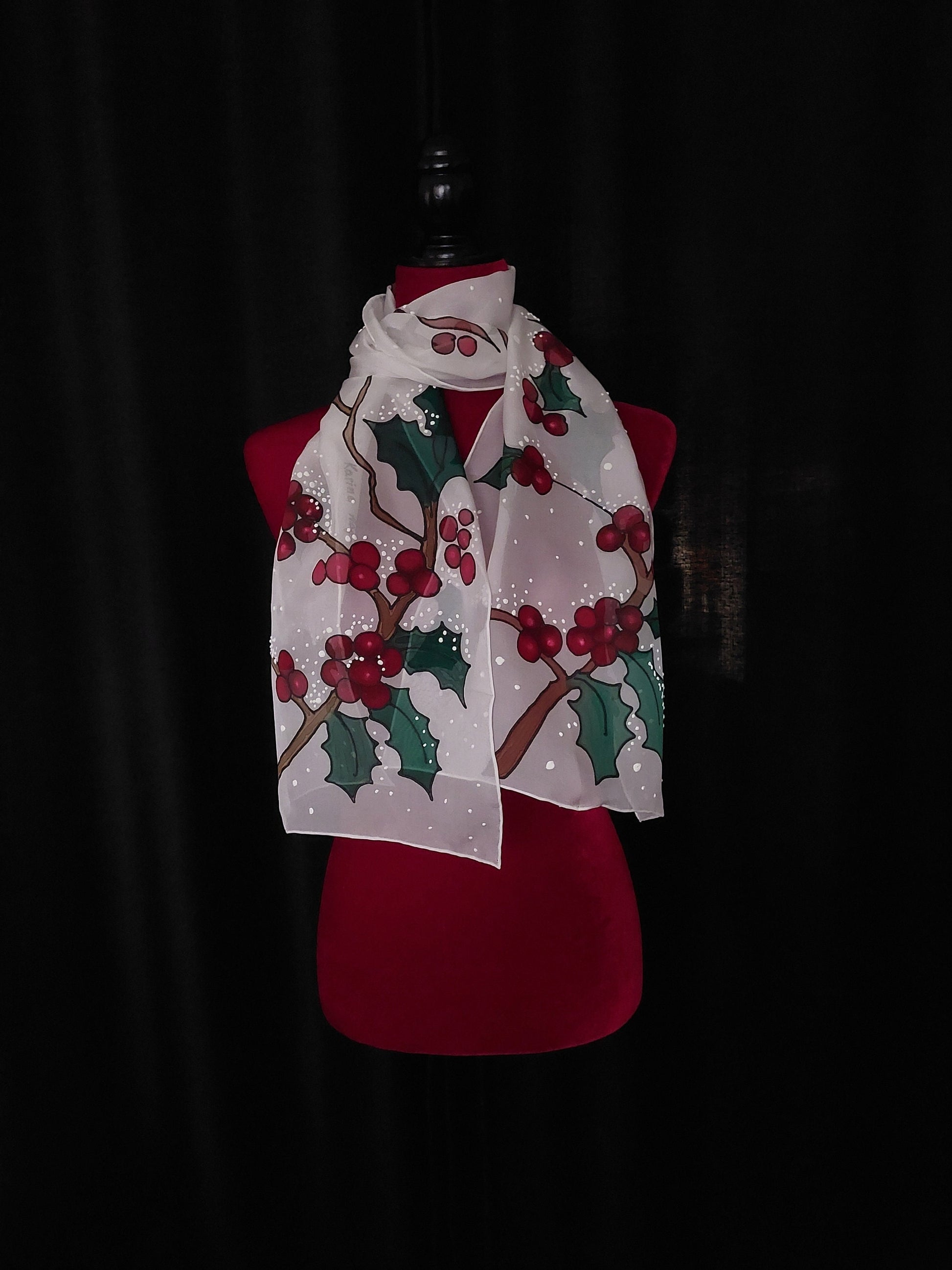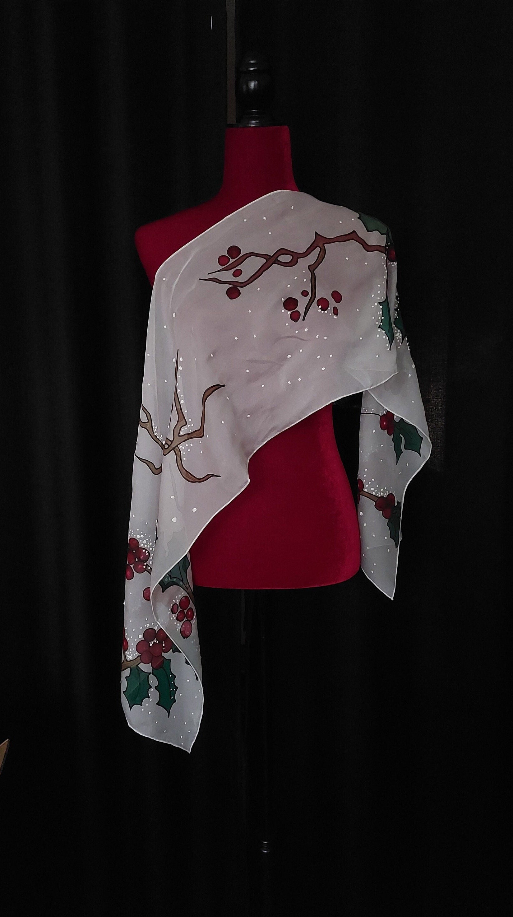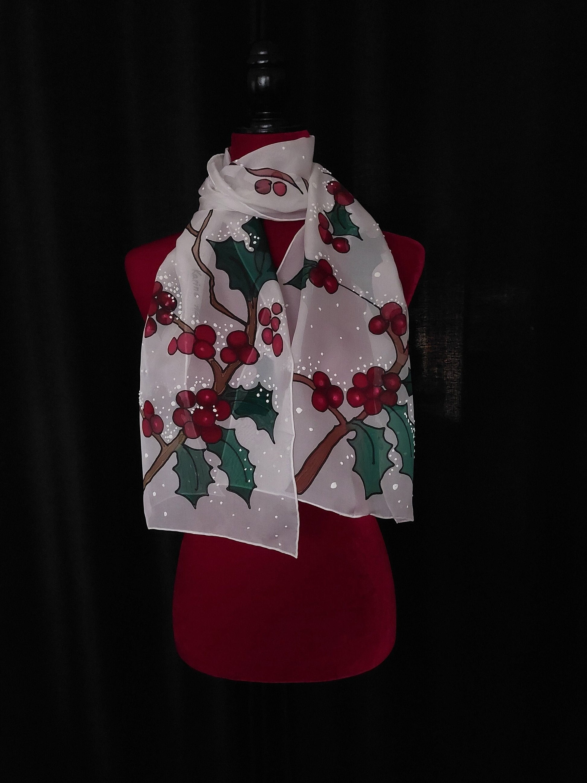Embrace the magic of winter with this exquisite hand-painted silk scarf.
