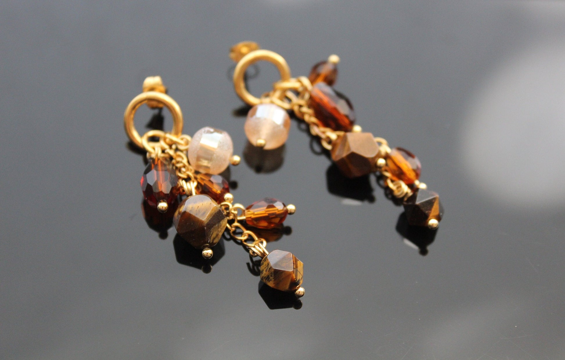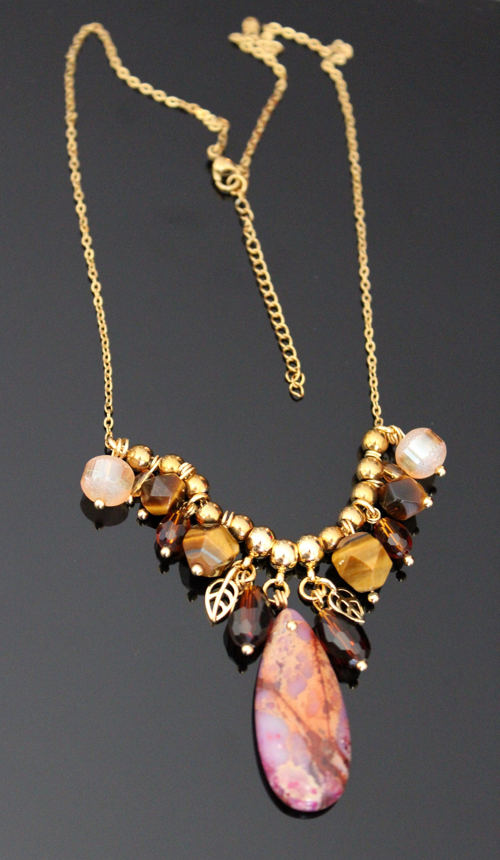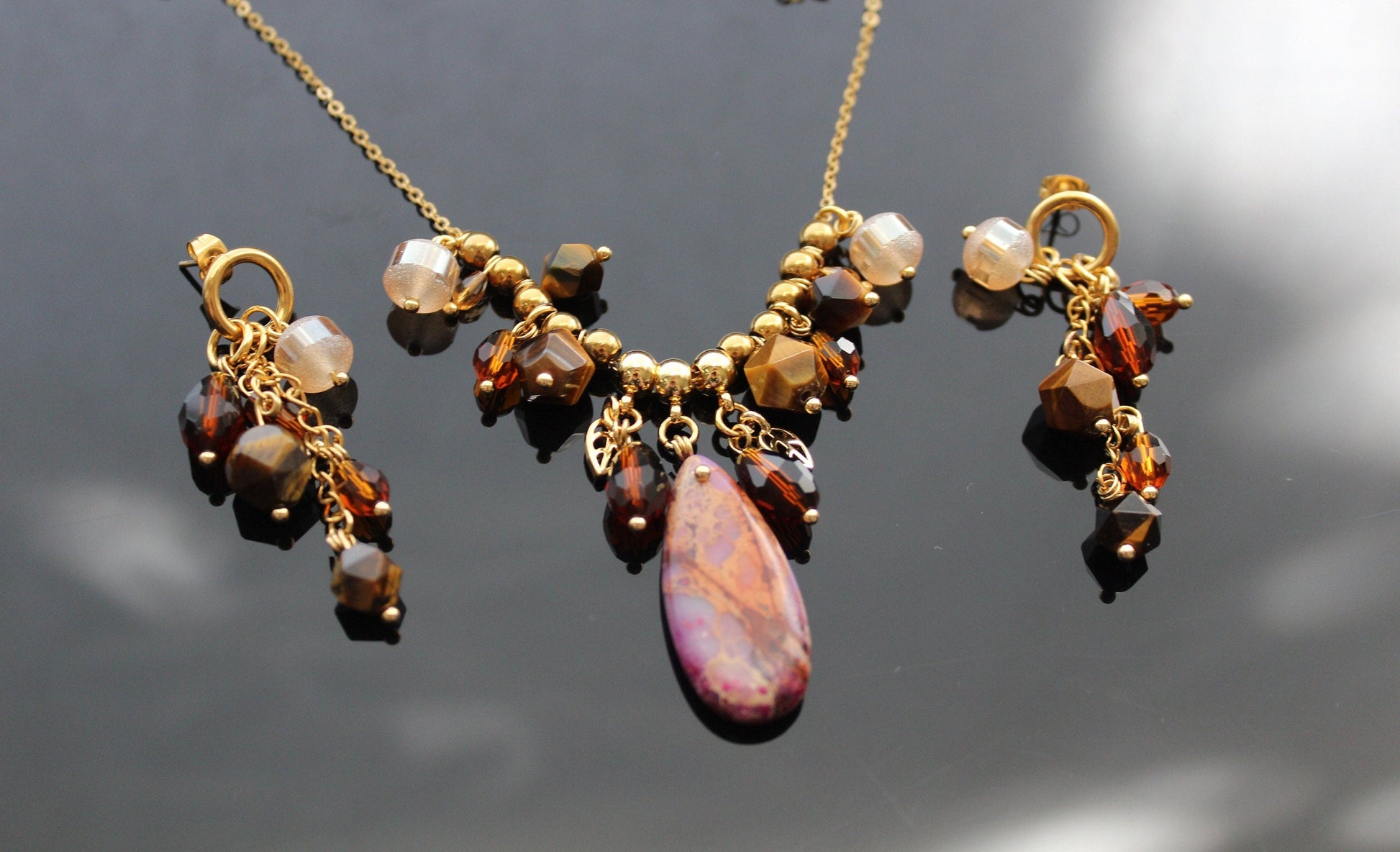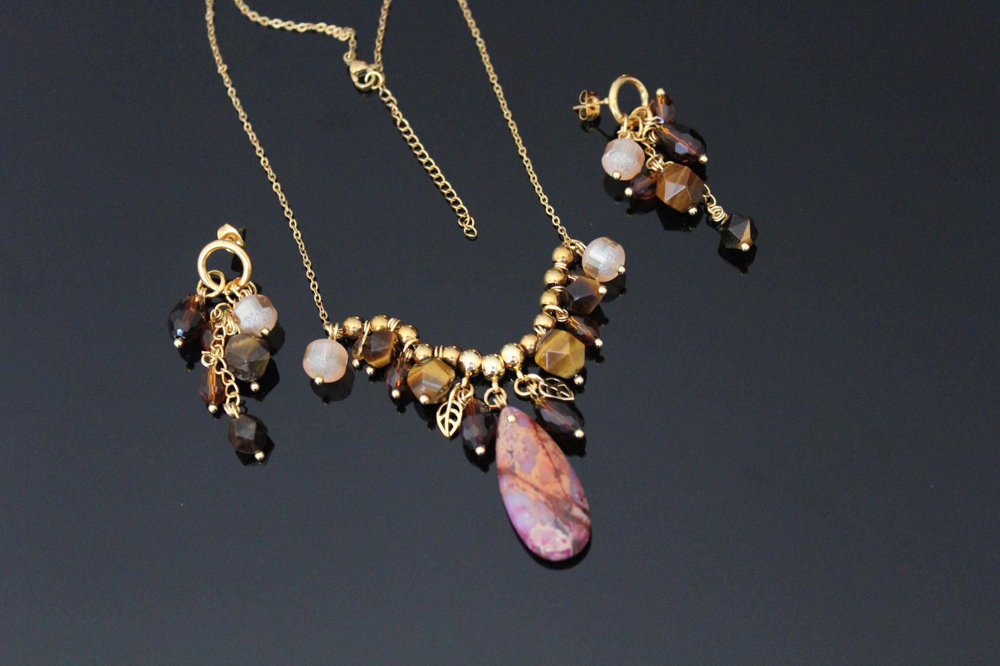 Handmade beaded jewelry with natural jasper, tiger eye, glass and 18K gold plated stainless steel