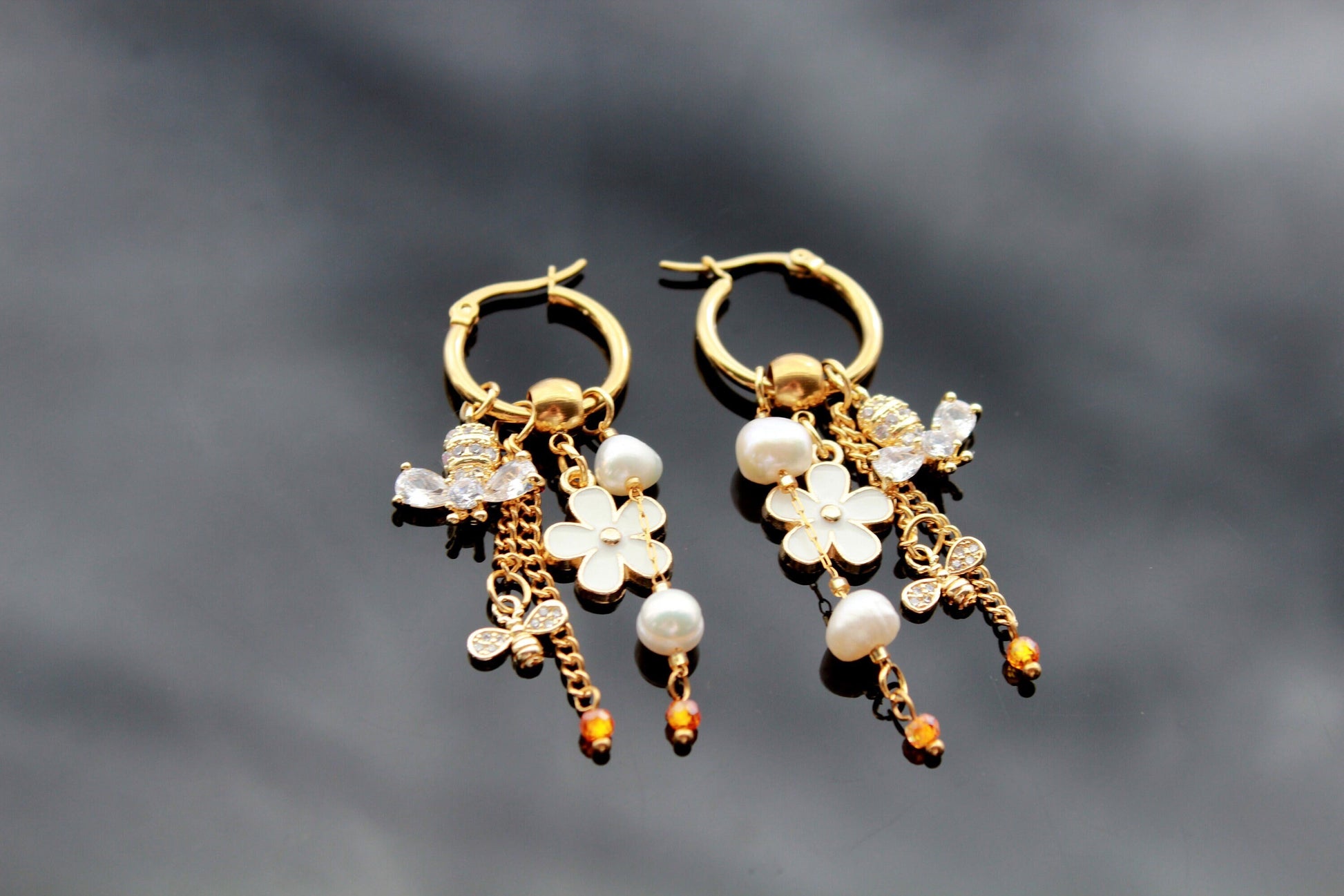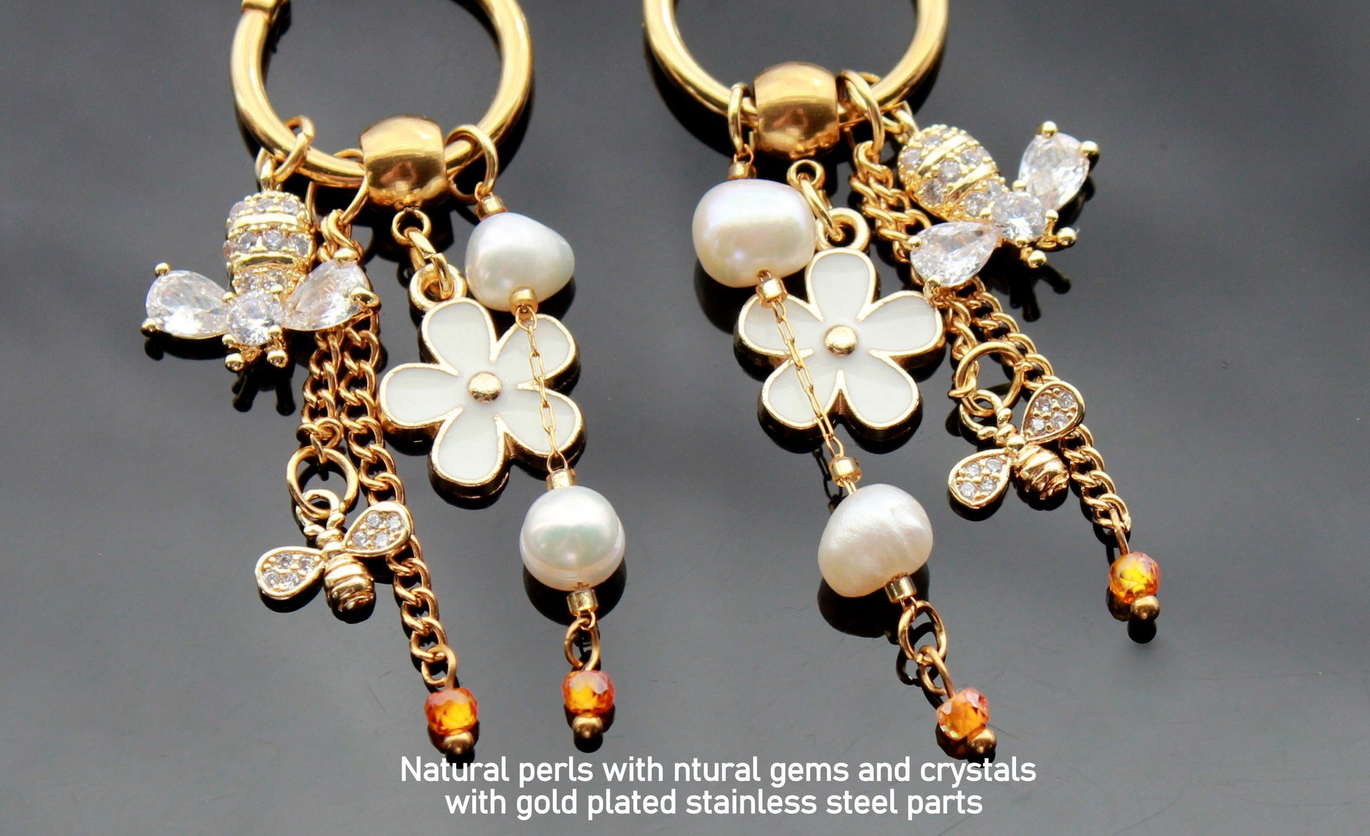 Handmade bee earrings 18K gold plated stainless steel jewelry with natural pearls