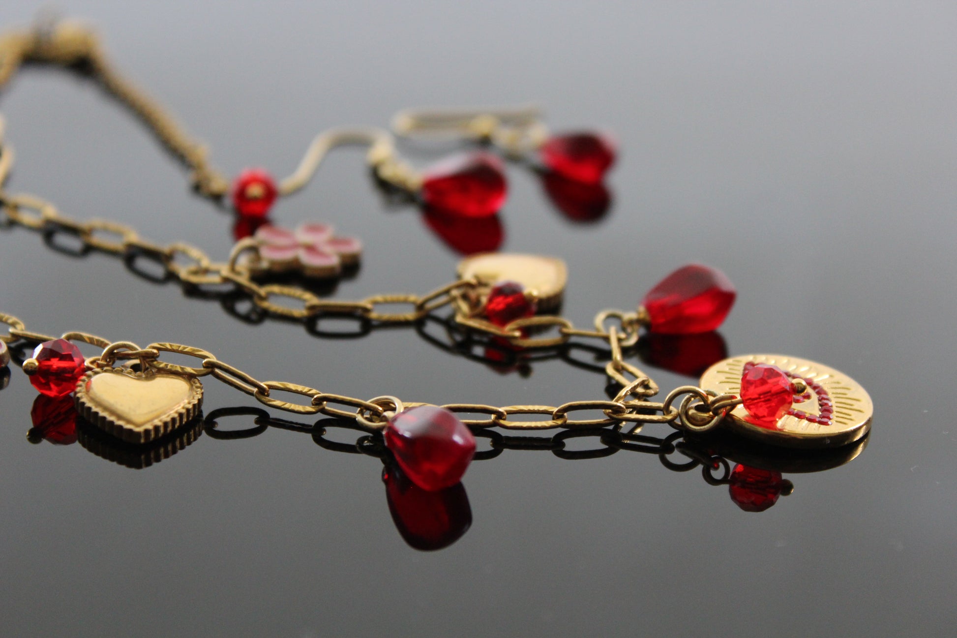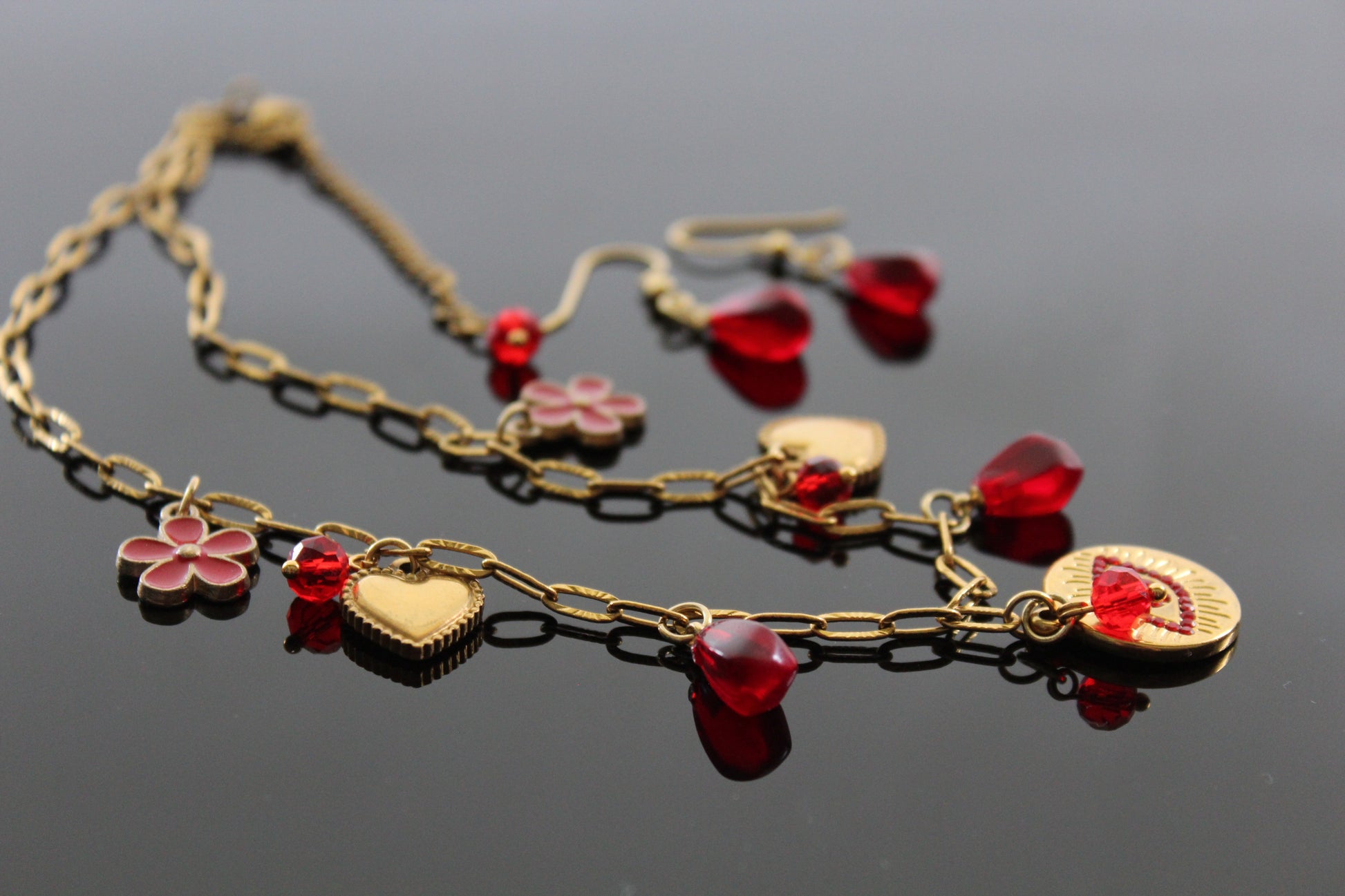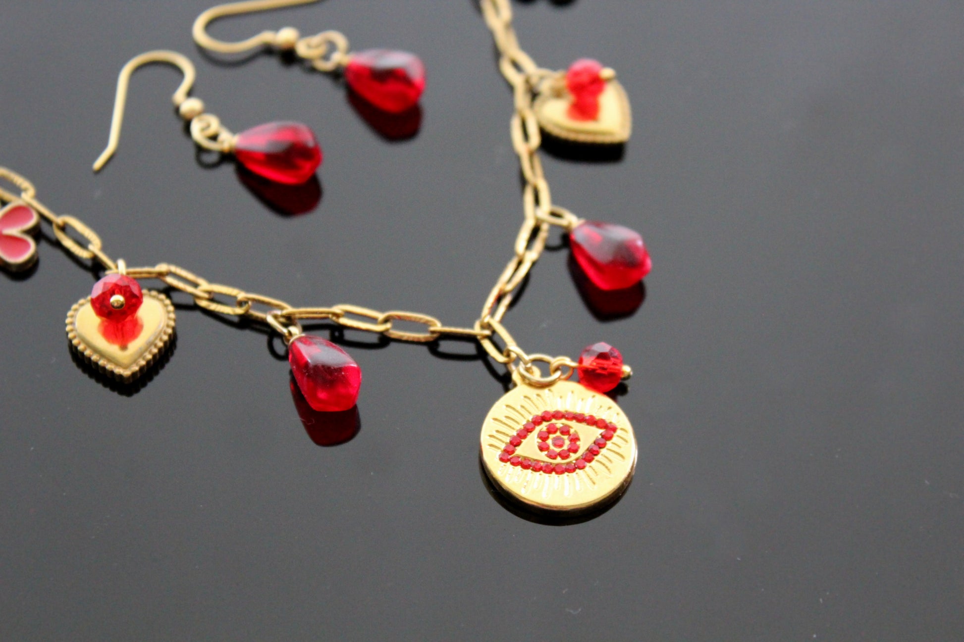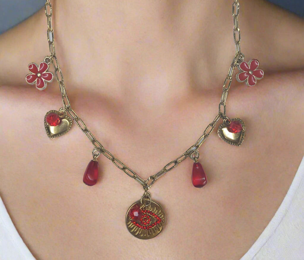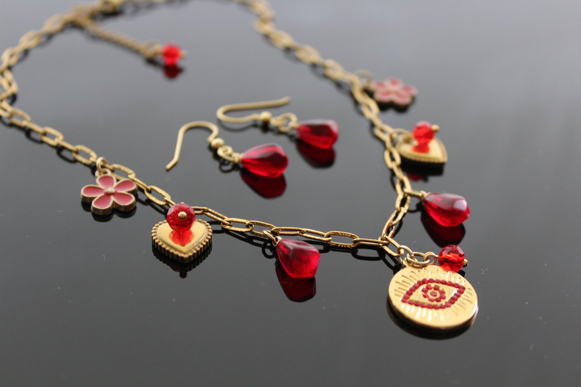 Handmade Evil Eyes Charm Pomegranate floral necklace with earrings