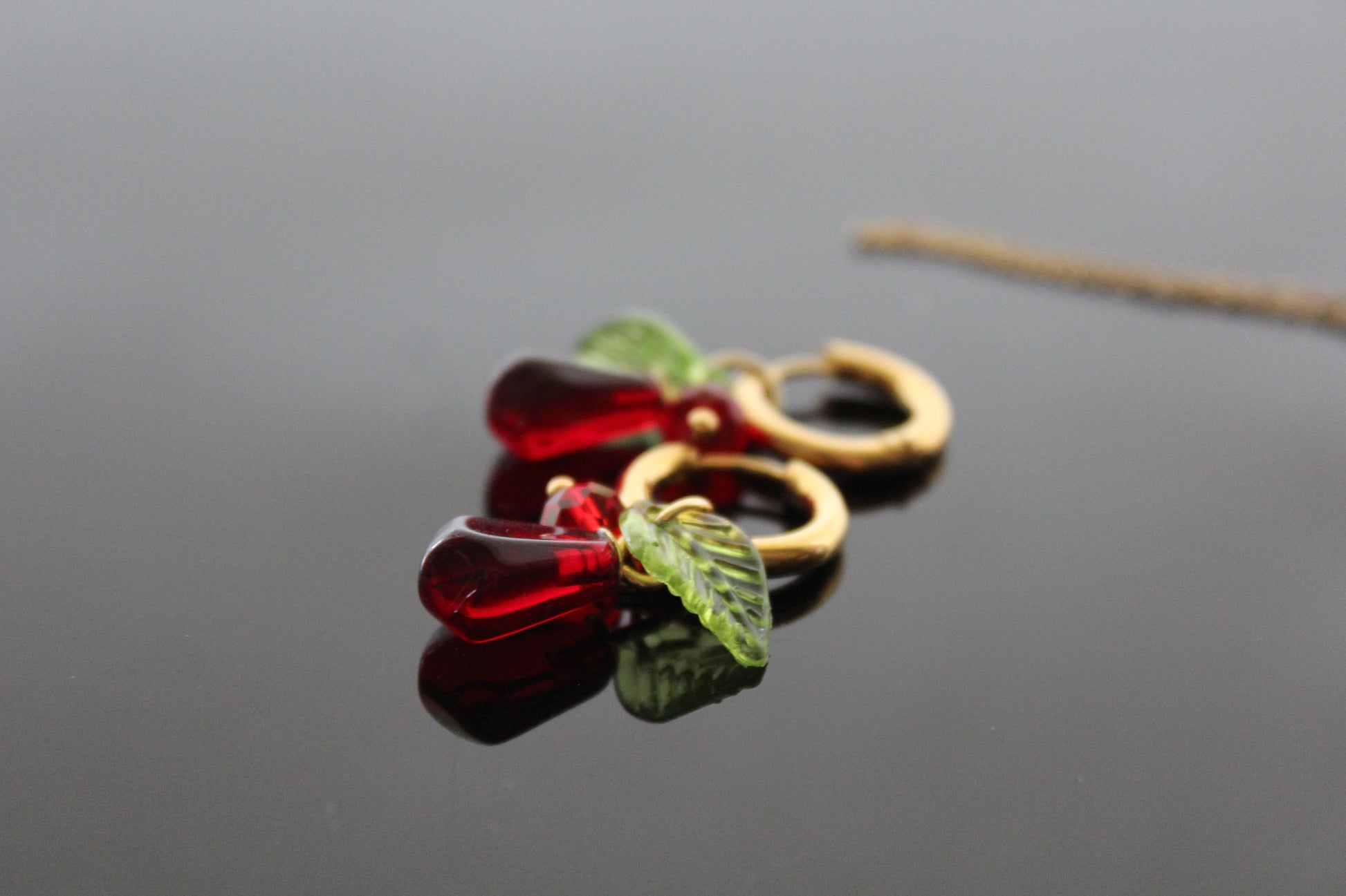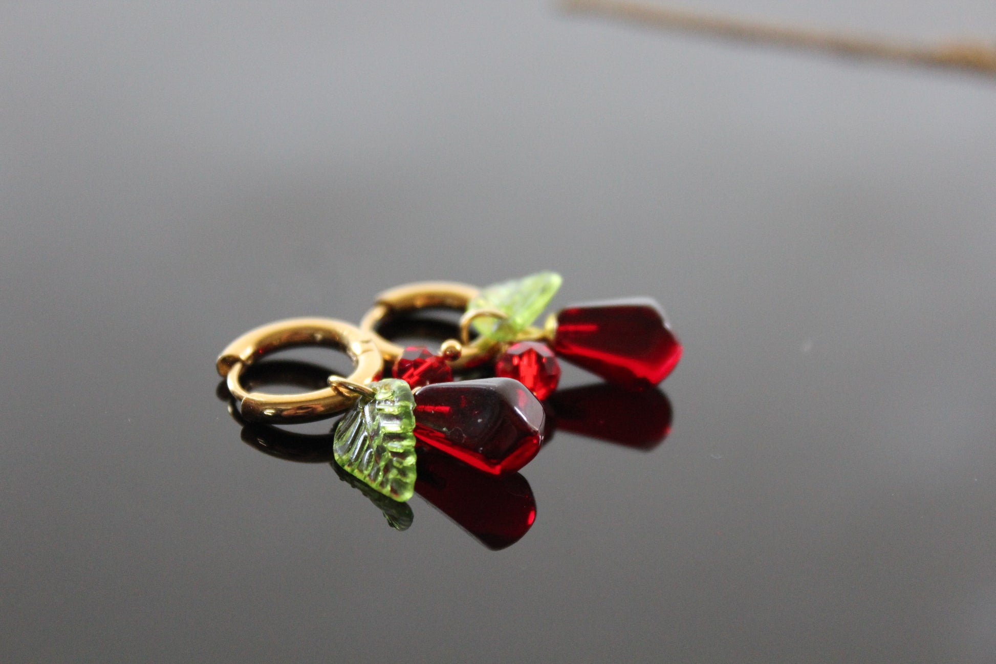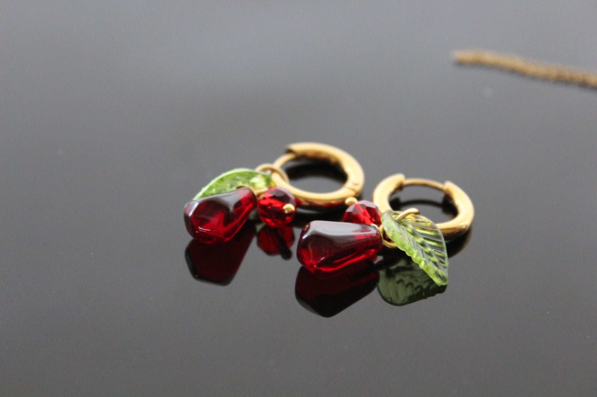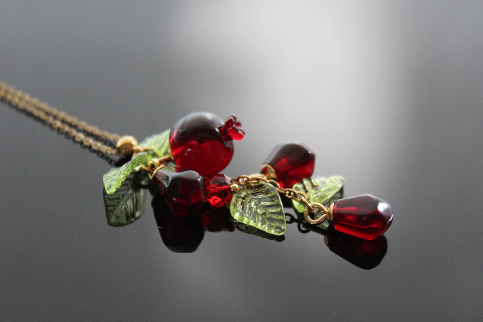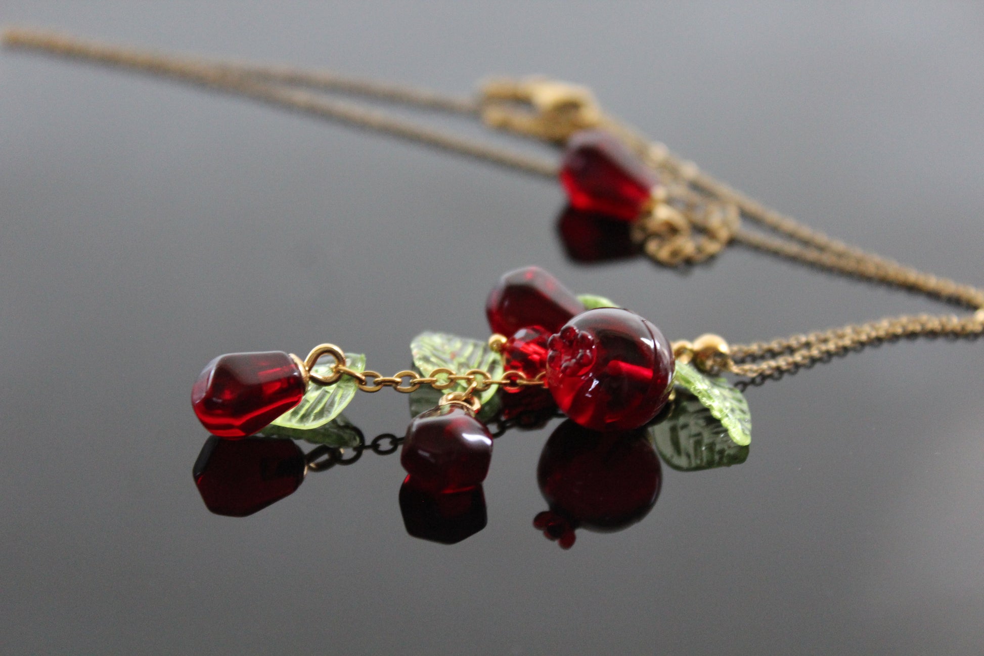 Handmade Fruit Jewelry Set, 18K Gold Plated Necklace and Earrings, Pomegranates