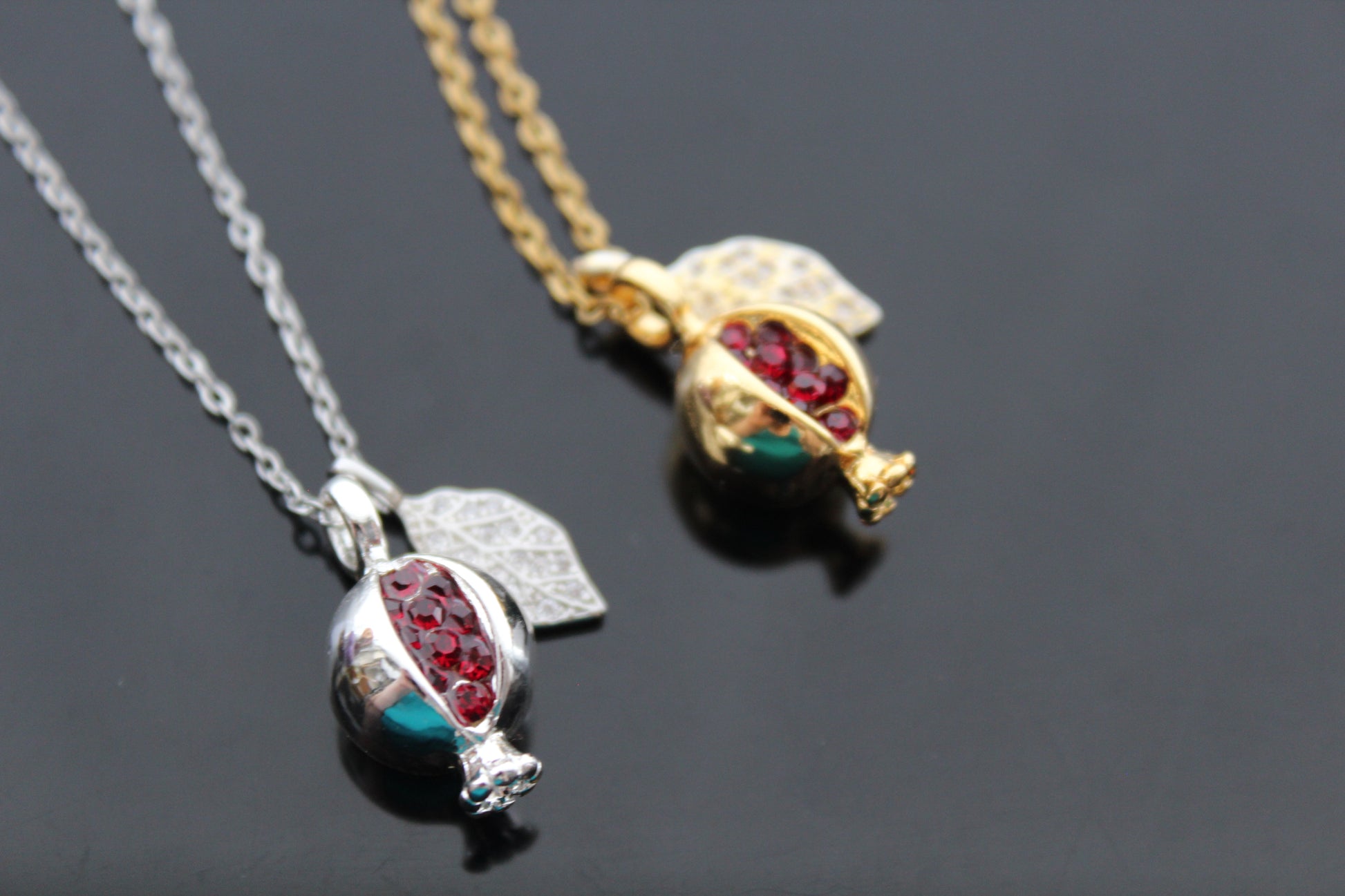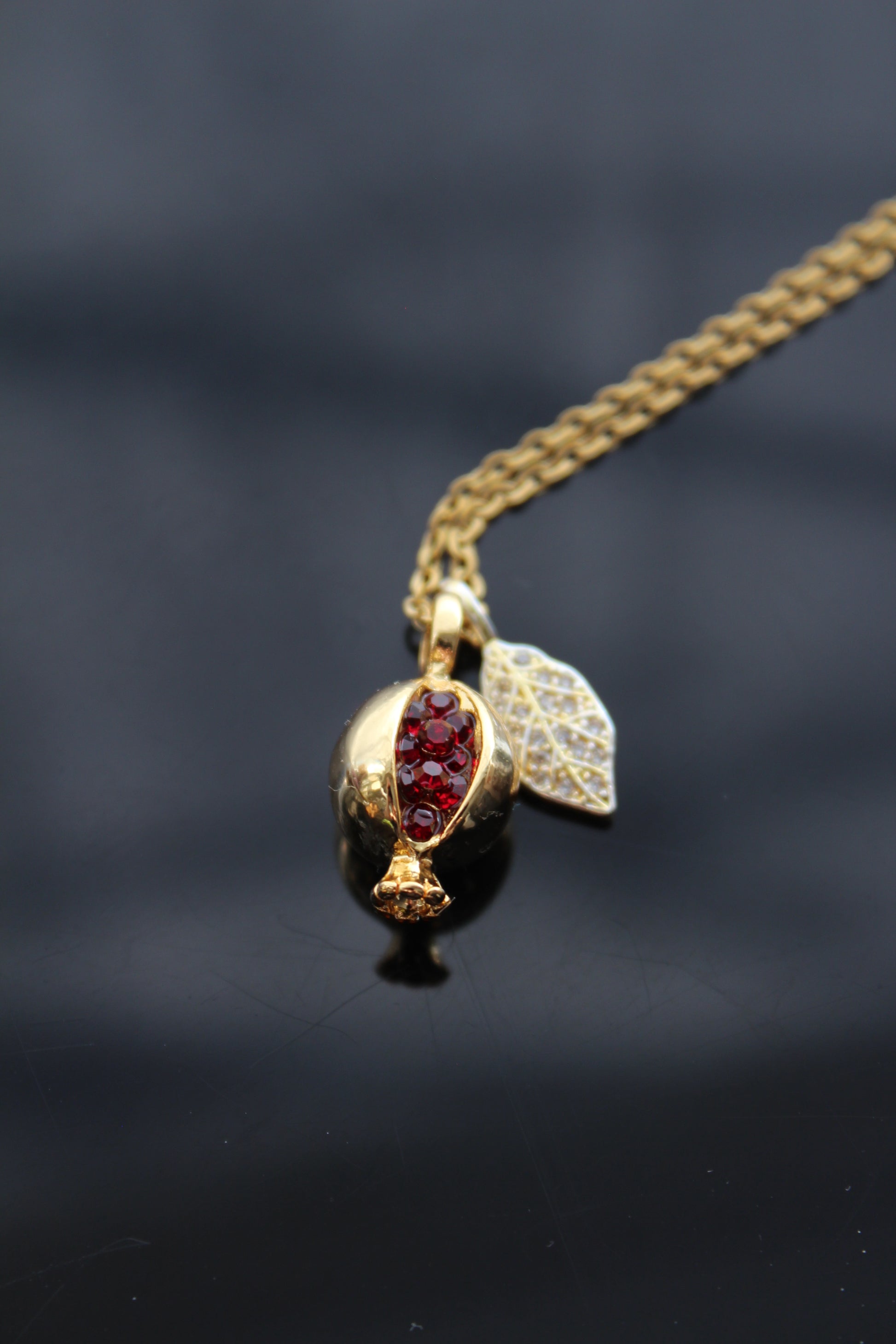 This exquisite handmade pomegranate pendant necklace is a stunning piece of jewelry that speaks to the richness of life. The intricate glass beads capture the vibrancy of the fruit, while the delicate silver and gold chains add a touch of elegance. The pomegranate is a symbol of abundance, fertility, and good fortune in many cultures, making this necklace a beautiful way to carry those symbols with you wherever you go.