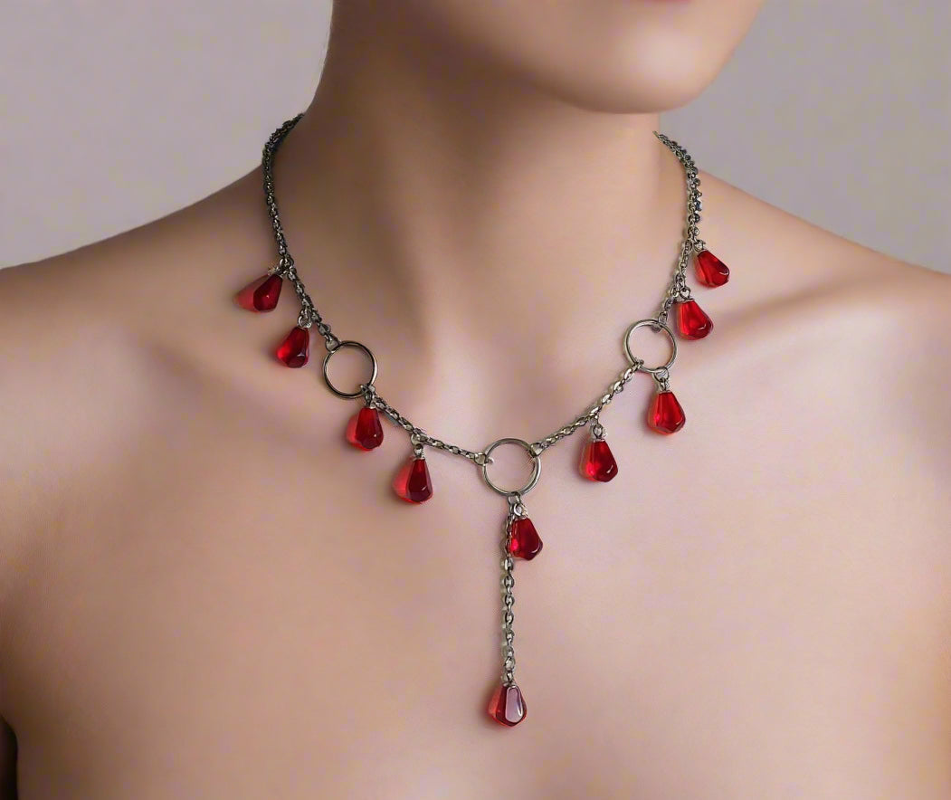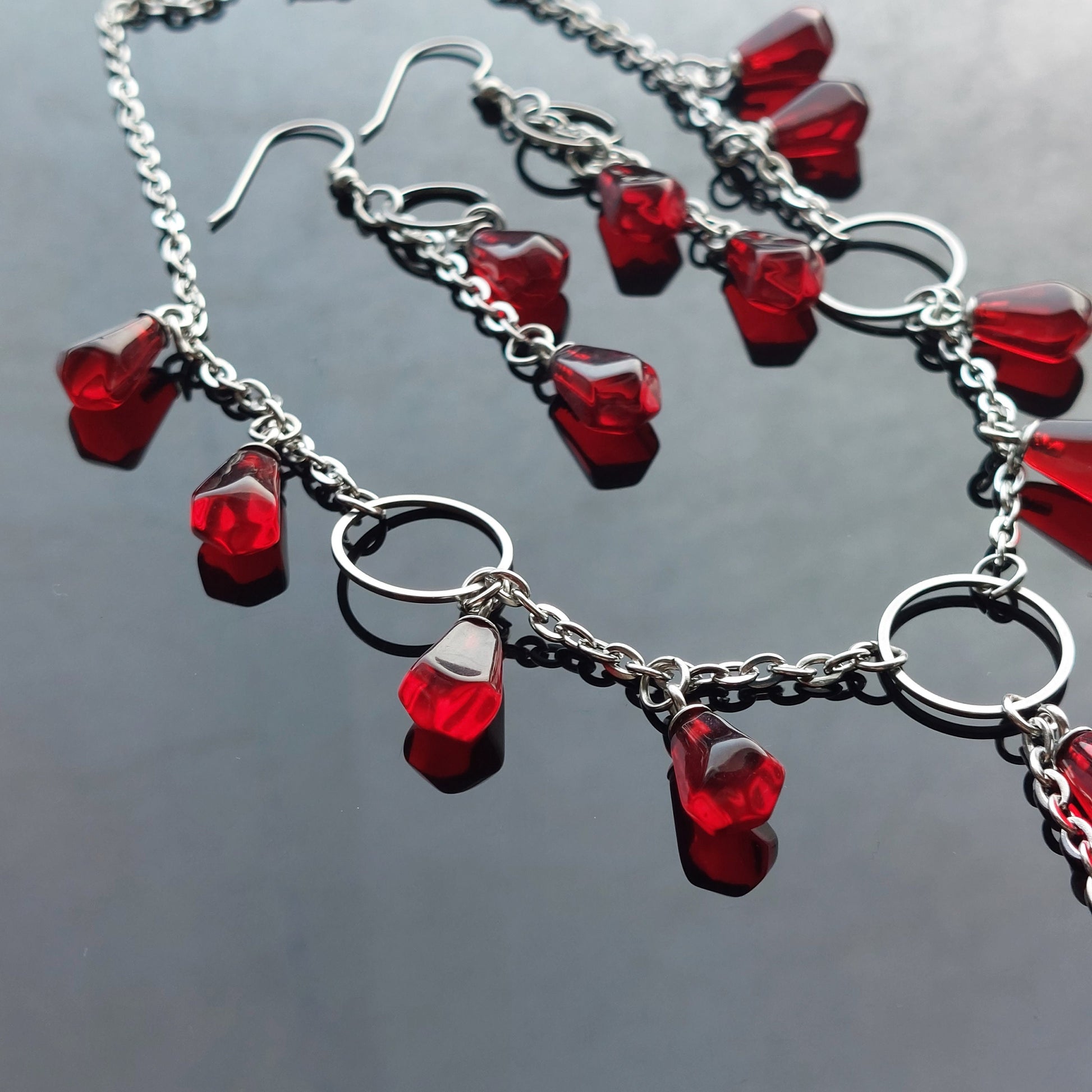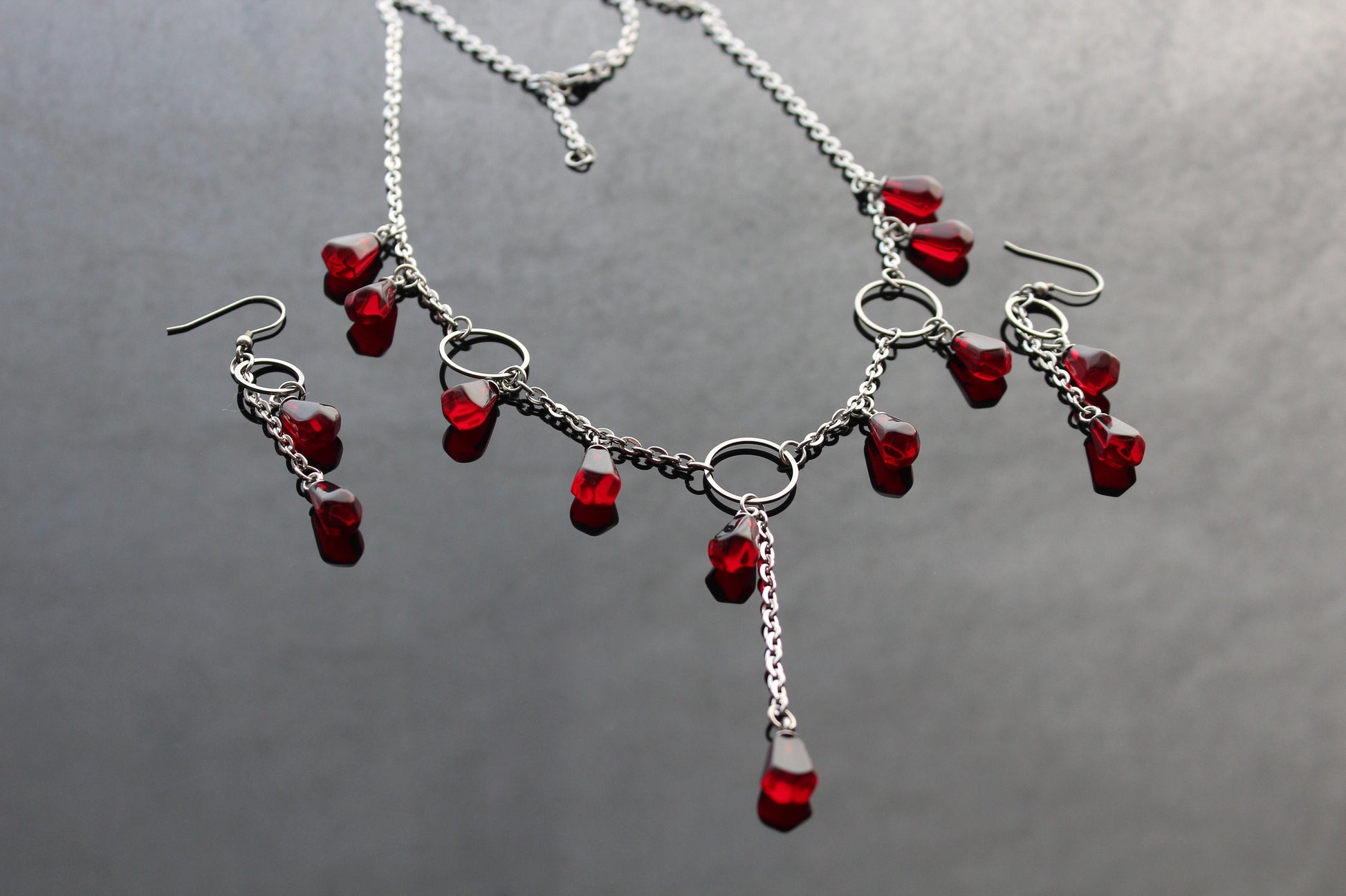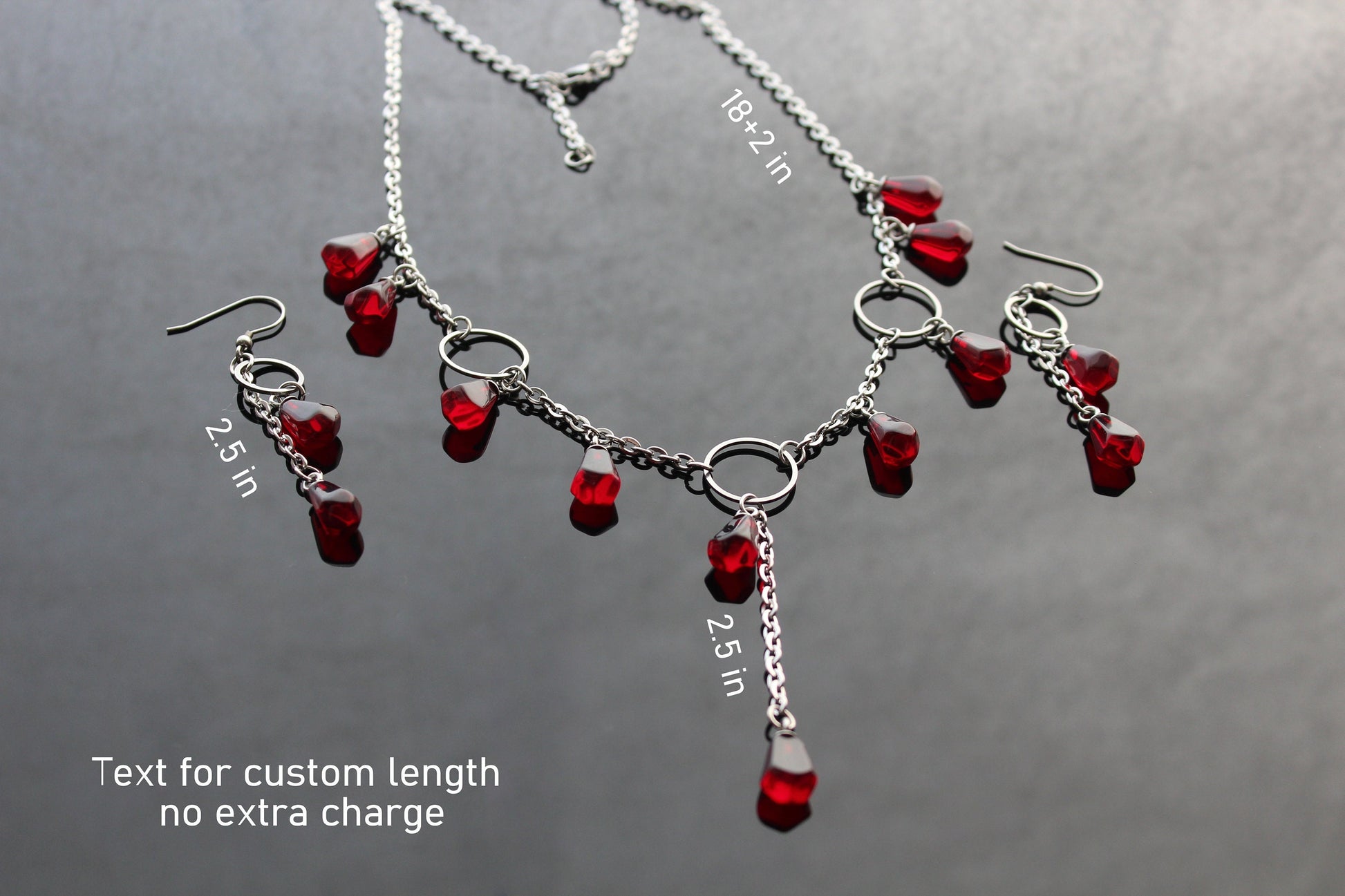 Handmade pomegranate jewelry set silver plated stainless steel with glass beads