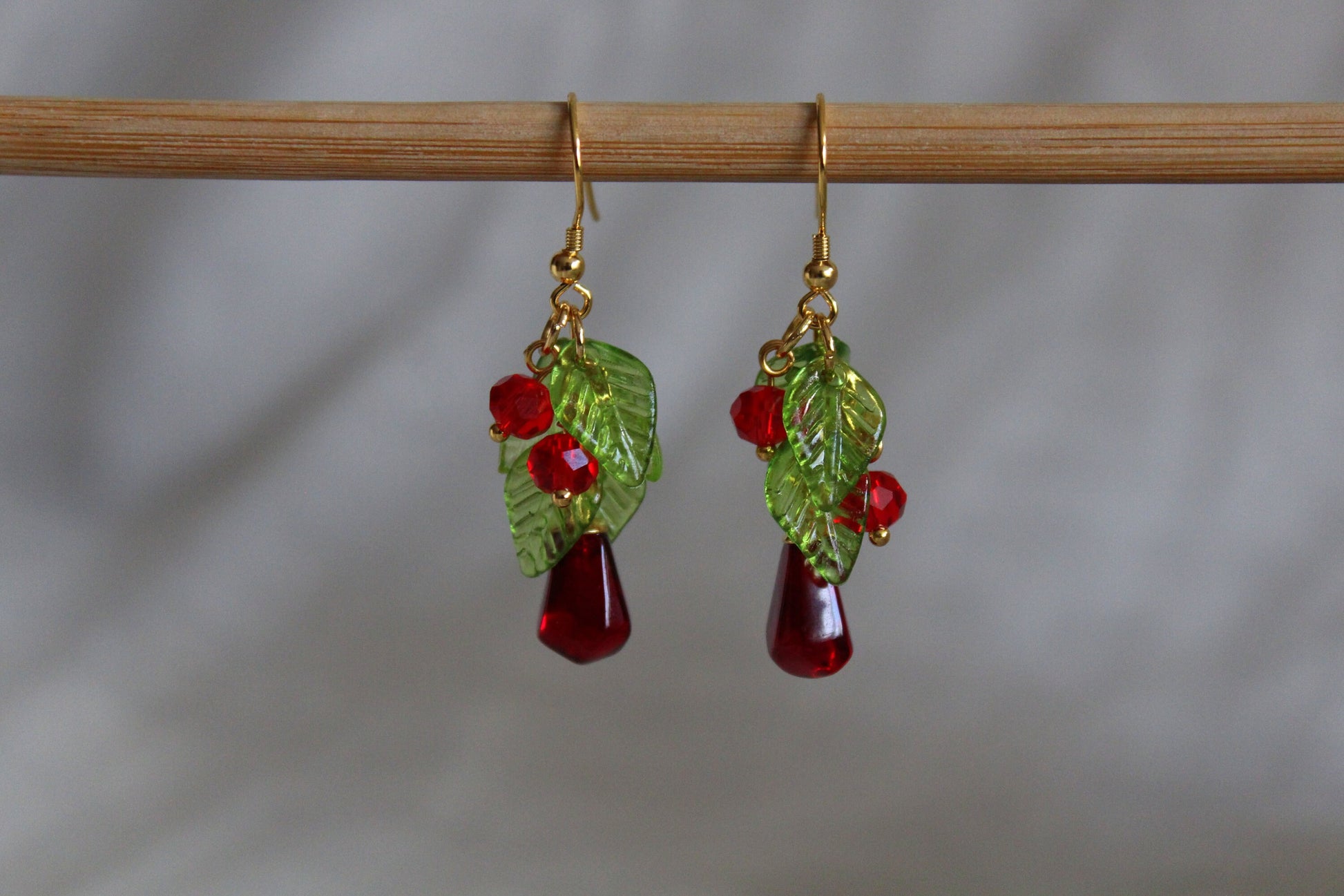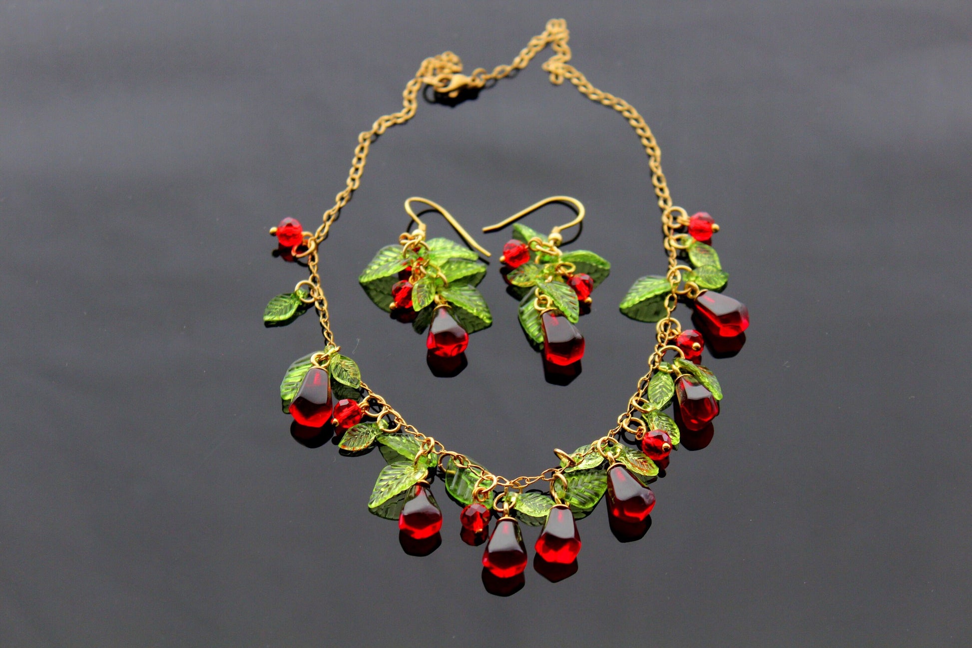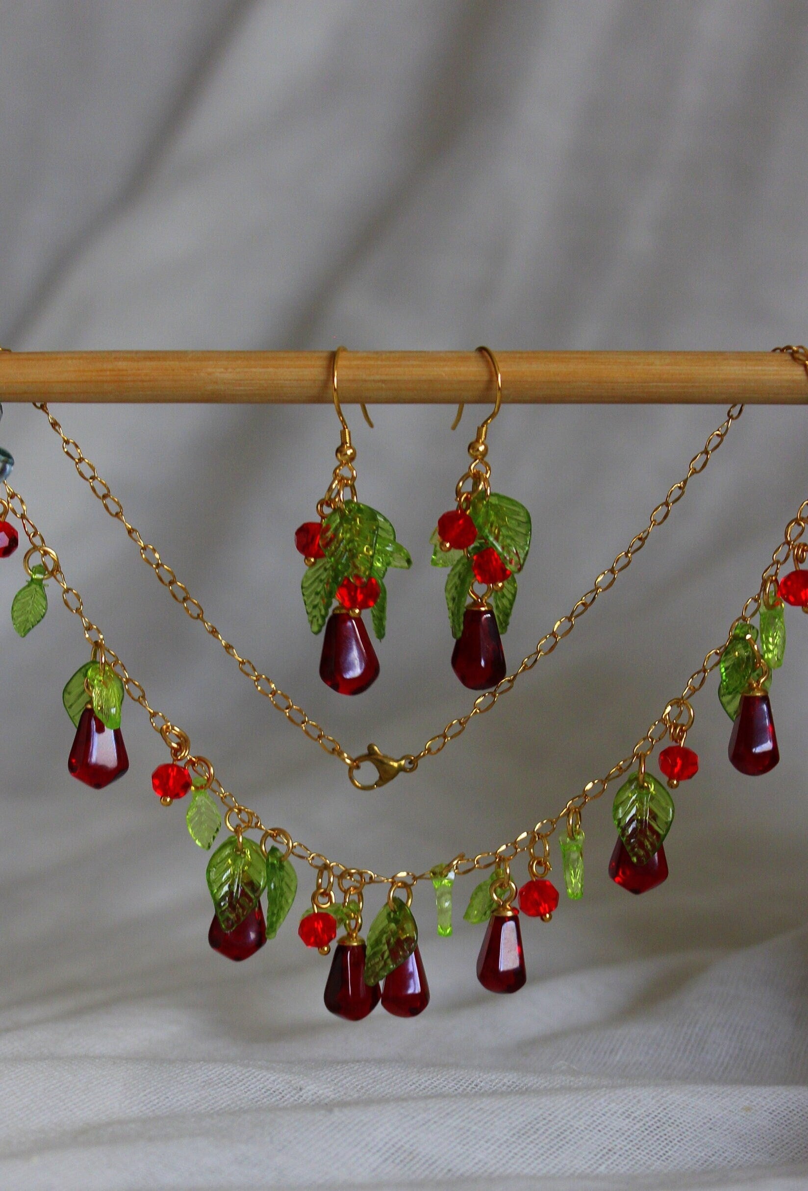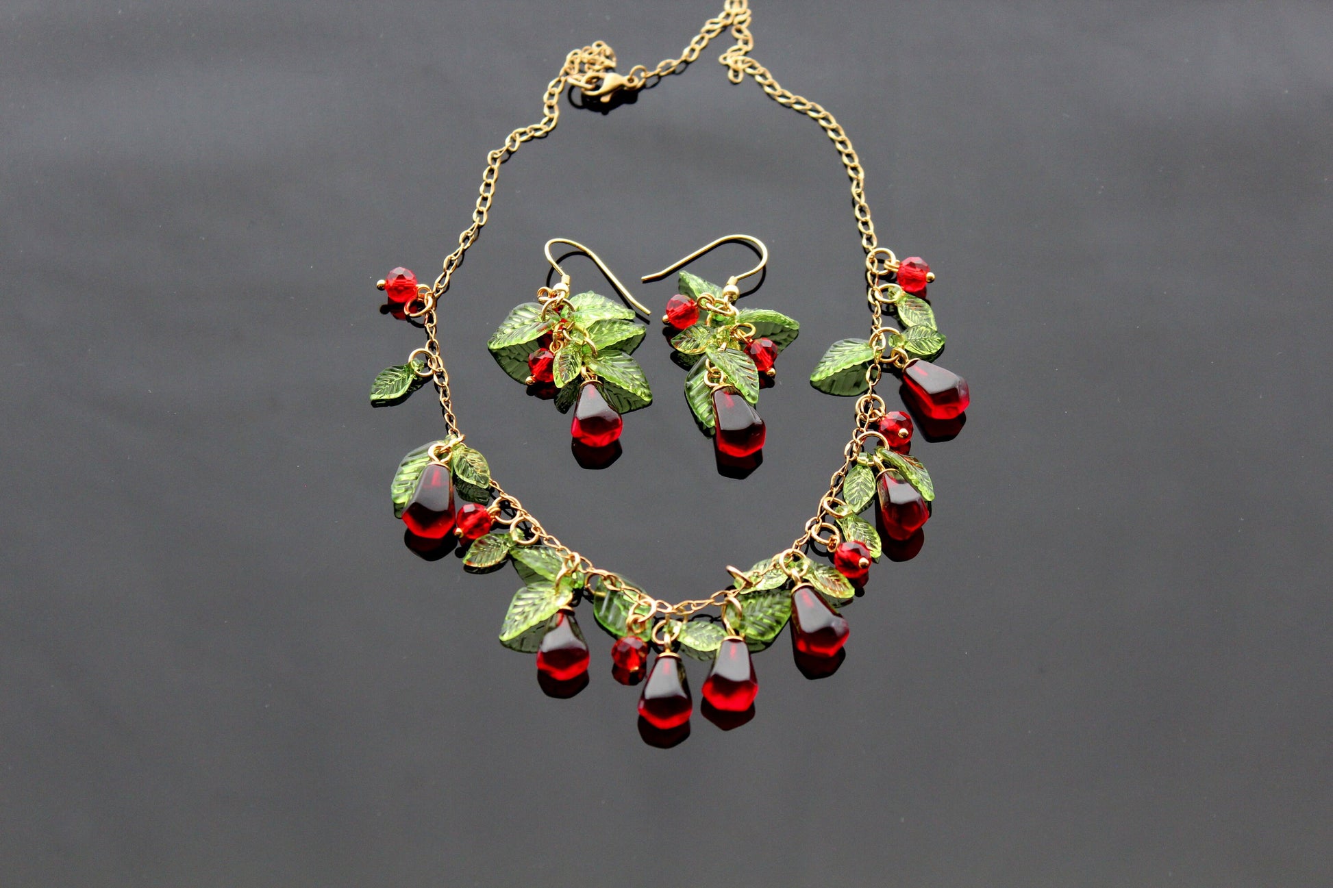 Handmade pomegranate seeds 18K gold plated stainless steel jewelry set with high quality resin charms