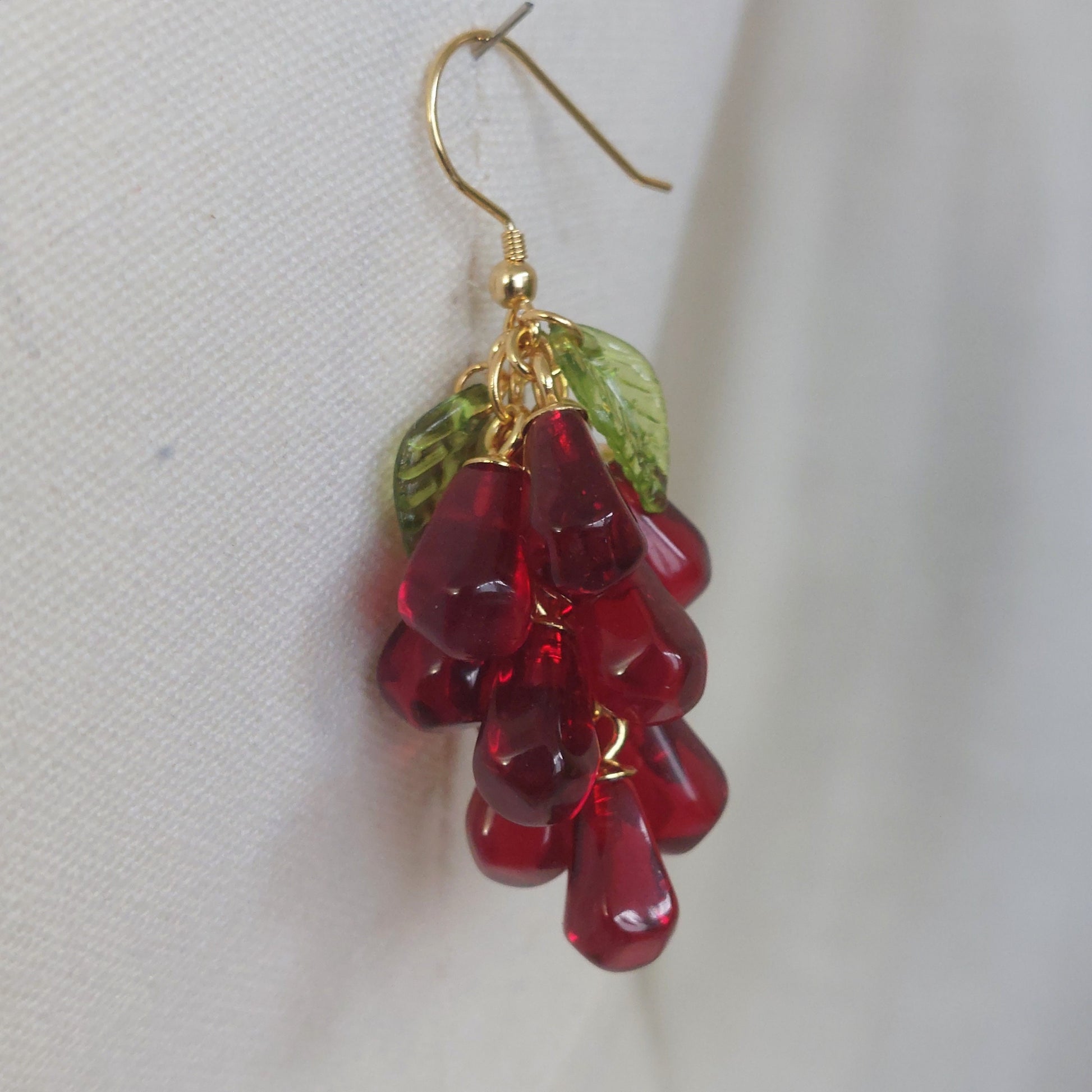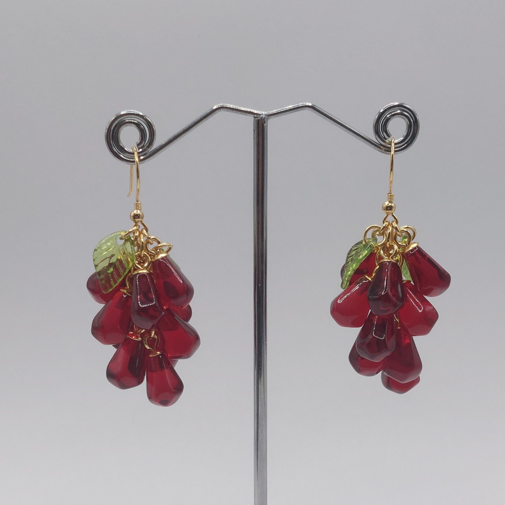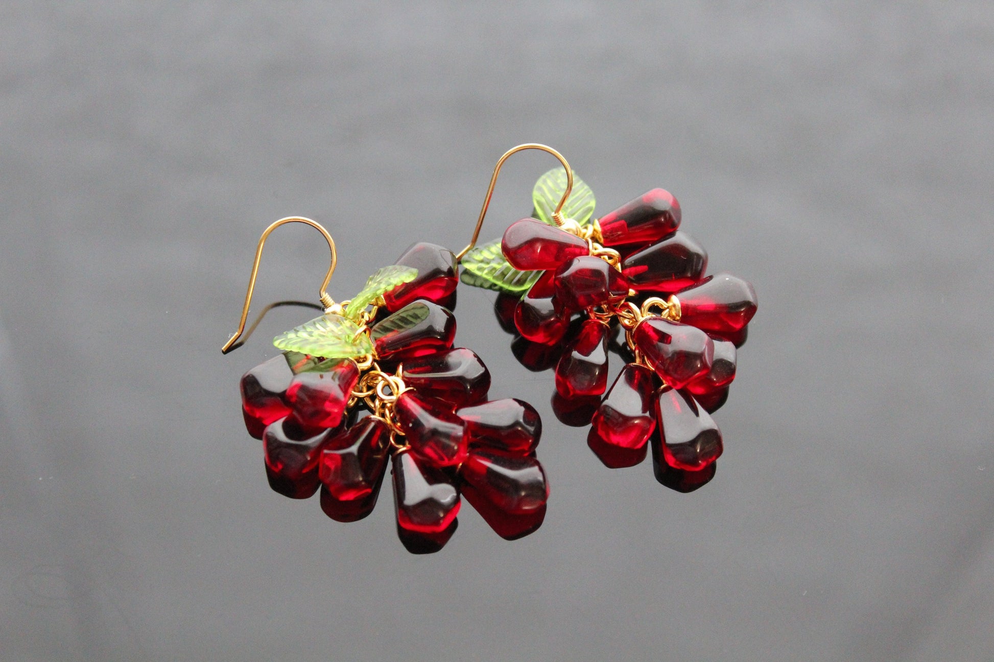 Expertly crafted from durable 18K gold plated stainless steel, these handmade earrings feature pomegranate seeds and high-quality resin charms. Measuring 2 inches in length and complete with hooks, they can be customized to your desired length at no extra cost. Contact us for details.