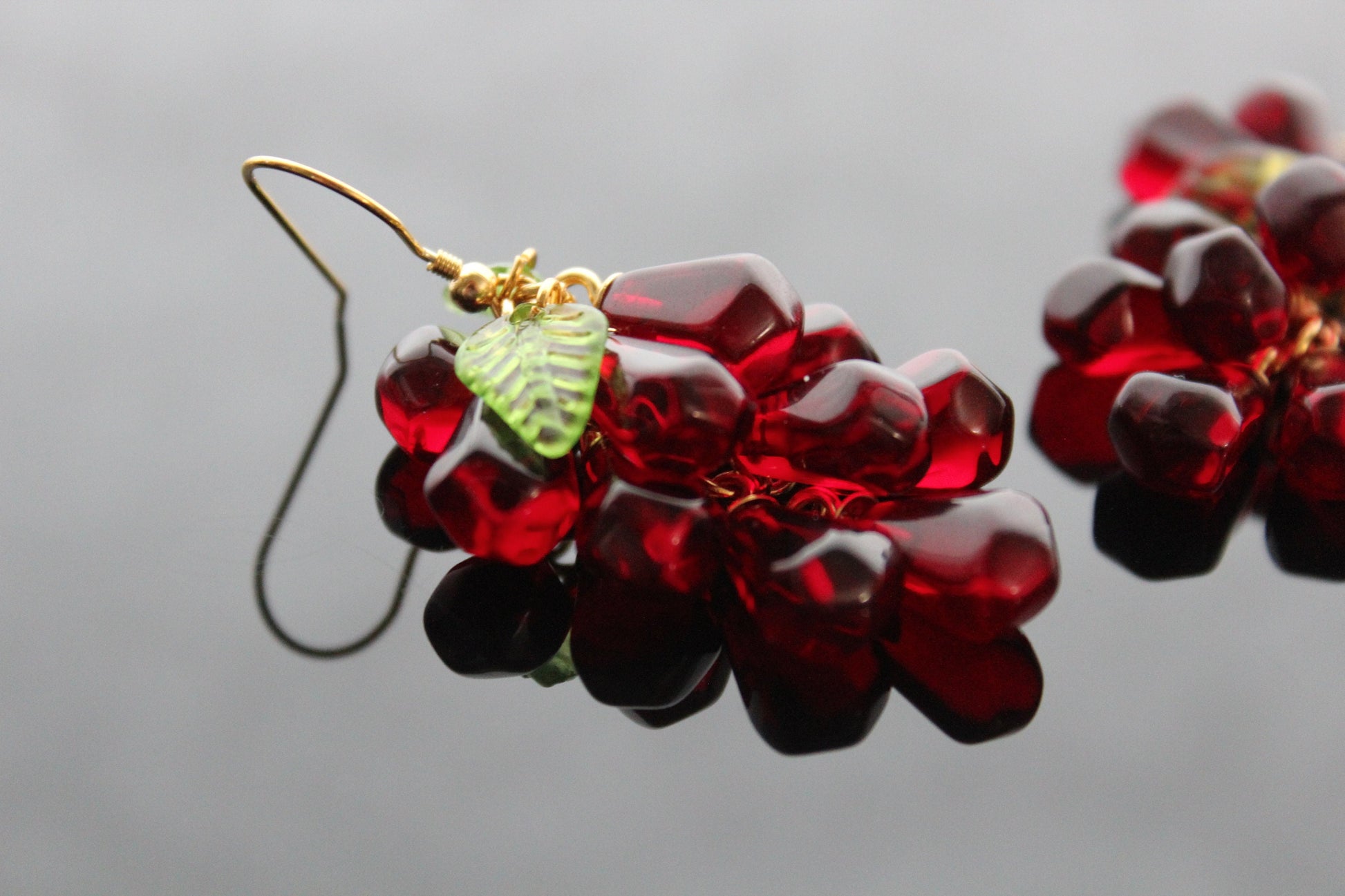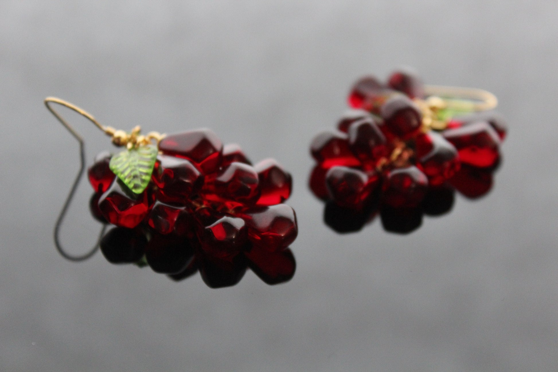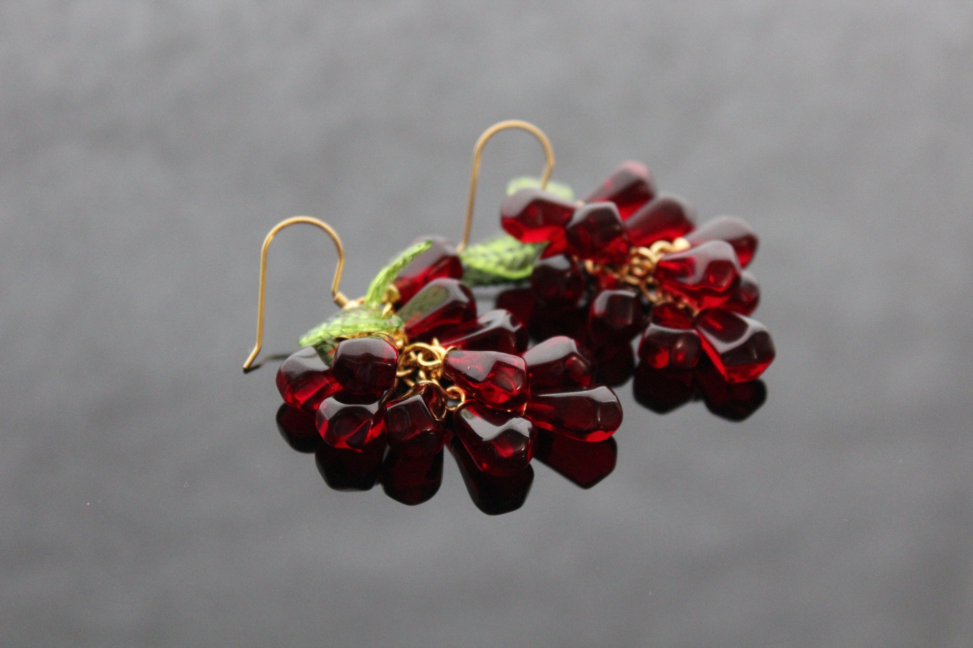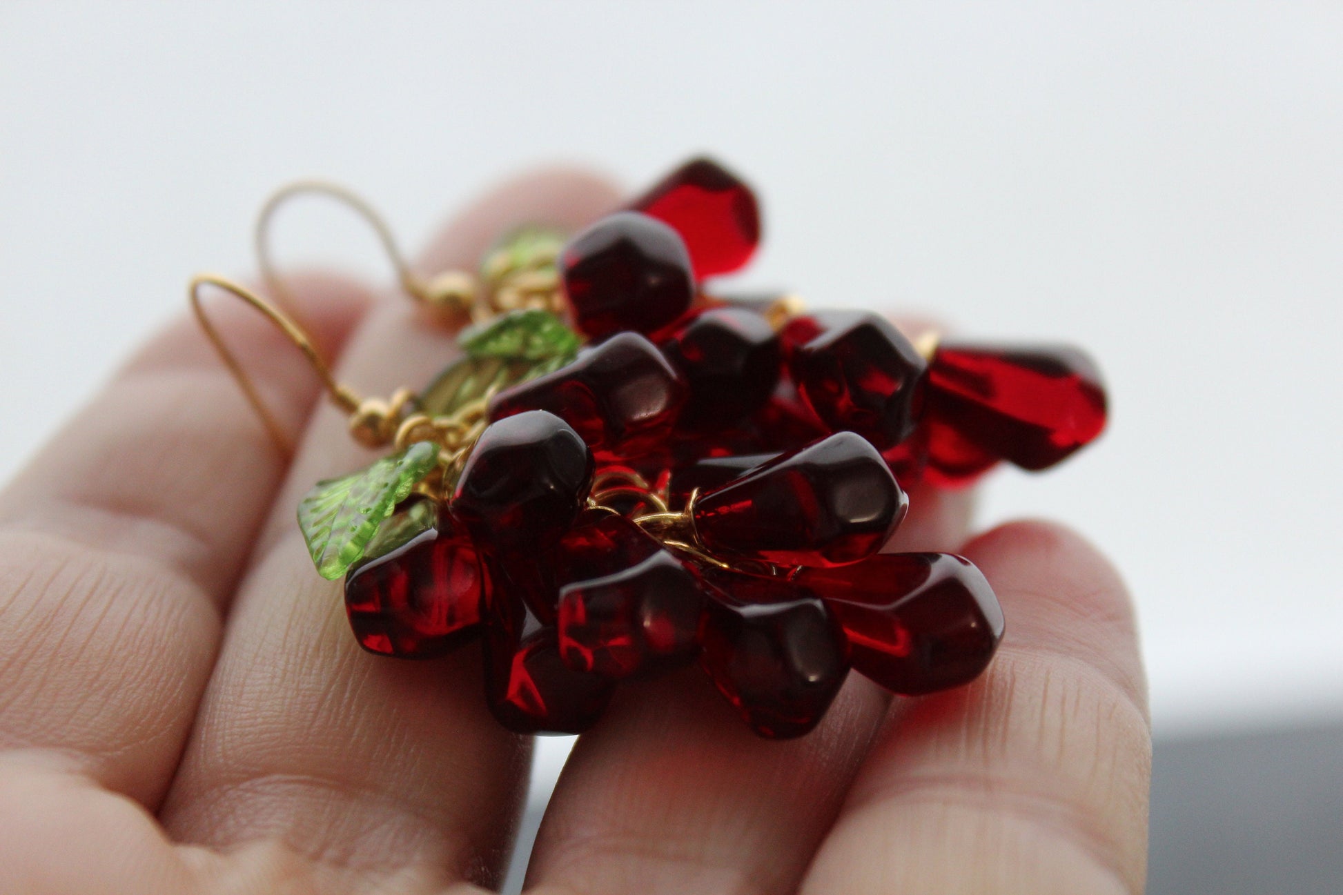 Expertly crafted from durable 18K gold plated stainless steel, these handmade earrings feature pomegranate seeds and high-quality resin charms. Measuring 2 inches in length and complete with hooks, they can be customized to your desired length at no extra cost. Contact us for details.