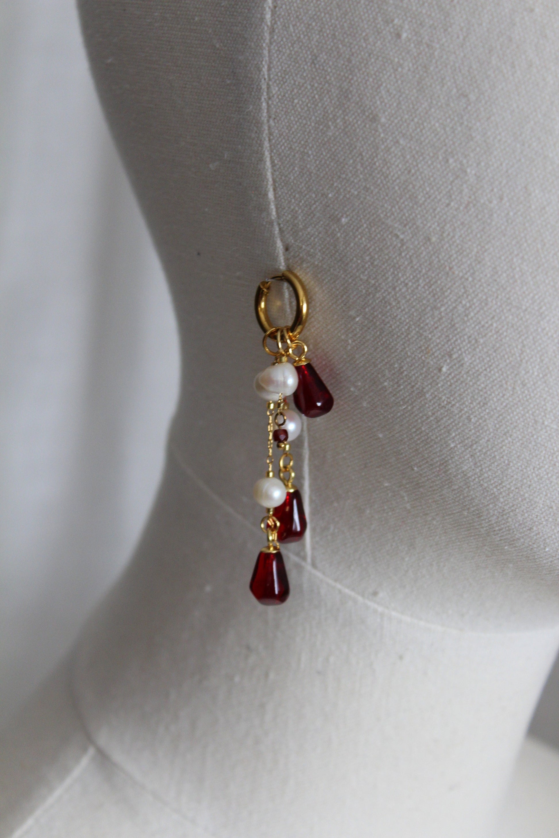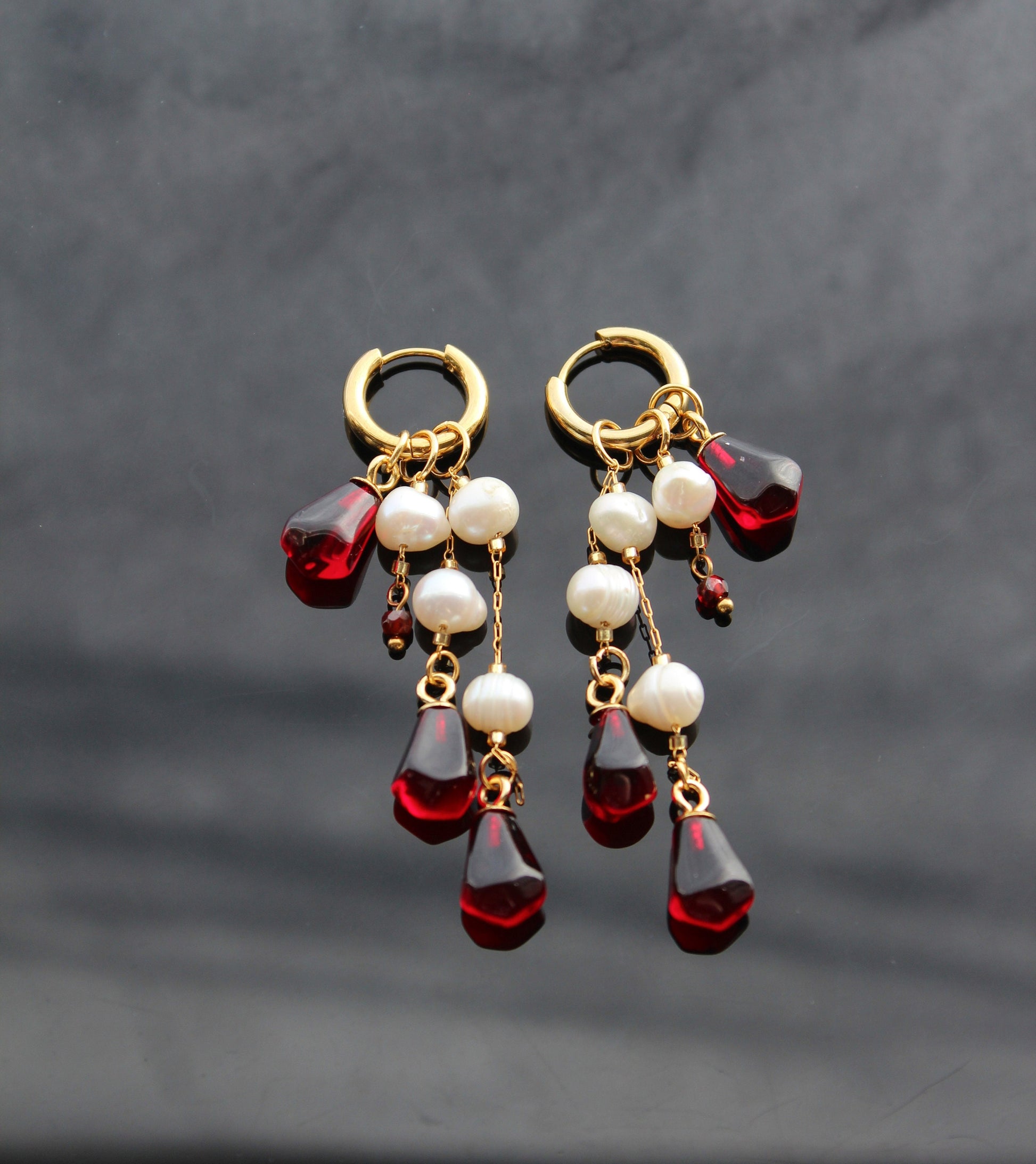 Handmade pomegranate seeds 18K gold plated stainless steel jewelry set with natural pearls