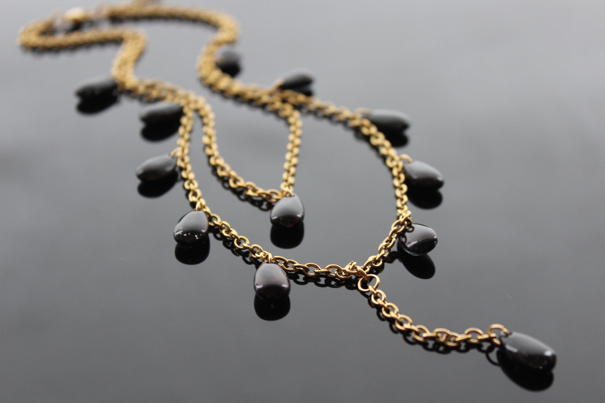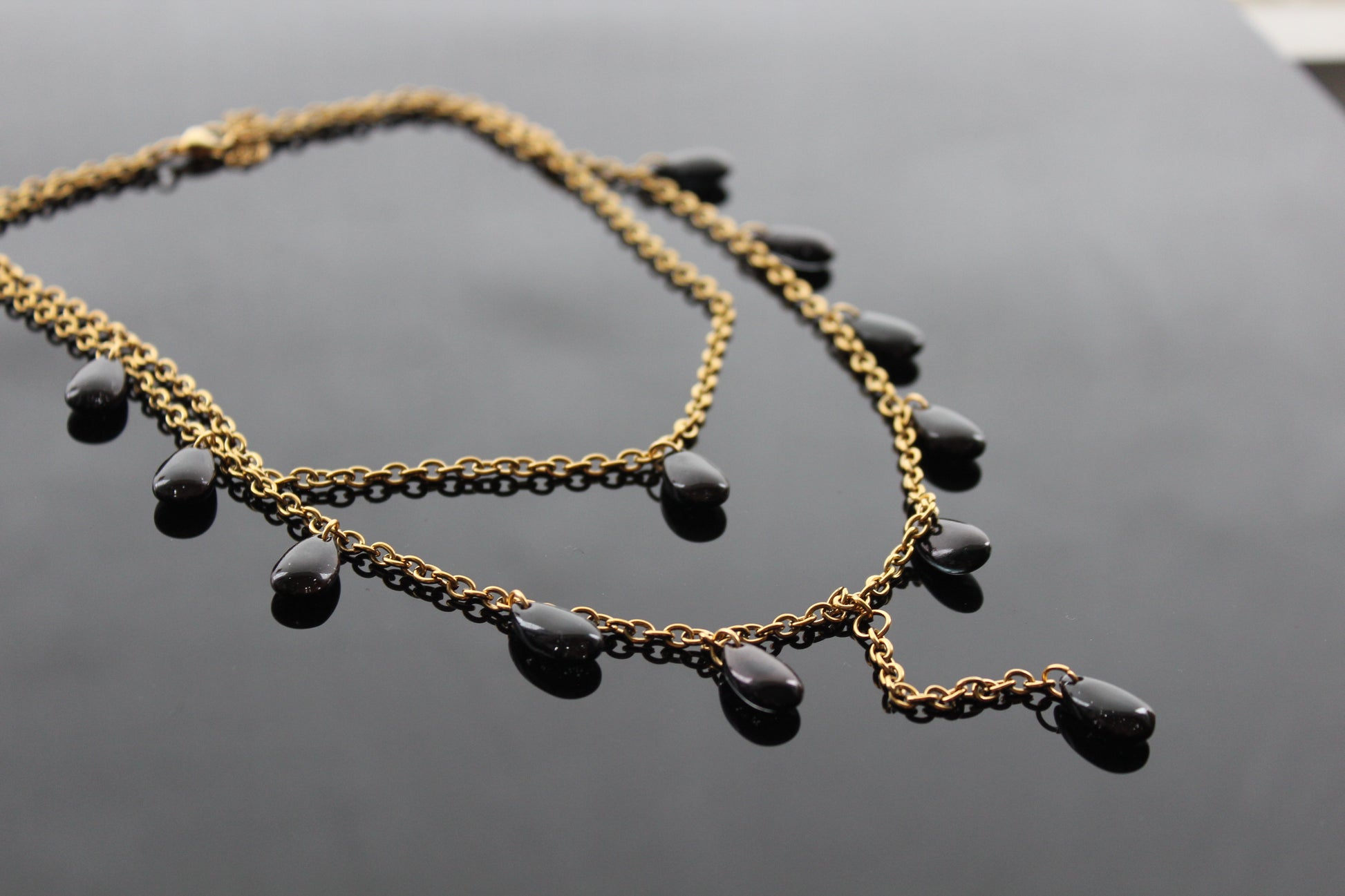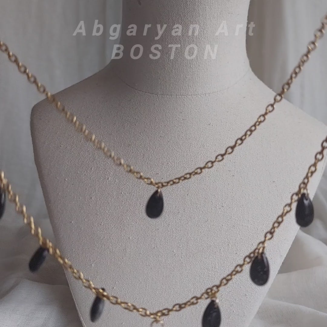 Handmade red drop glass beads necklace