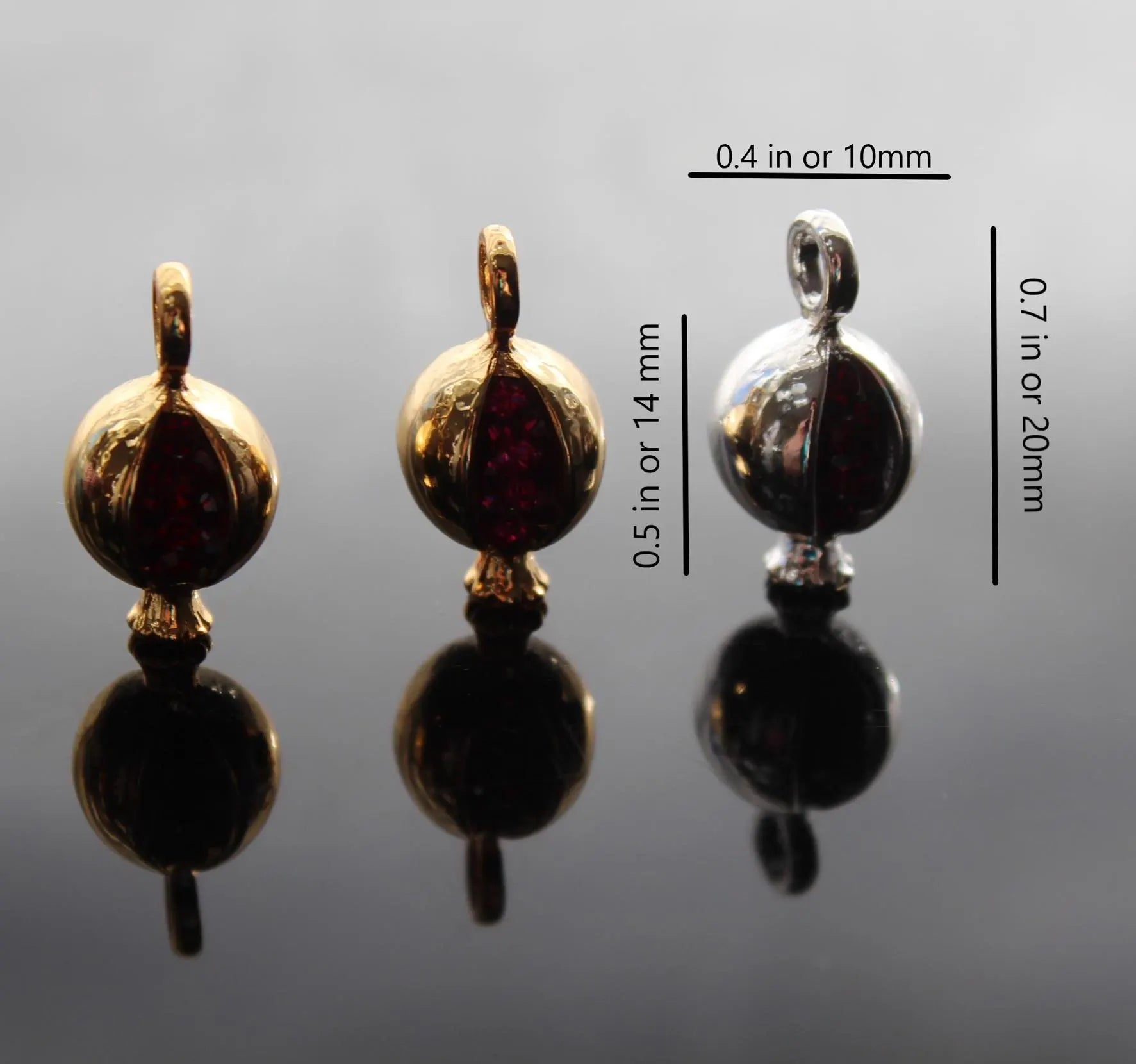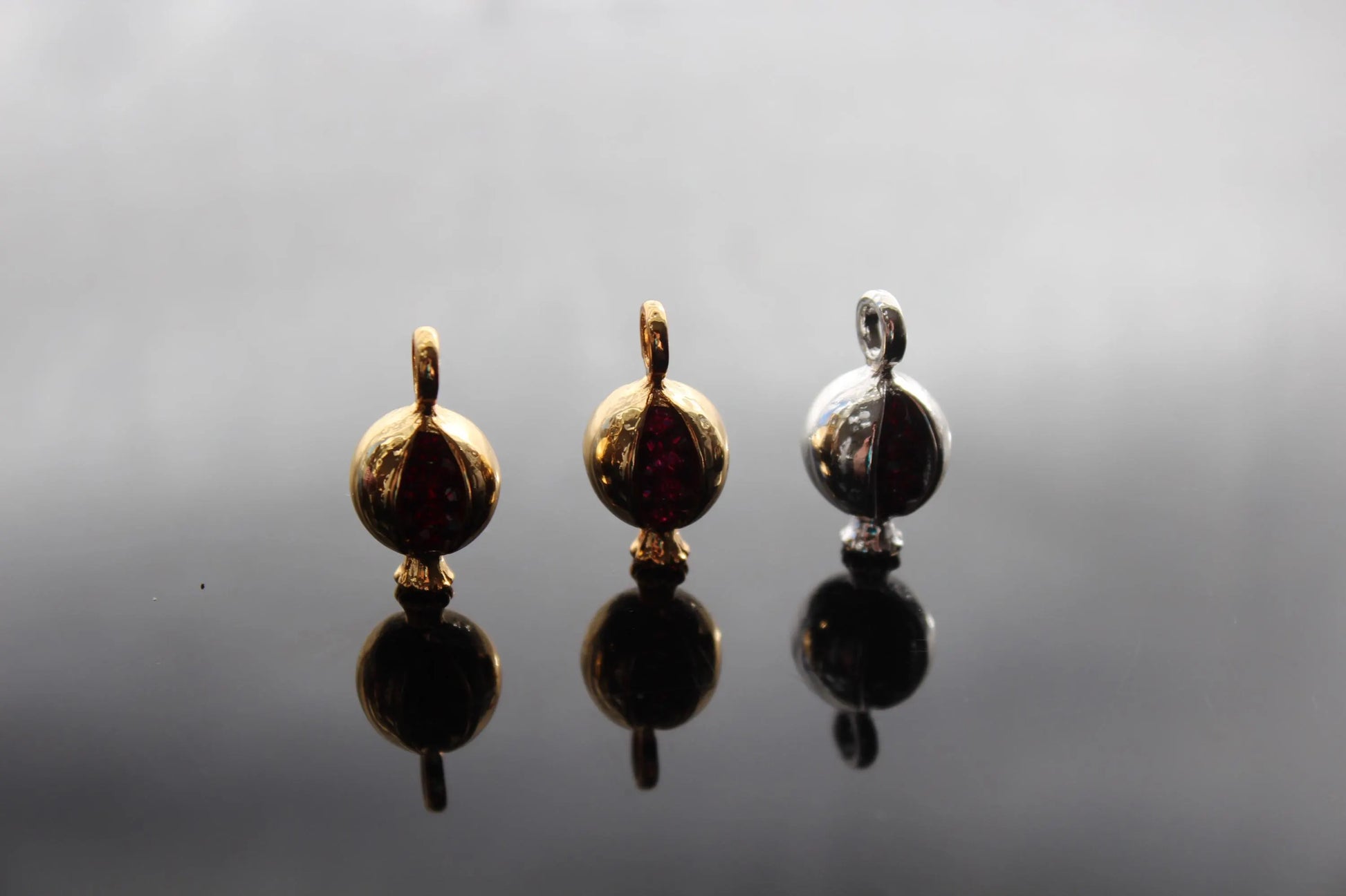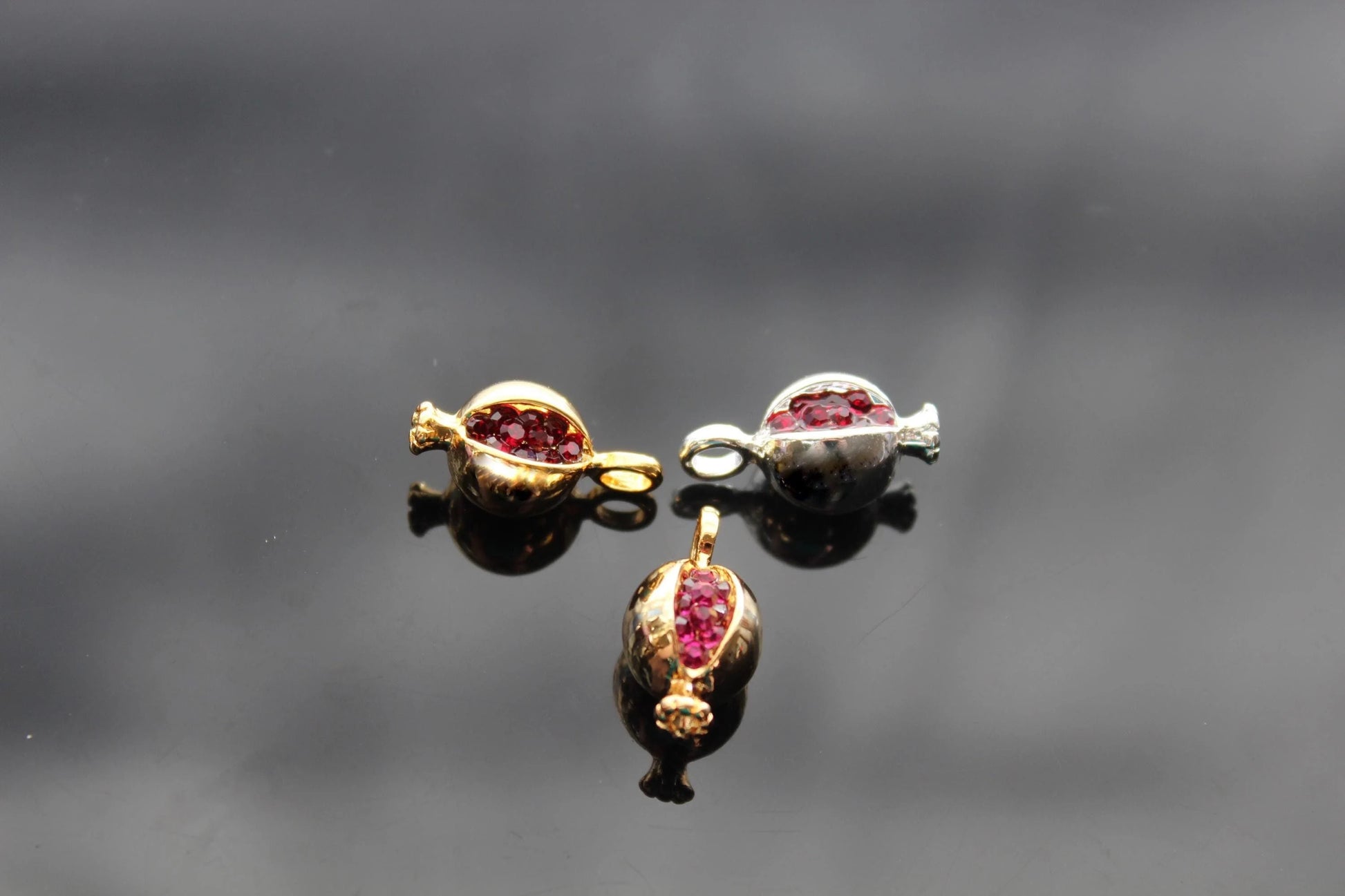 Expertly crafted with high quality gold plating, this water resistant pomegranate charm is a must-have for any jewelry collection. Adorned with stunning glass beads, it adds a touch of elegance and sophistication to any outfit. Perfect for everyday wear or special occasions, this charm will last for years to come.