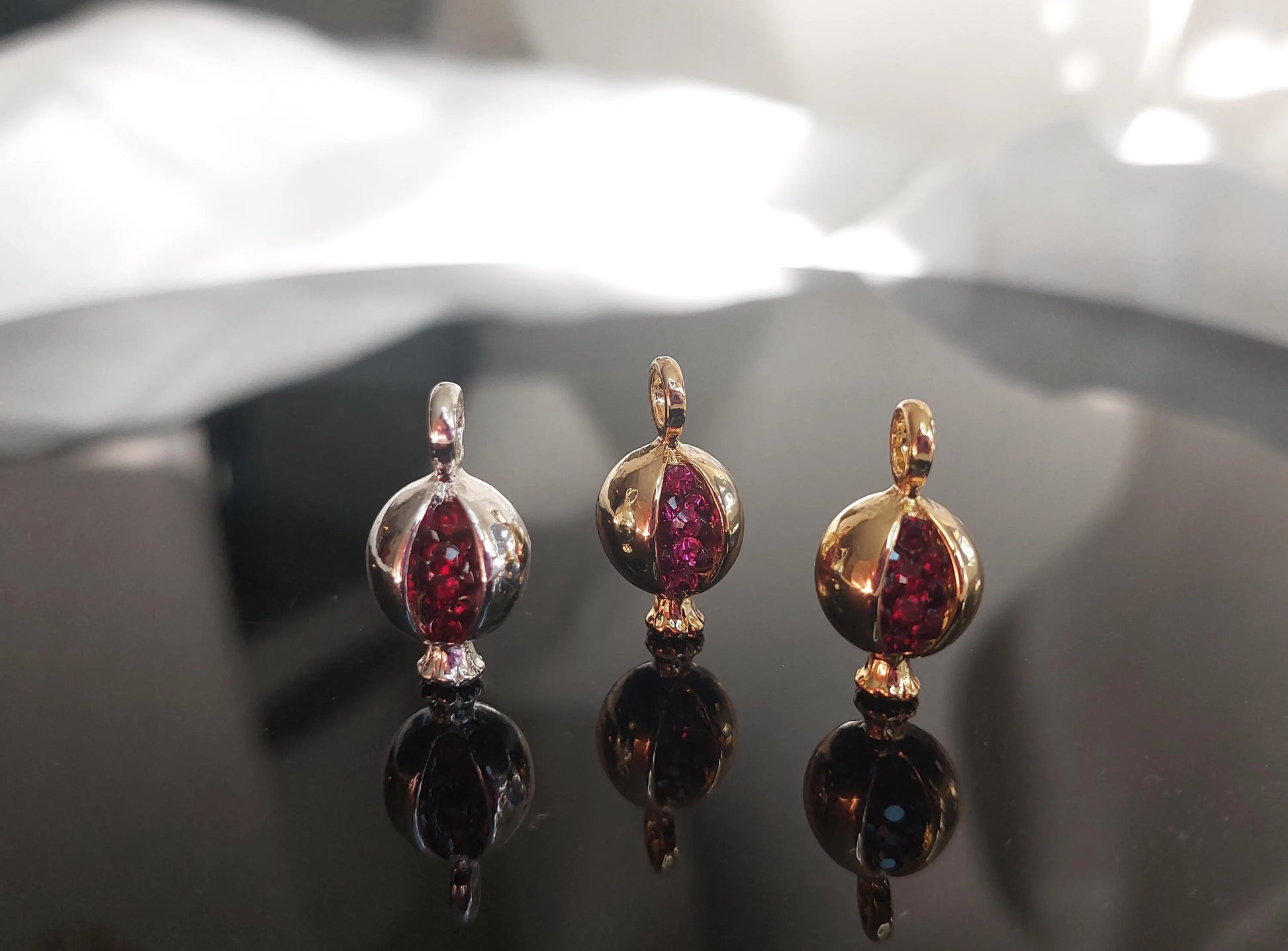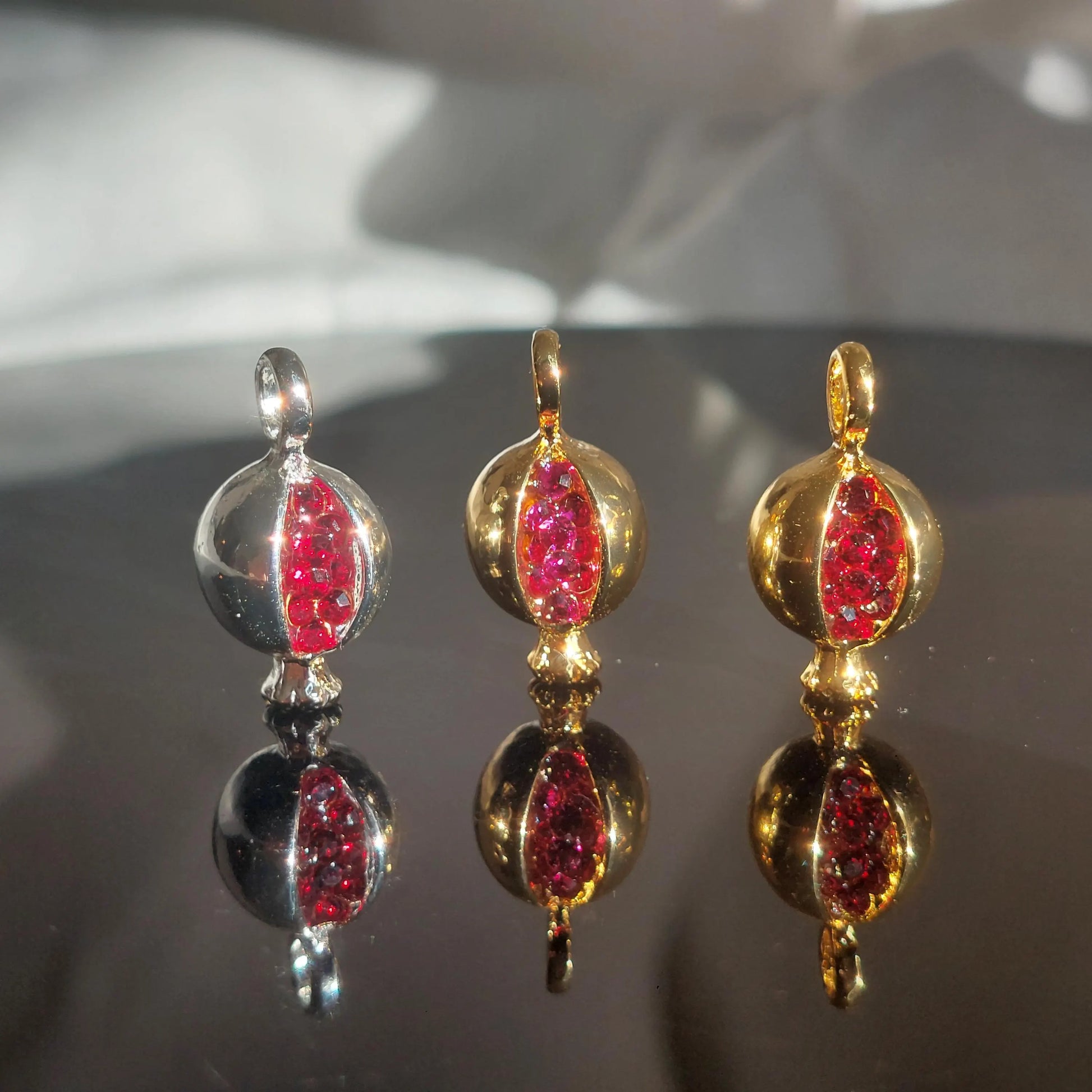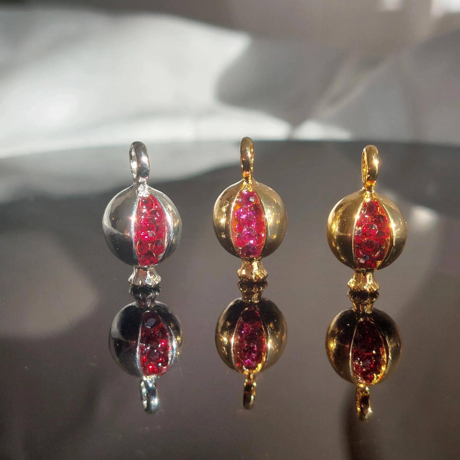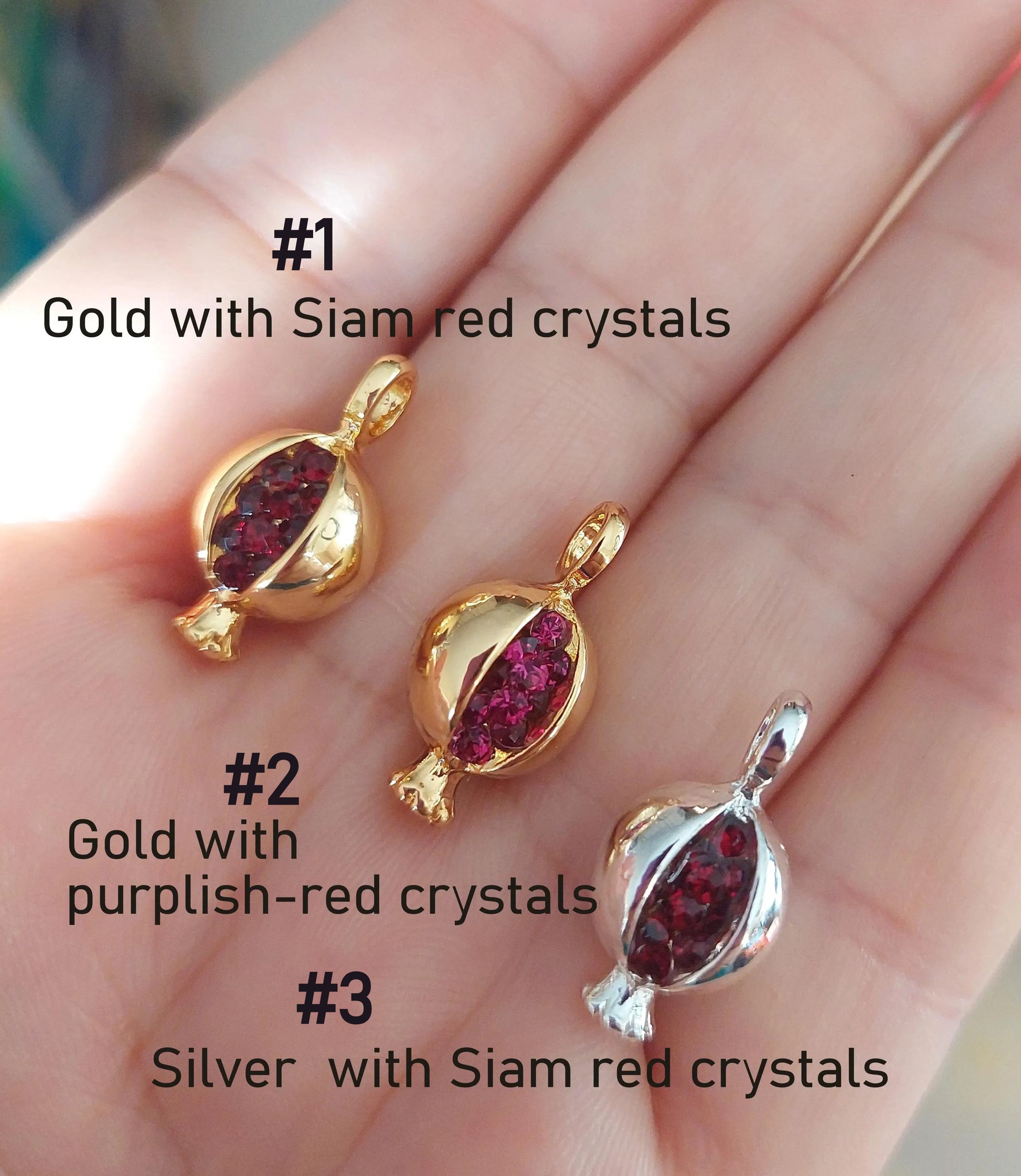 Expertly crafted with high quality gold plating, this water resistant pomegranate charm is a must-have for any jewelry collection. Adorned with stunning glass beads, it adds a touch of elegance and sophistication to any outfit. Perfect for everyday wear or special occasions, this charm will last for years to come.
