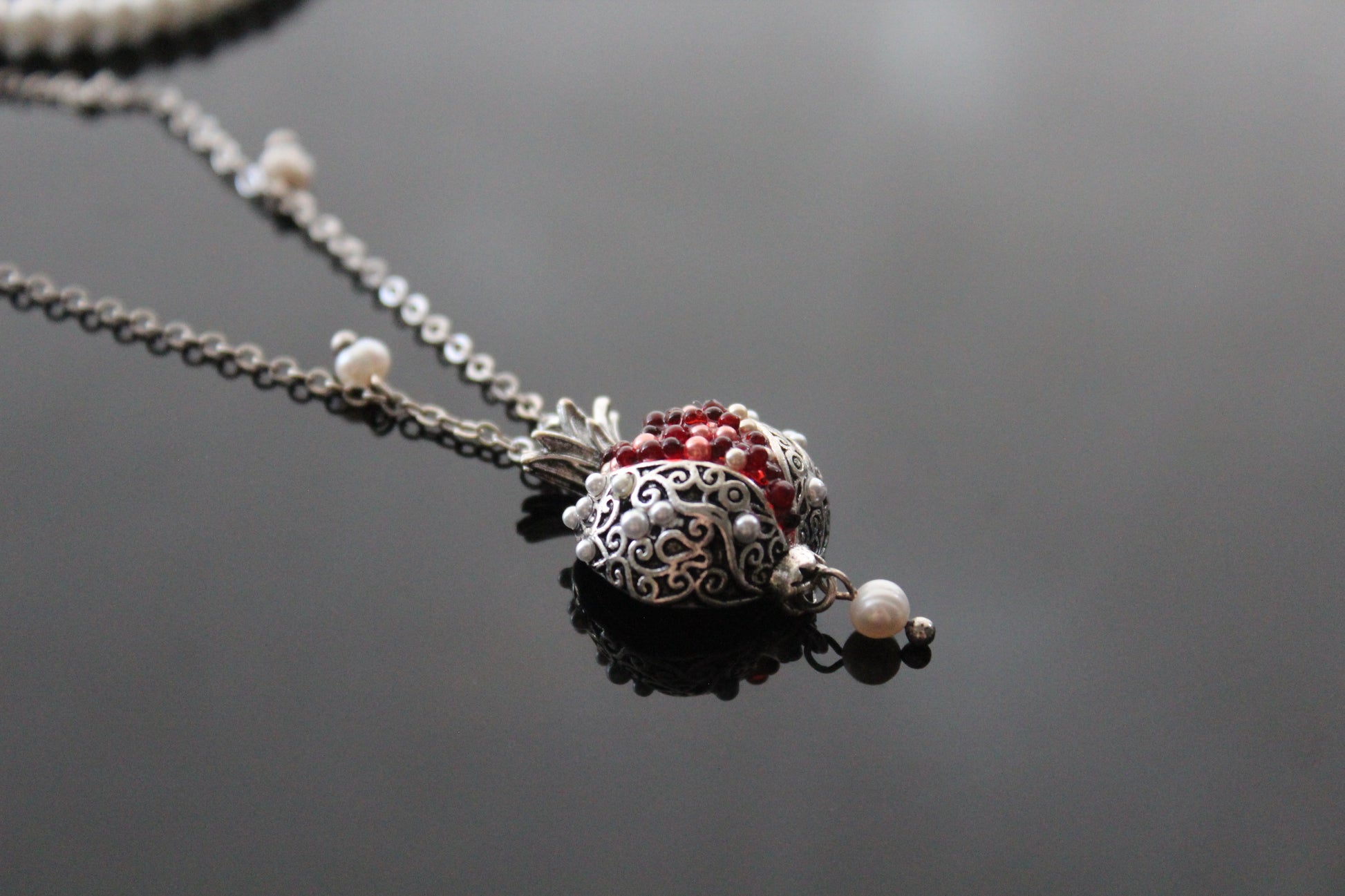 Add a touch of elegance and symbolism to your jewelry collection with these beautifully crafted pomegranate necklaces.