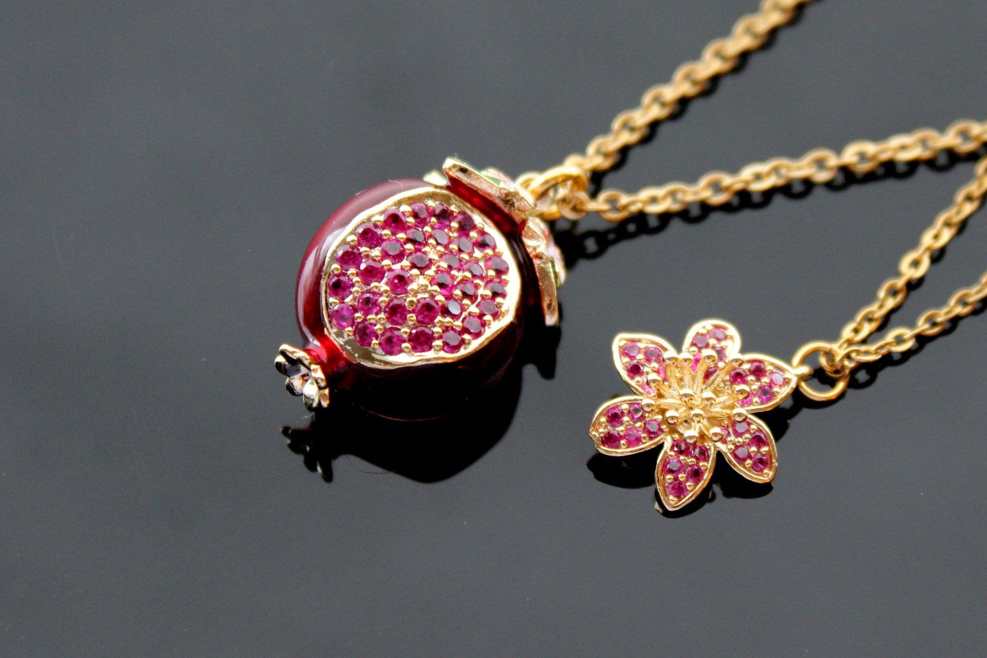 Add a touch of elegance to any outfit with our Pomegranate pendant. The 1-inch drop length and 18+2 inch adjustable chain provide a perfect fit for any style. Made from high-quality materials, this pendant is a must-have for any fashion-forward individual.
