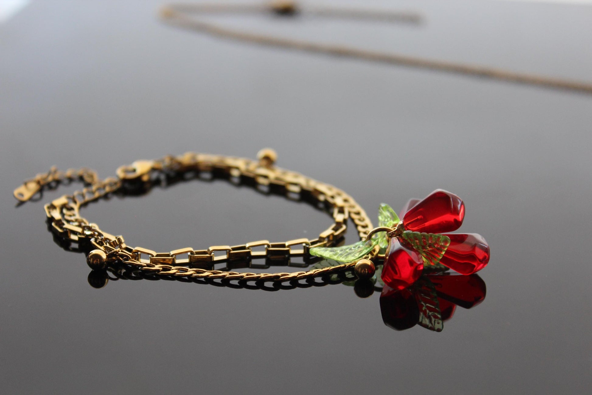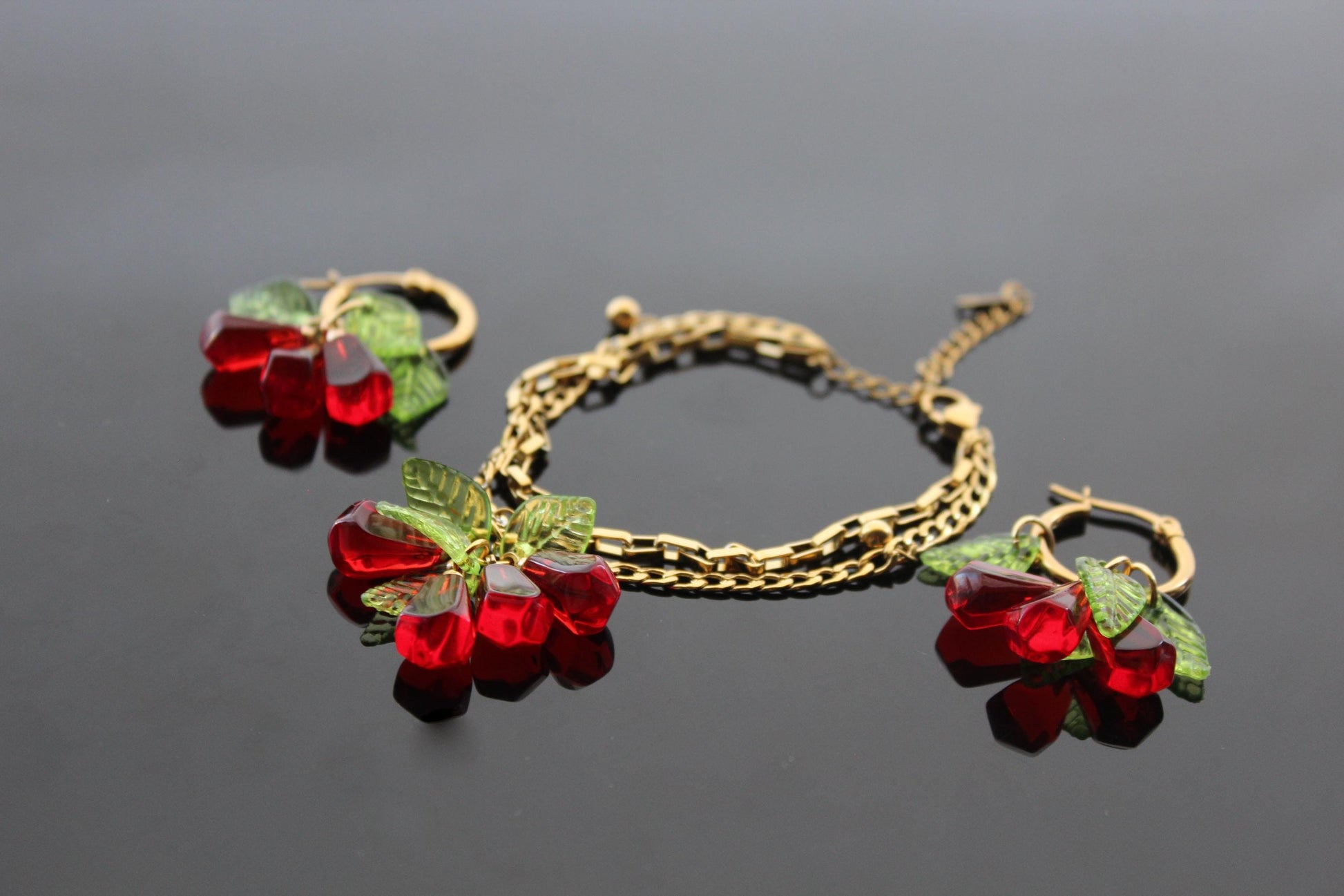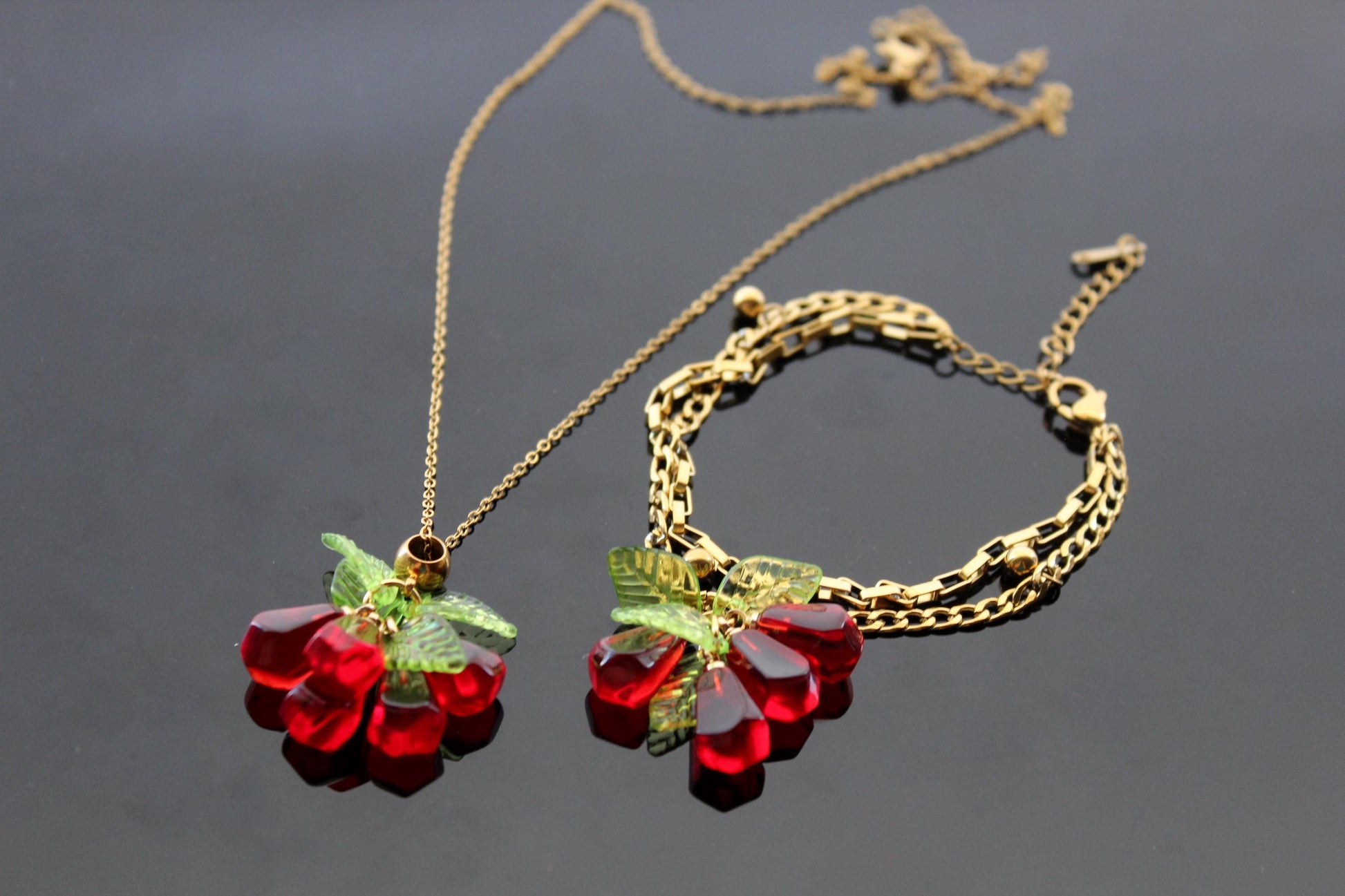 Pomegranate seeds hoop earrings and necklace gold plated stainless steel hypoallergenic jewelry