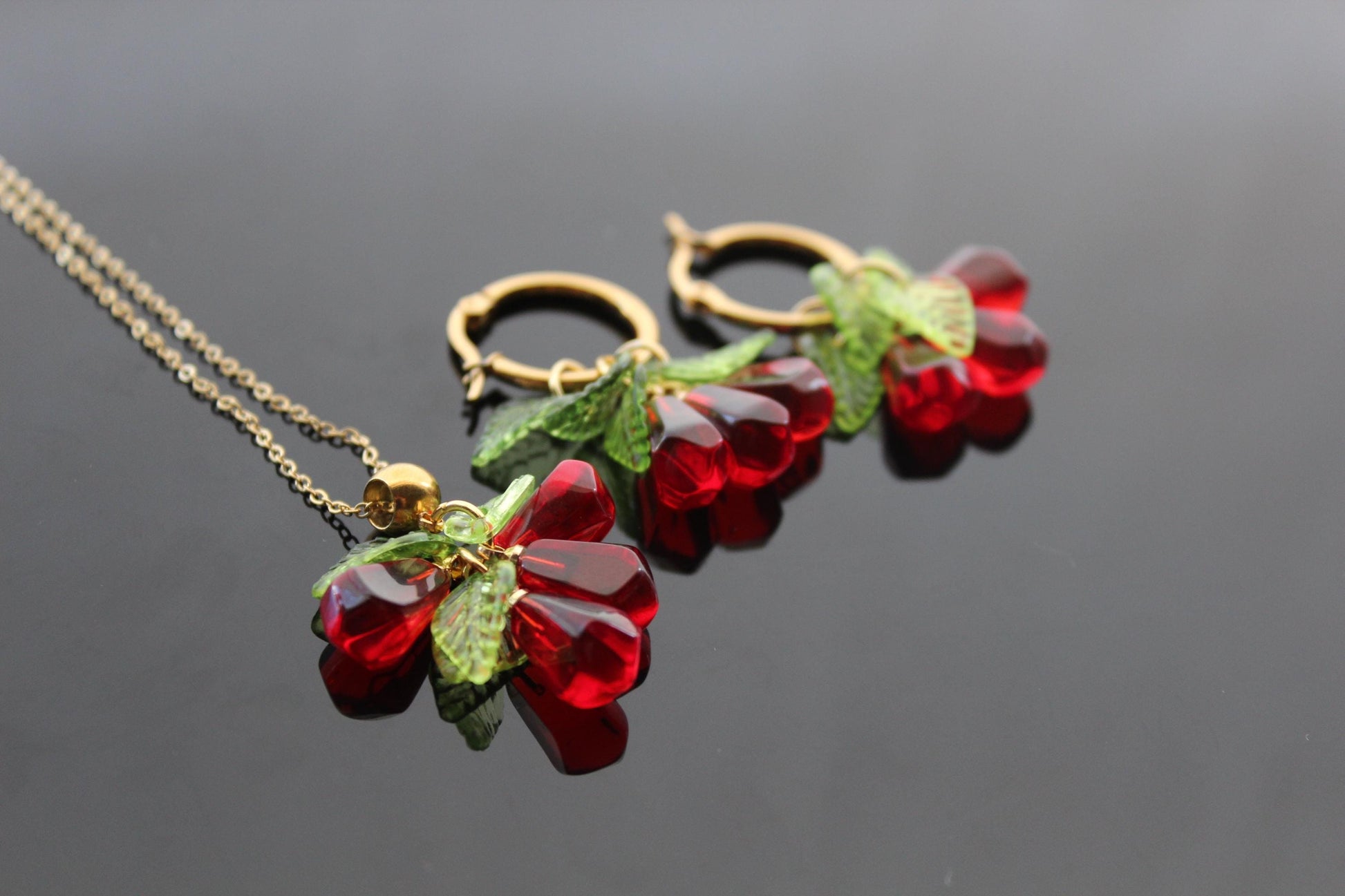Pomegranate Seed Drop Jewelry Set – Available in Glass and Resin